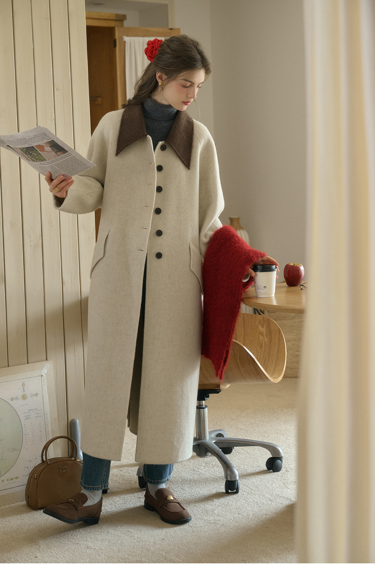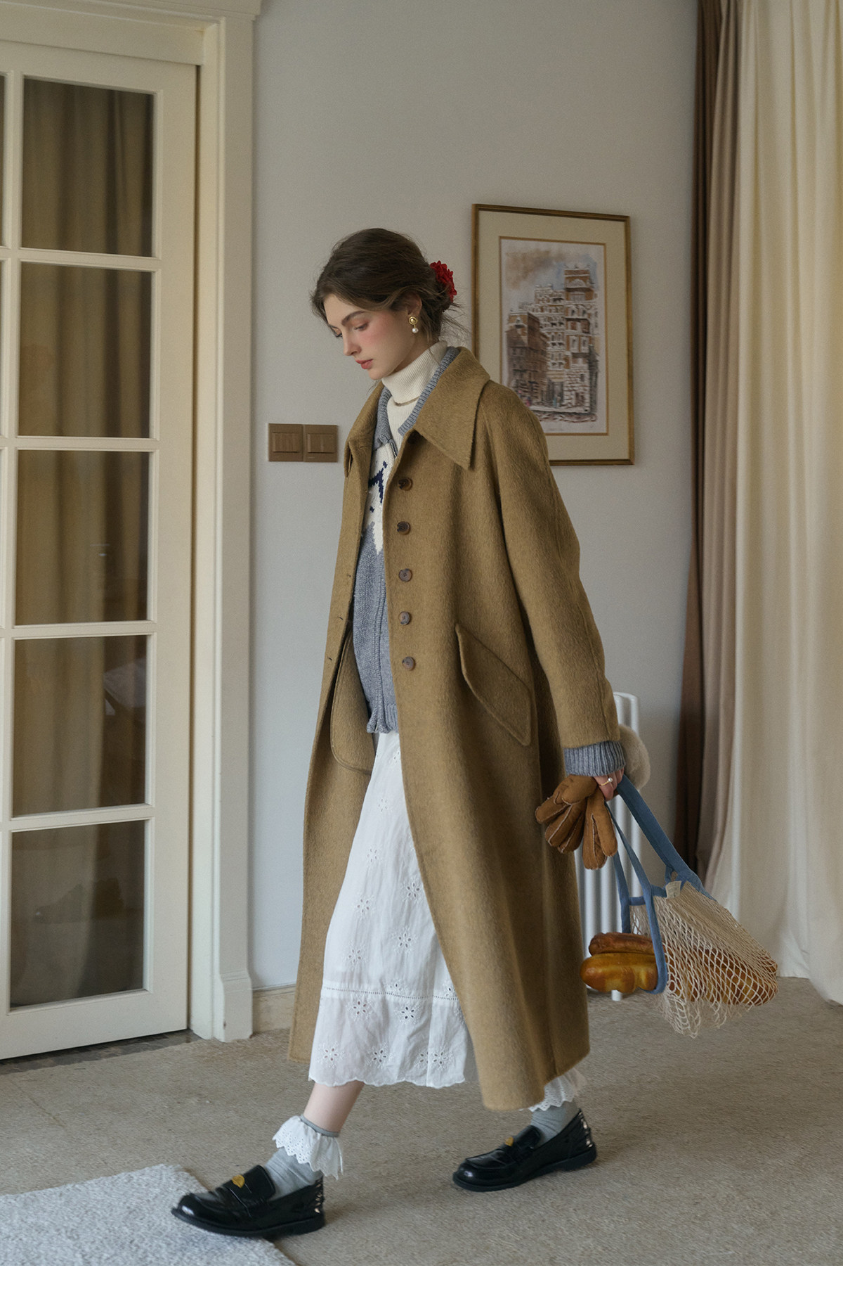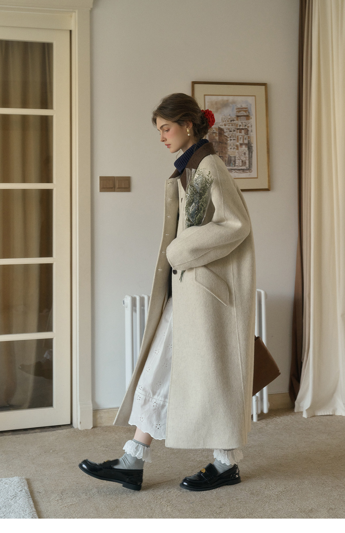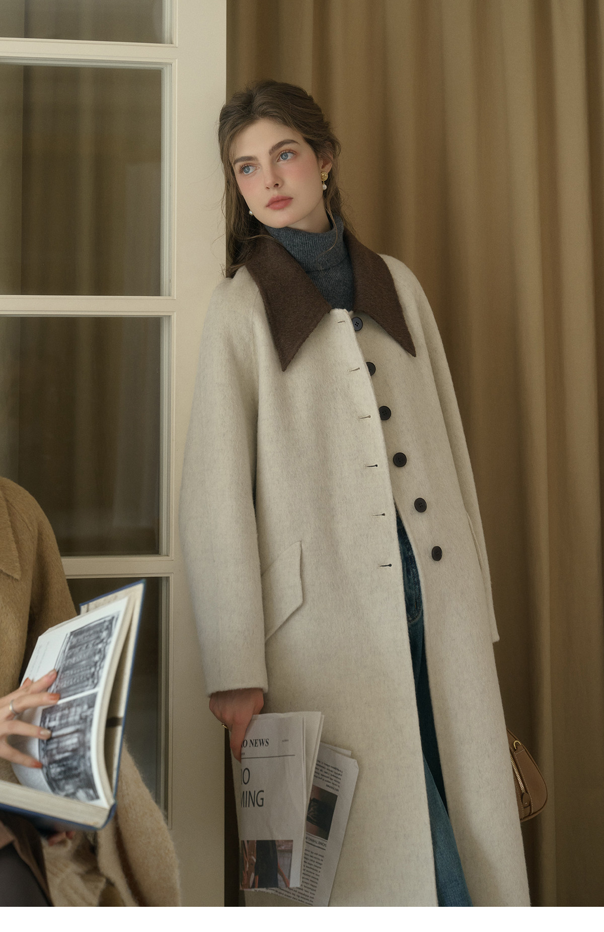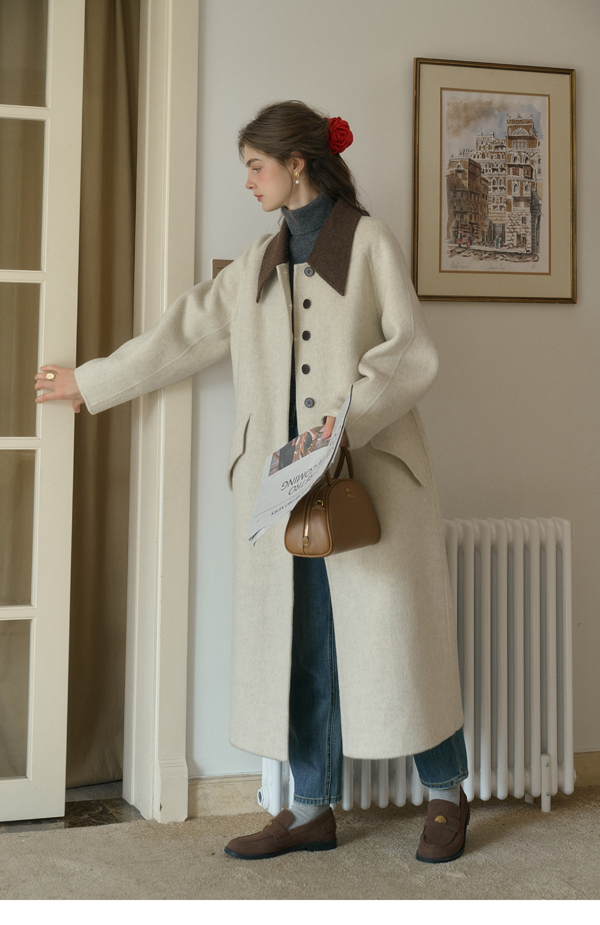 SimpleRetro Melting Snow Frosting Retro Revers doppelseitiger Wollmantel Damen langer Wollmantel aus australischer Wolle