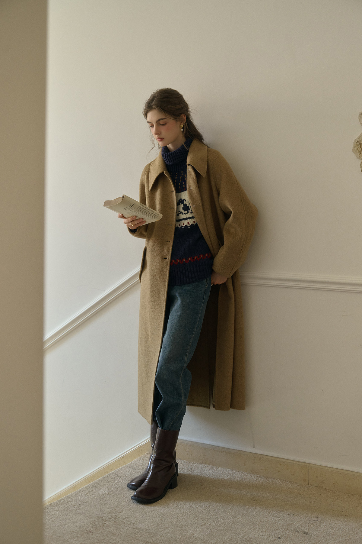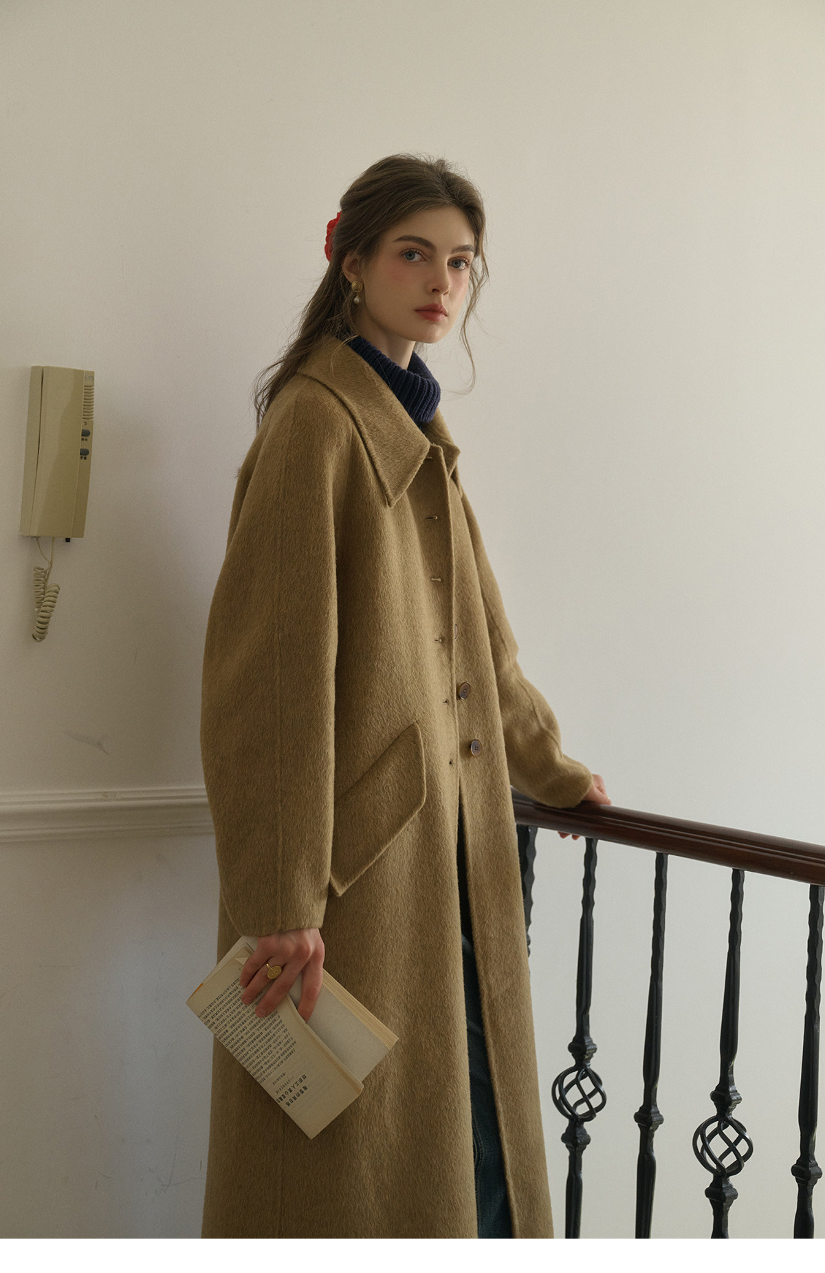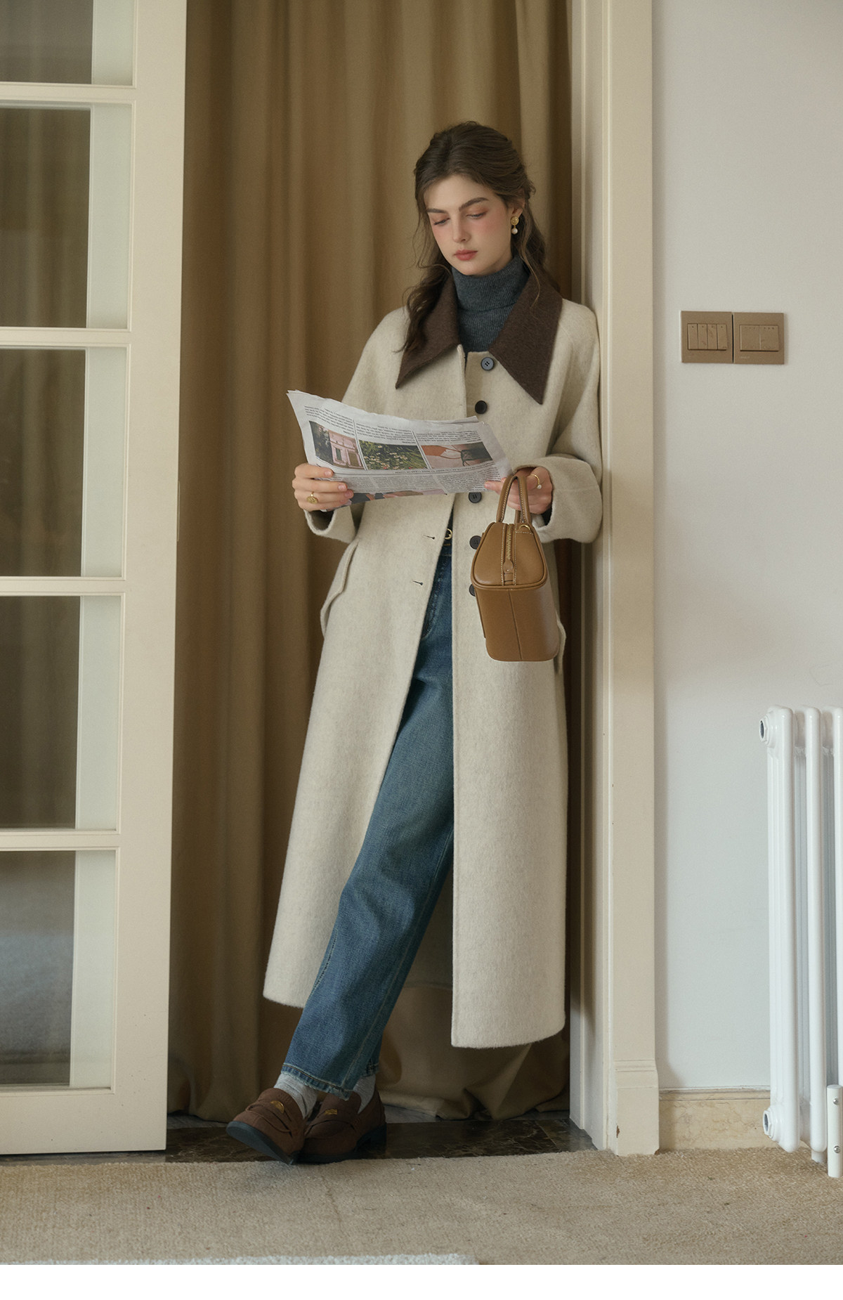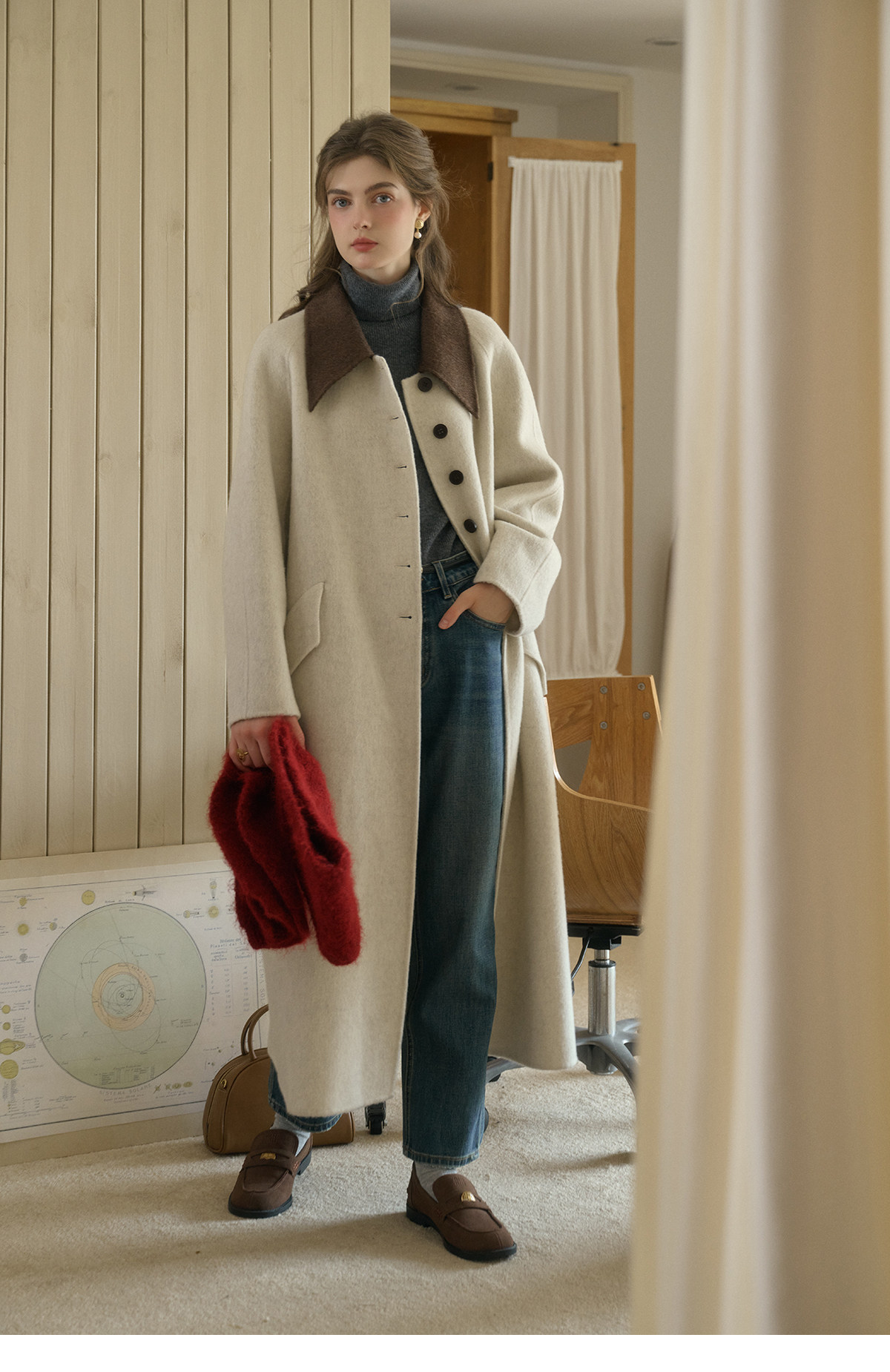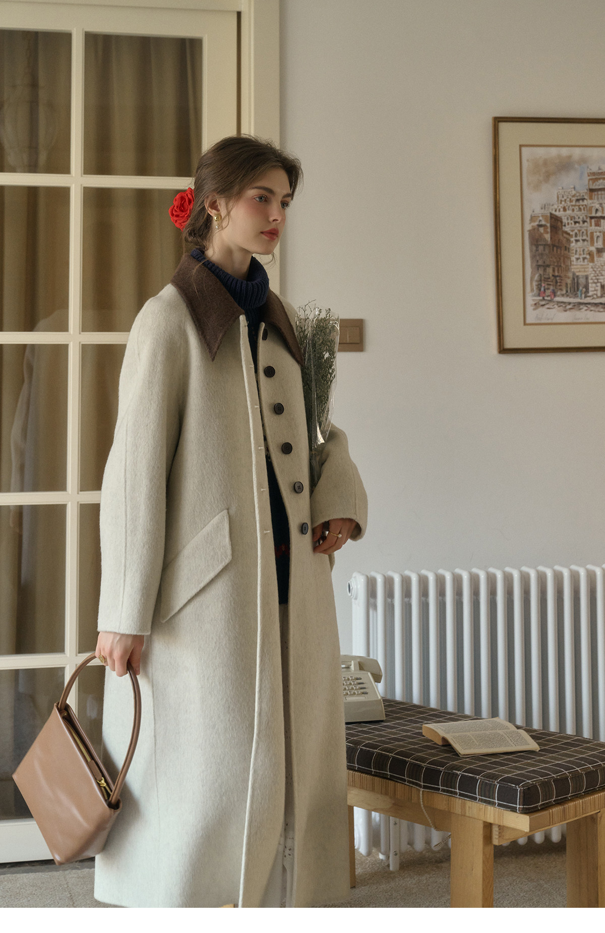SimpleRetro Melting Snow Frosting Retro Revers doppelseitiger Wollmantel Damen langer Wollmantel aus australischer Wolle