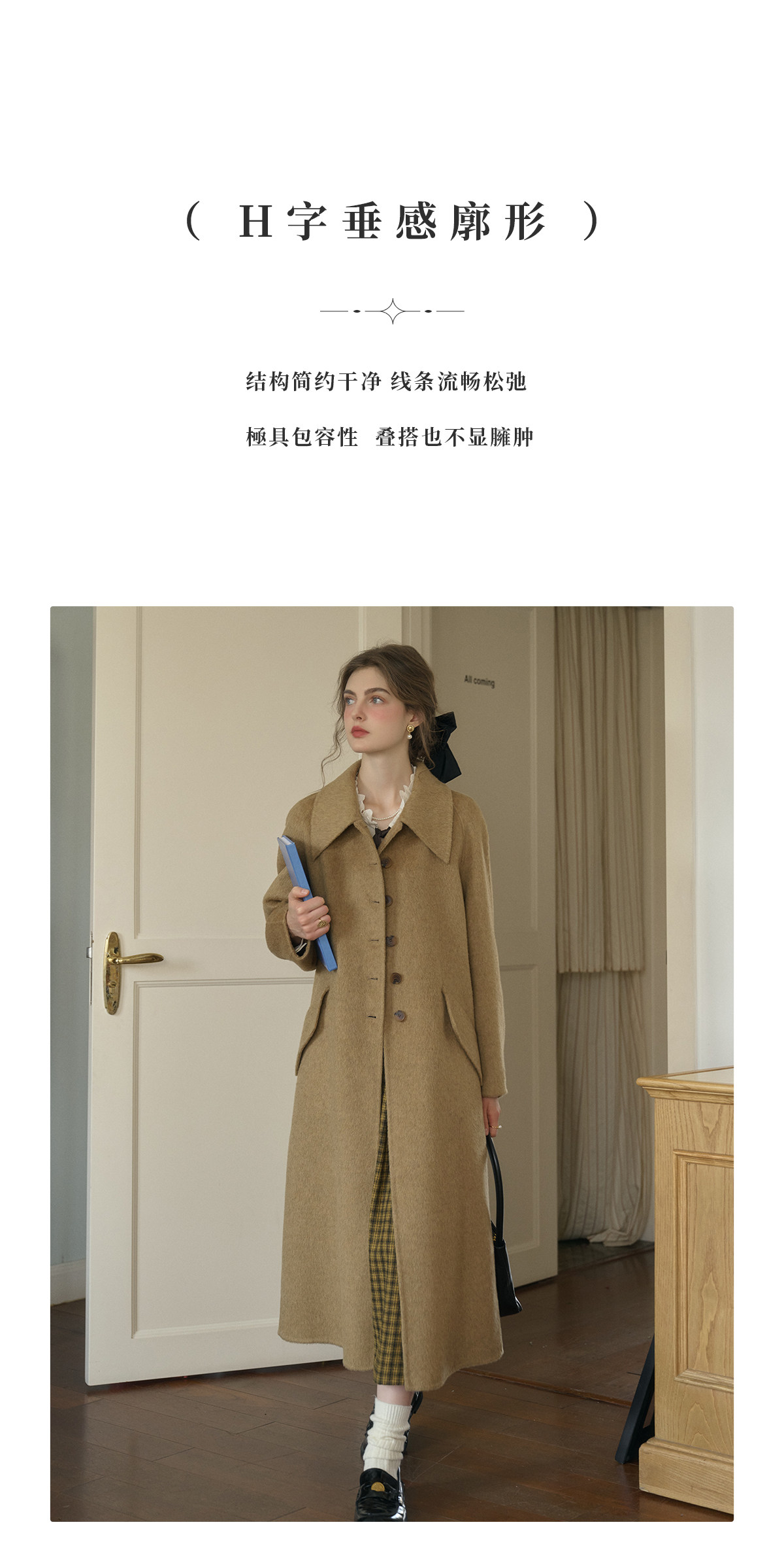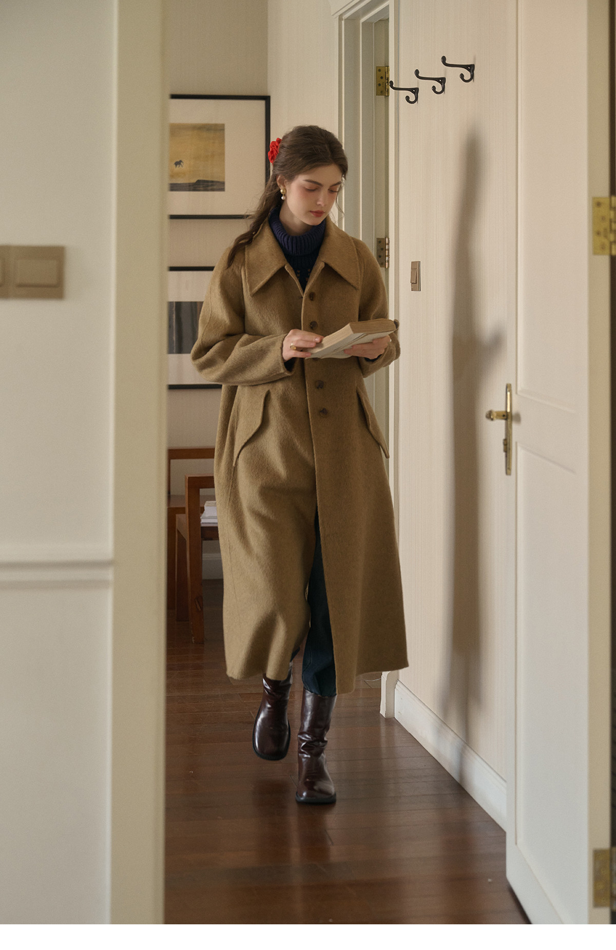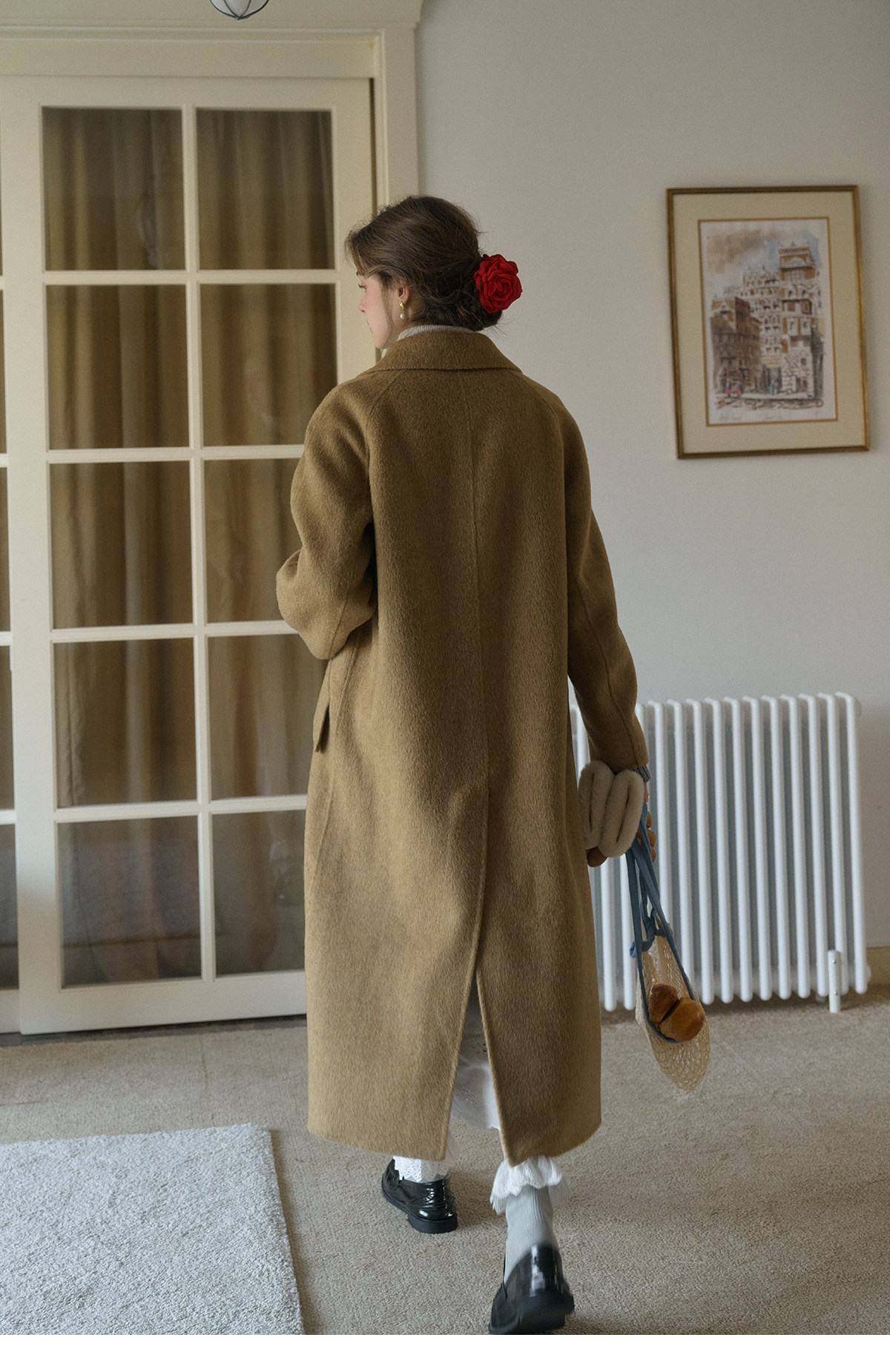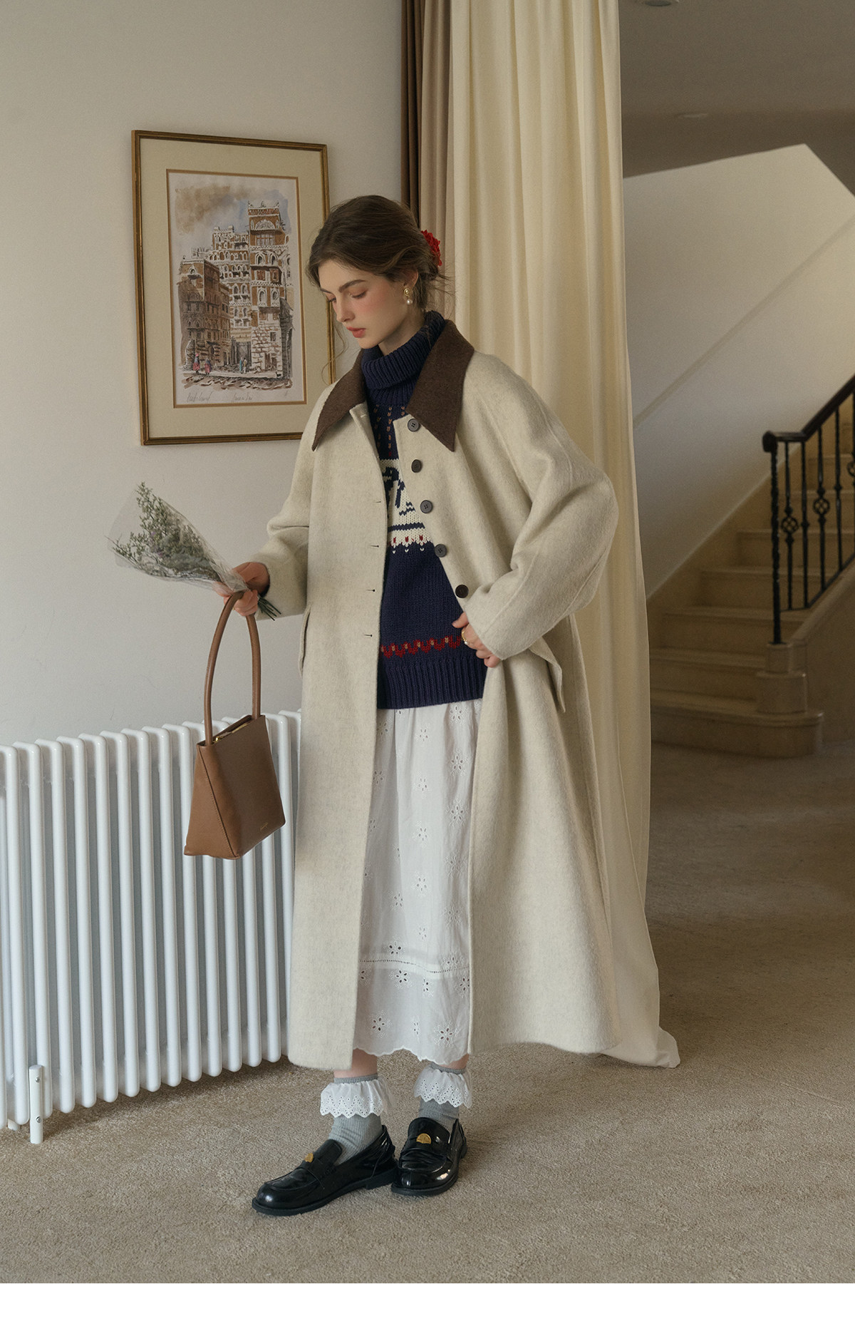 SimpleRetro Melting Snow Frosting Retro Revers doppelseitiger Wollmantel Damen langer Wollmantel aus australischer Wolle