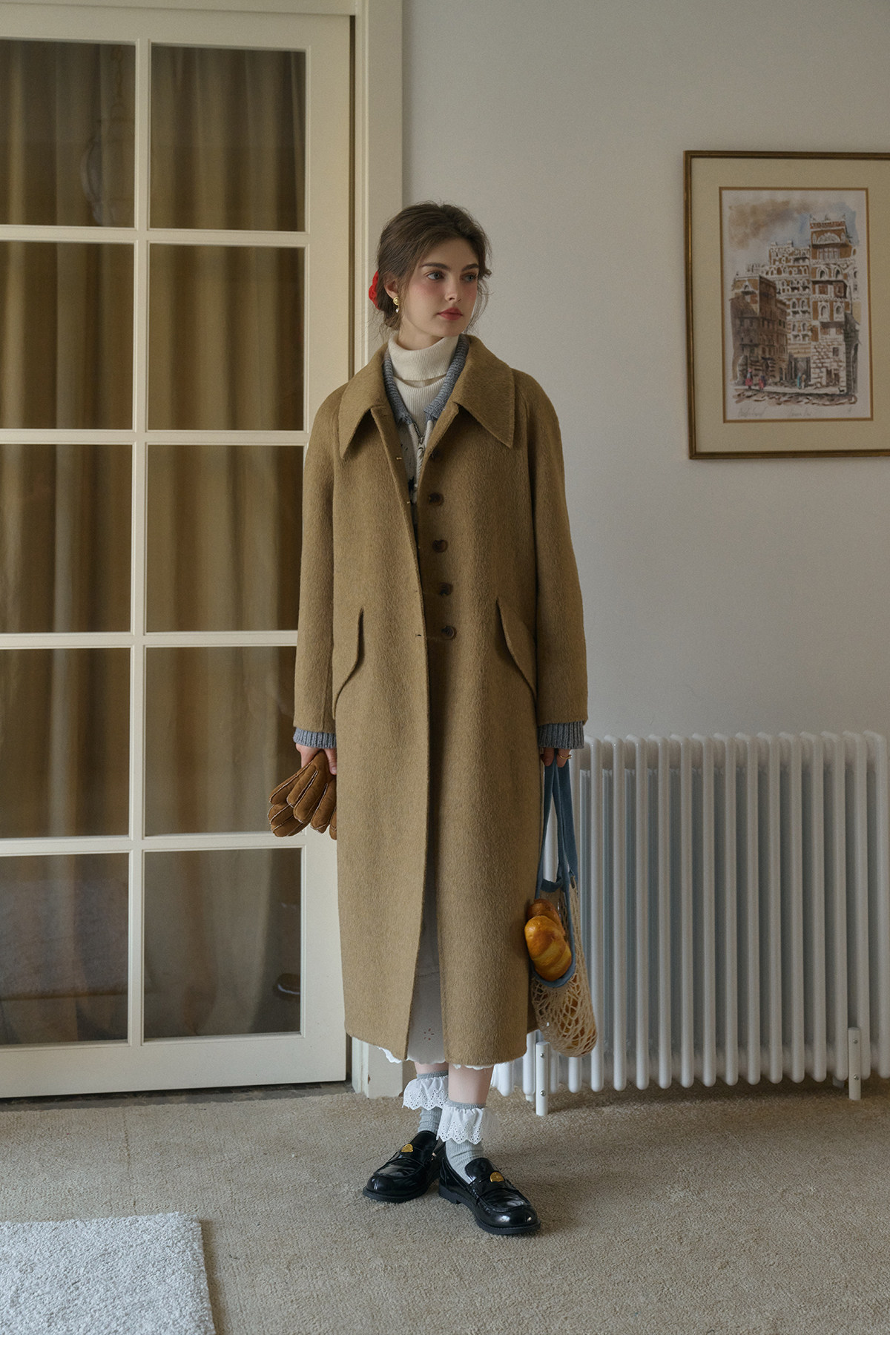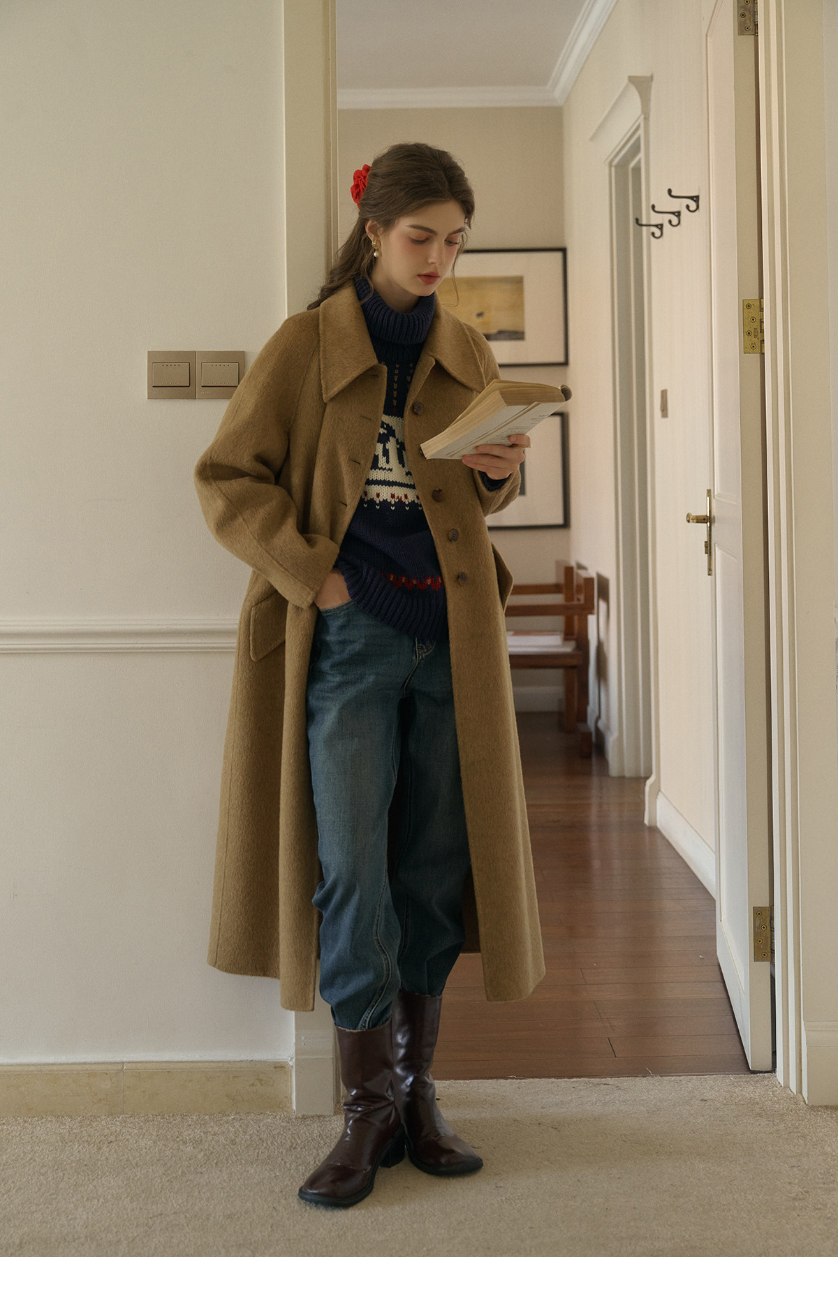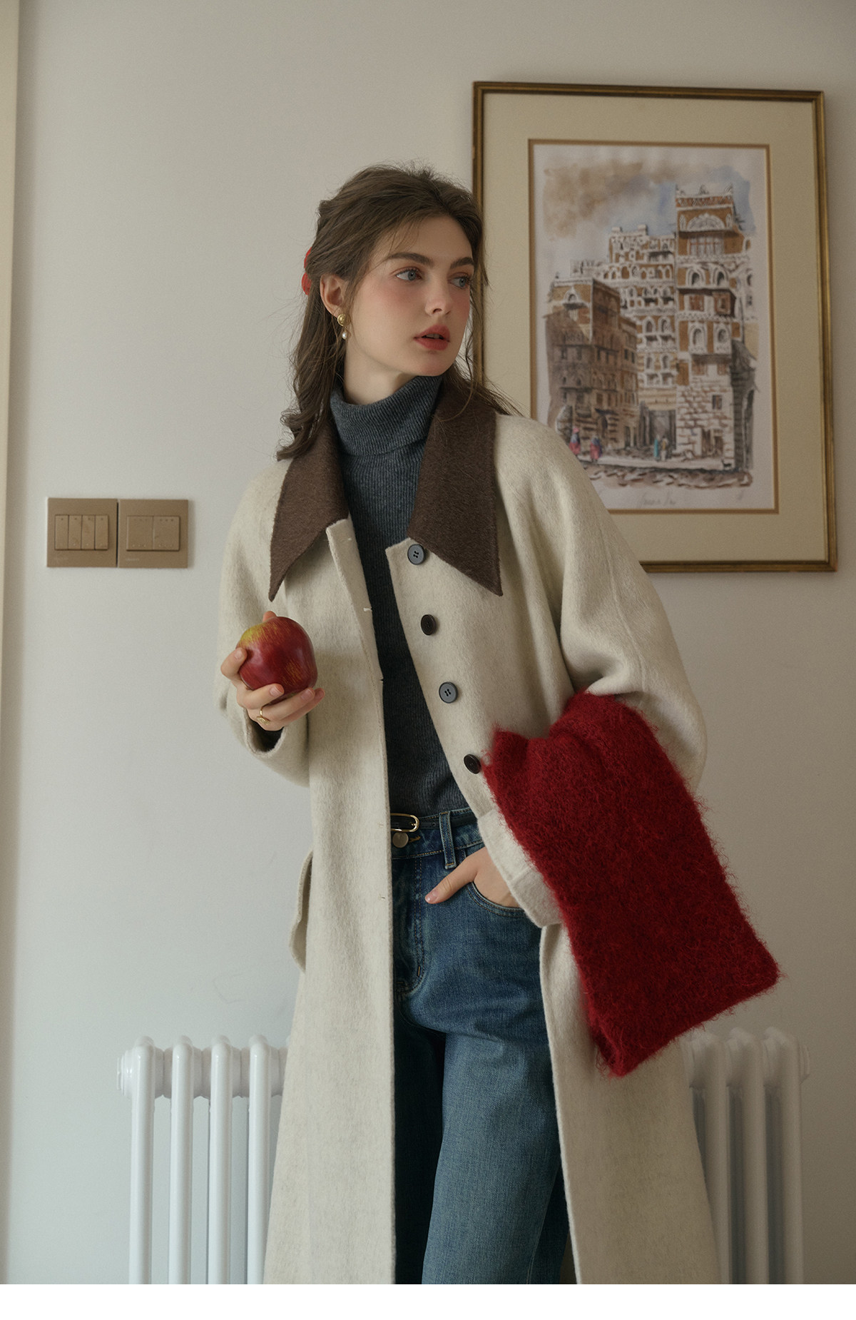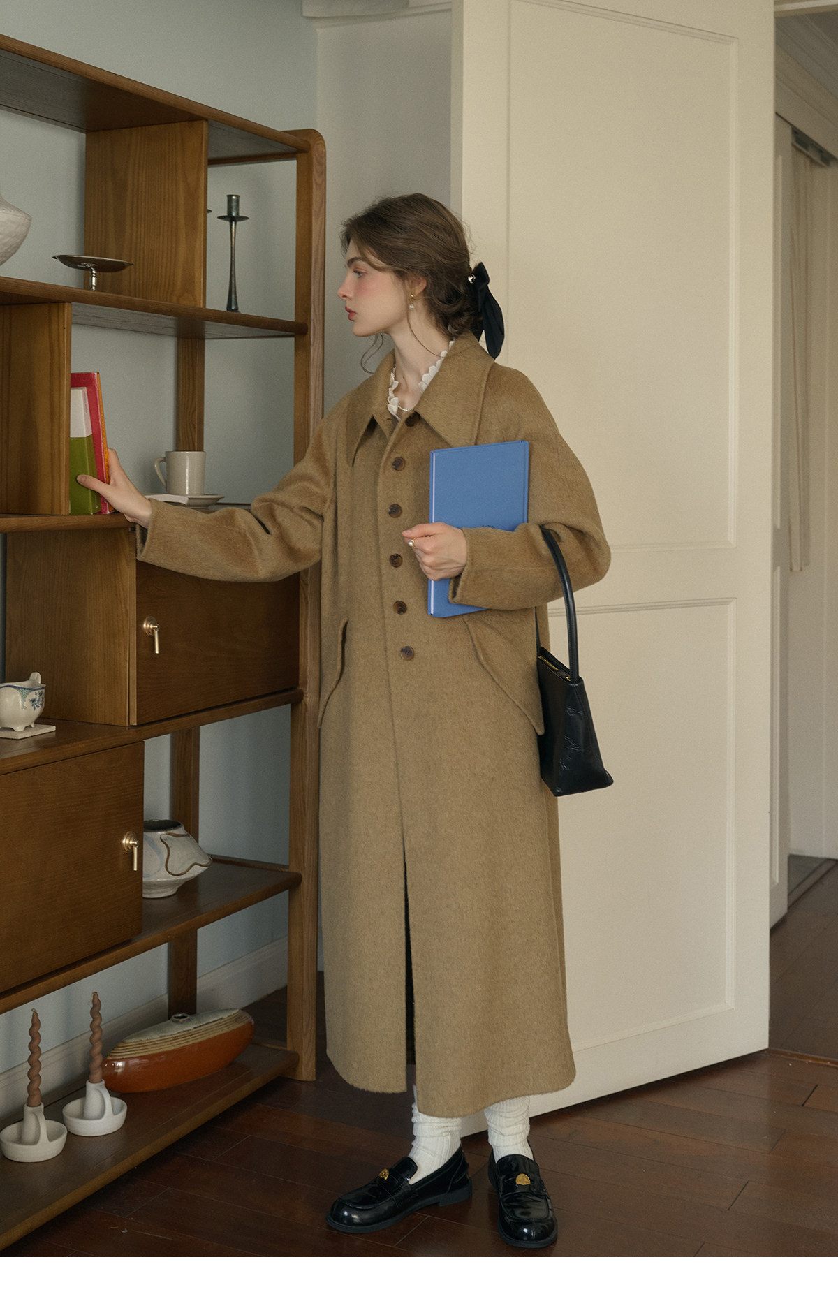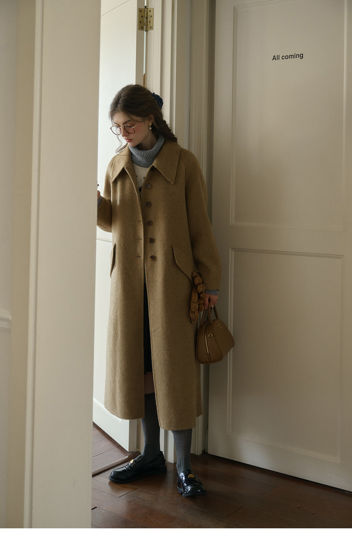 SimpleRetro Melting Snow Frosting Retro Revers doppelseitiger Wollmantel Damen langer Wollmantel aus australischer Wolle