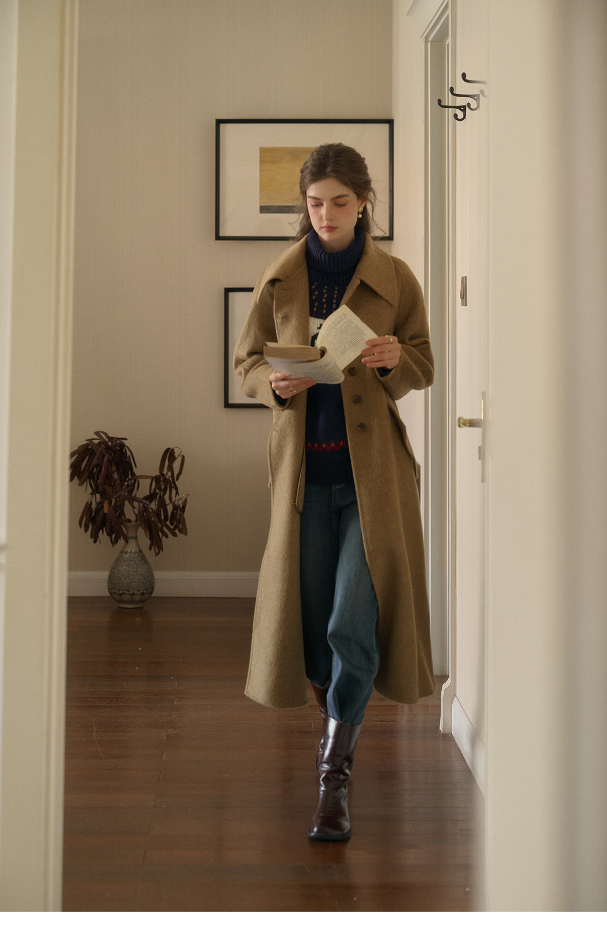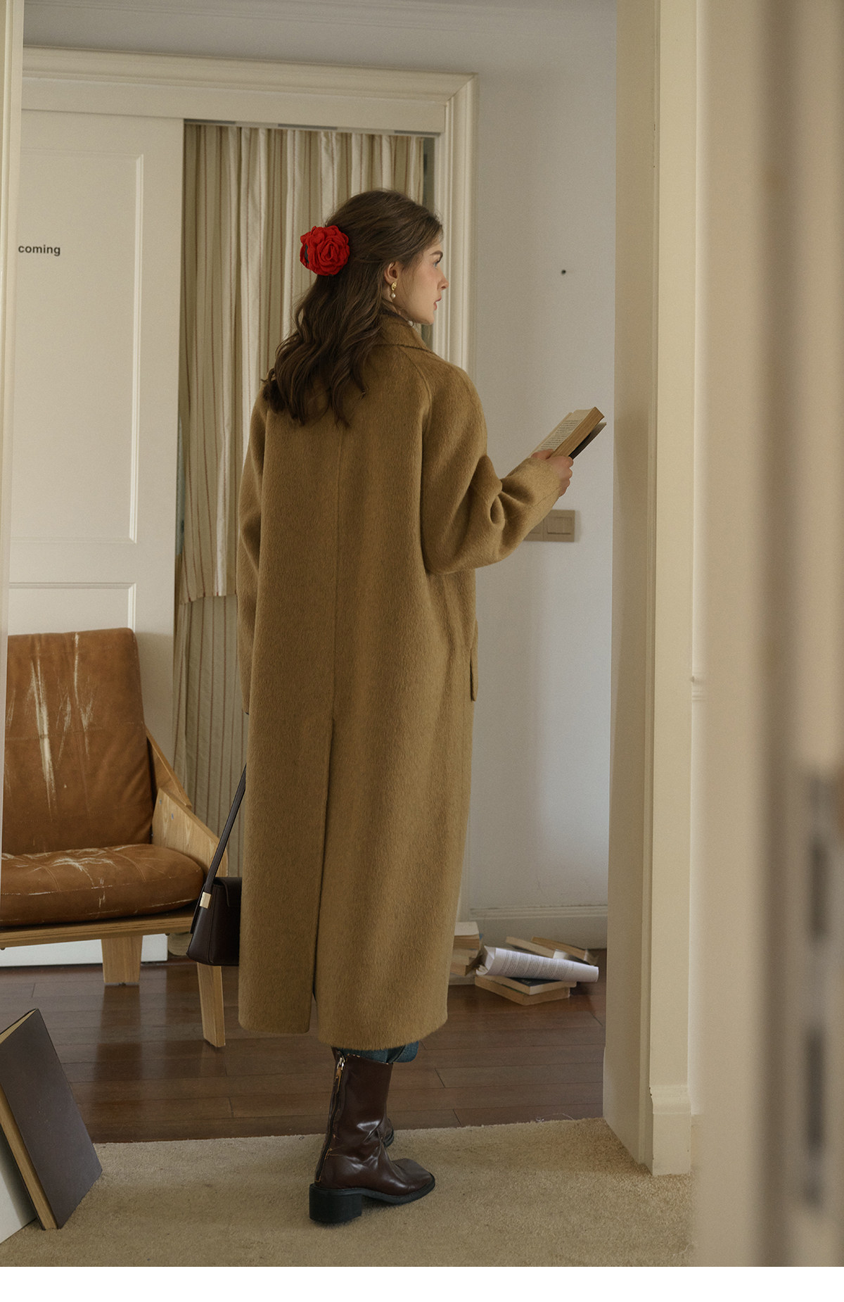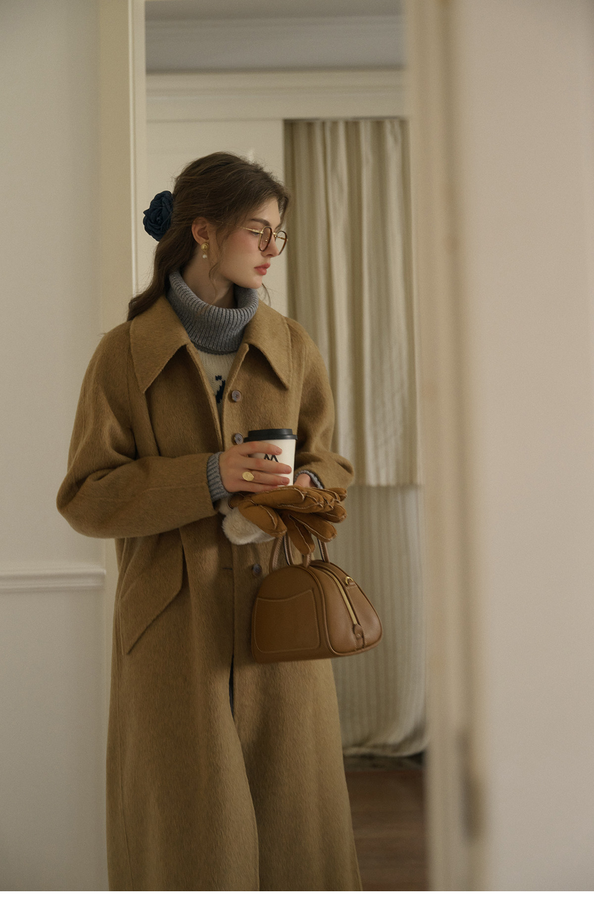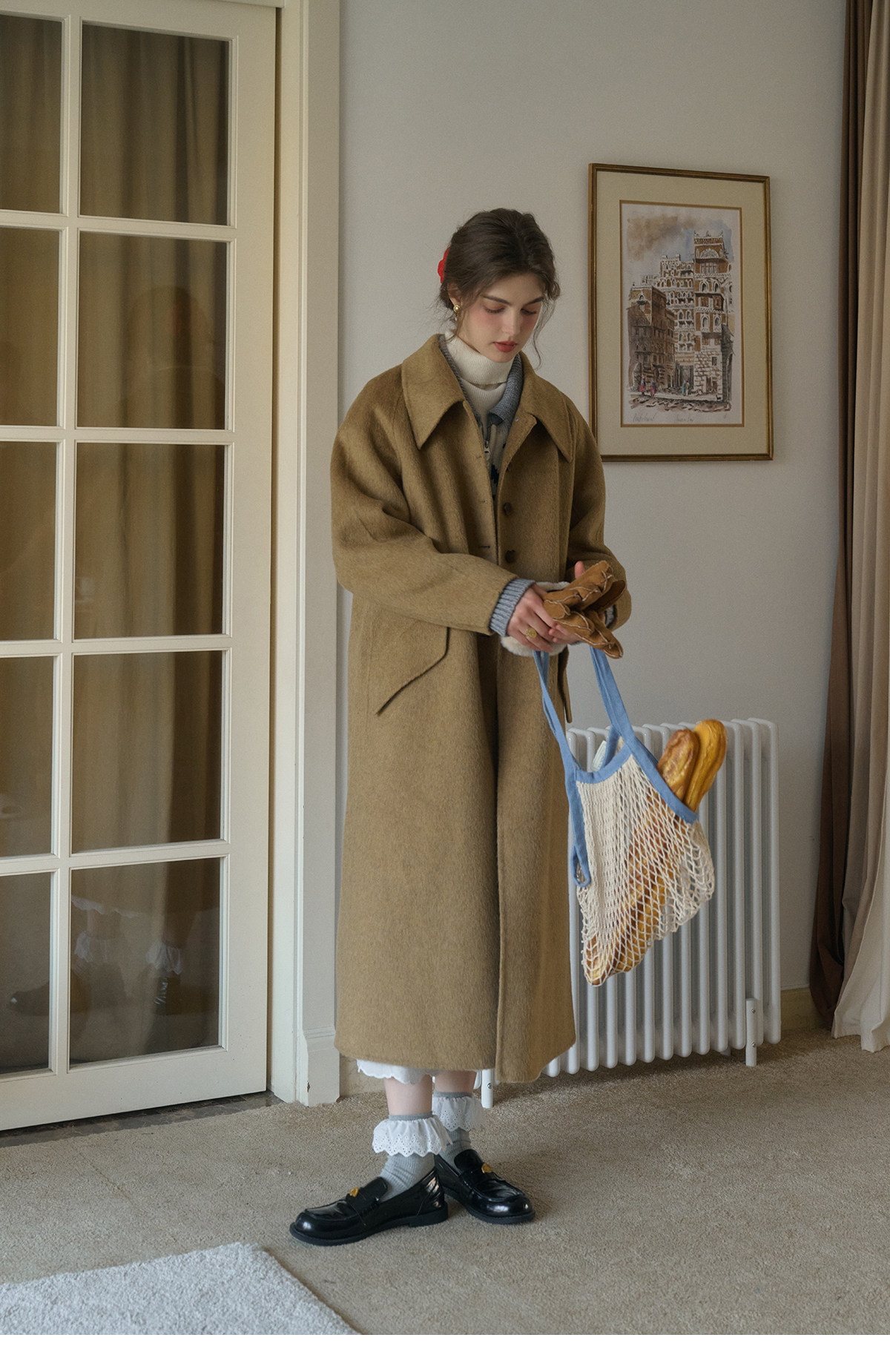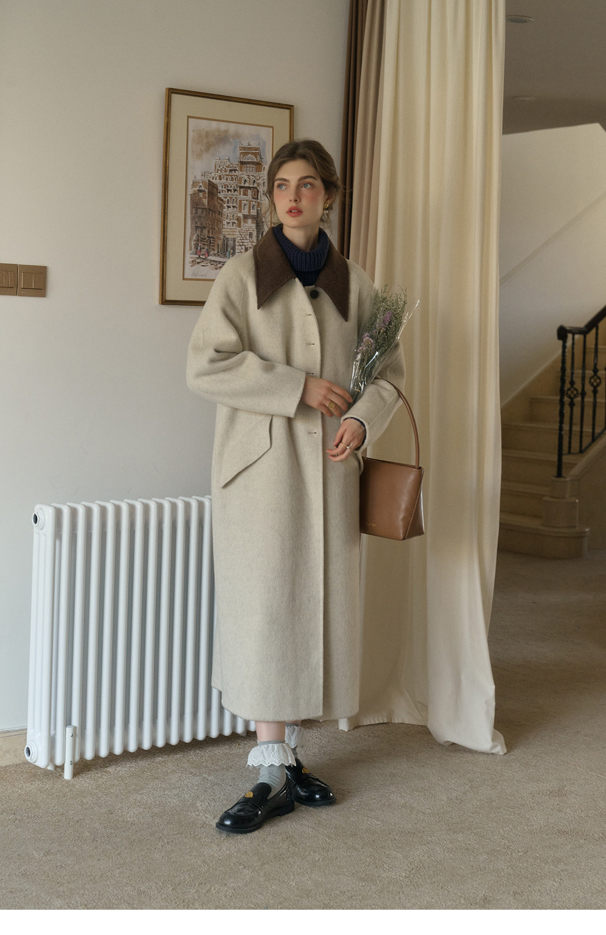 SimpleRetro Melting Snow Frosting Retro Revers doppelseitiger Wollmantel Damen langer Wollmantel aus australischer Wolle
