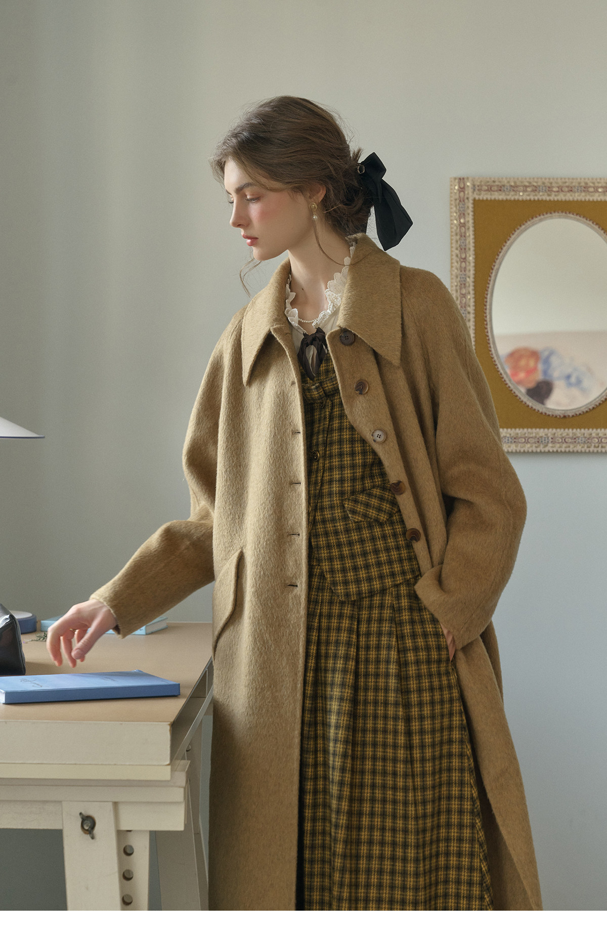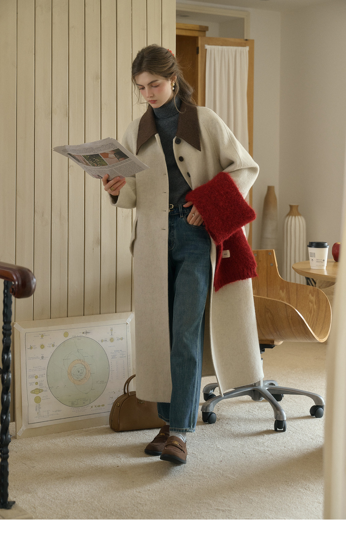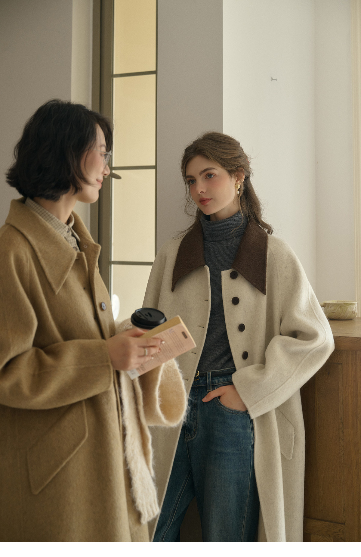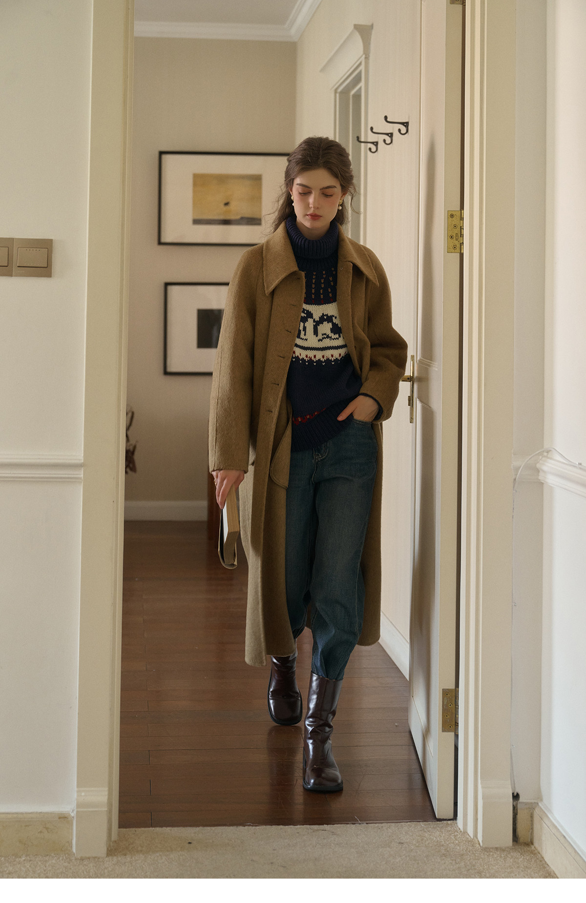 SimpleRetro Melting Snow Frosting Retro Revers doppelseitiger Wollmantel Damen langer Wollmantel aus australischer Wolle