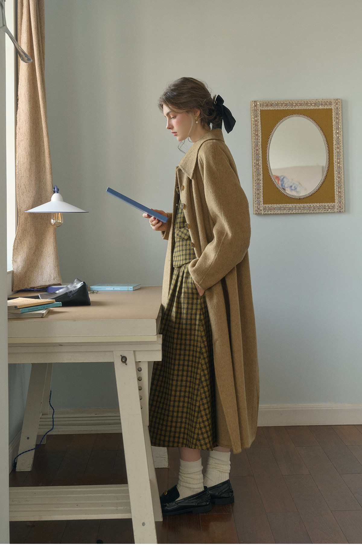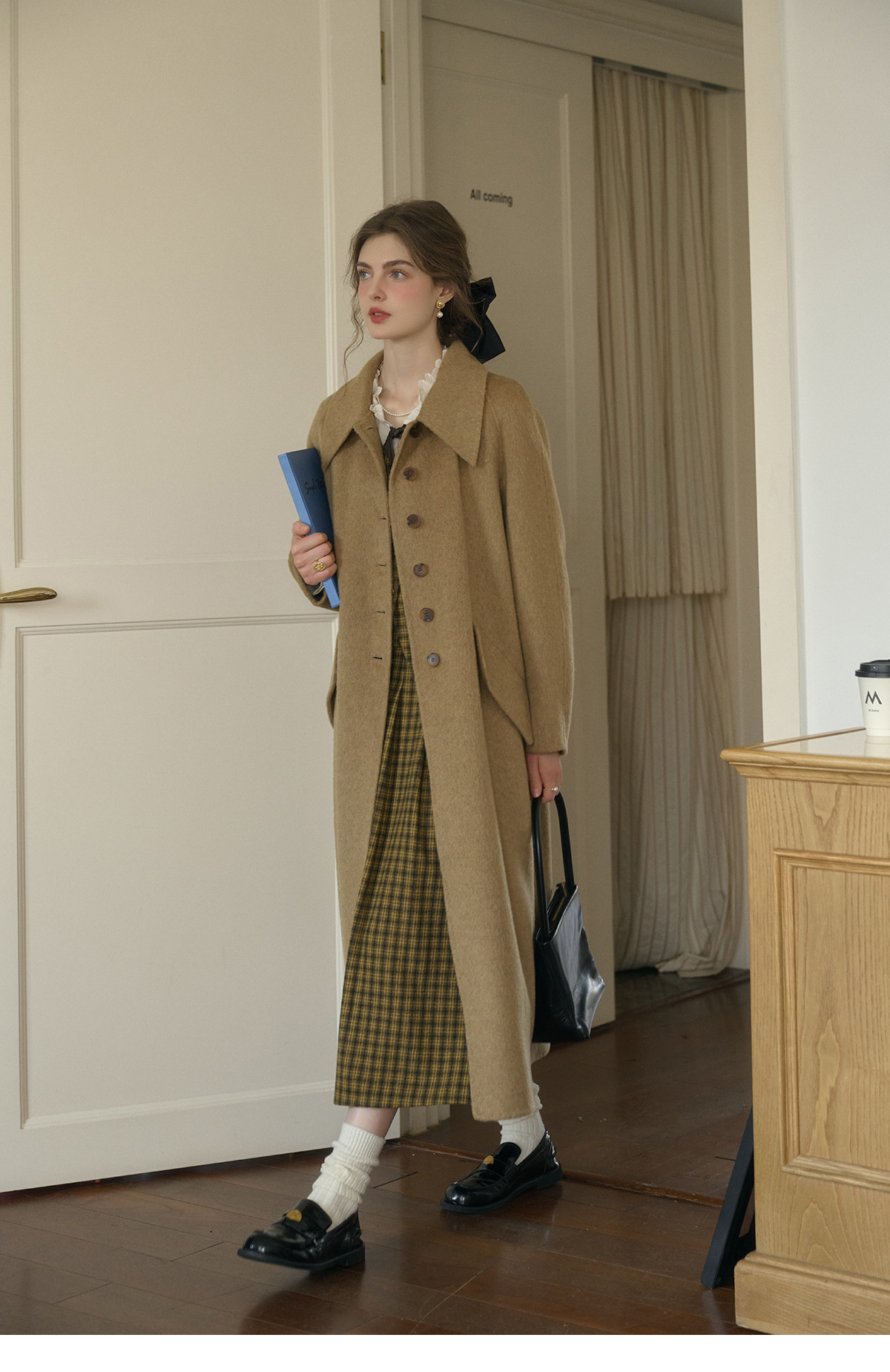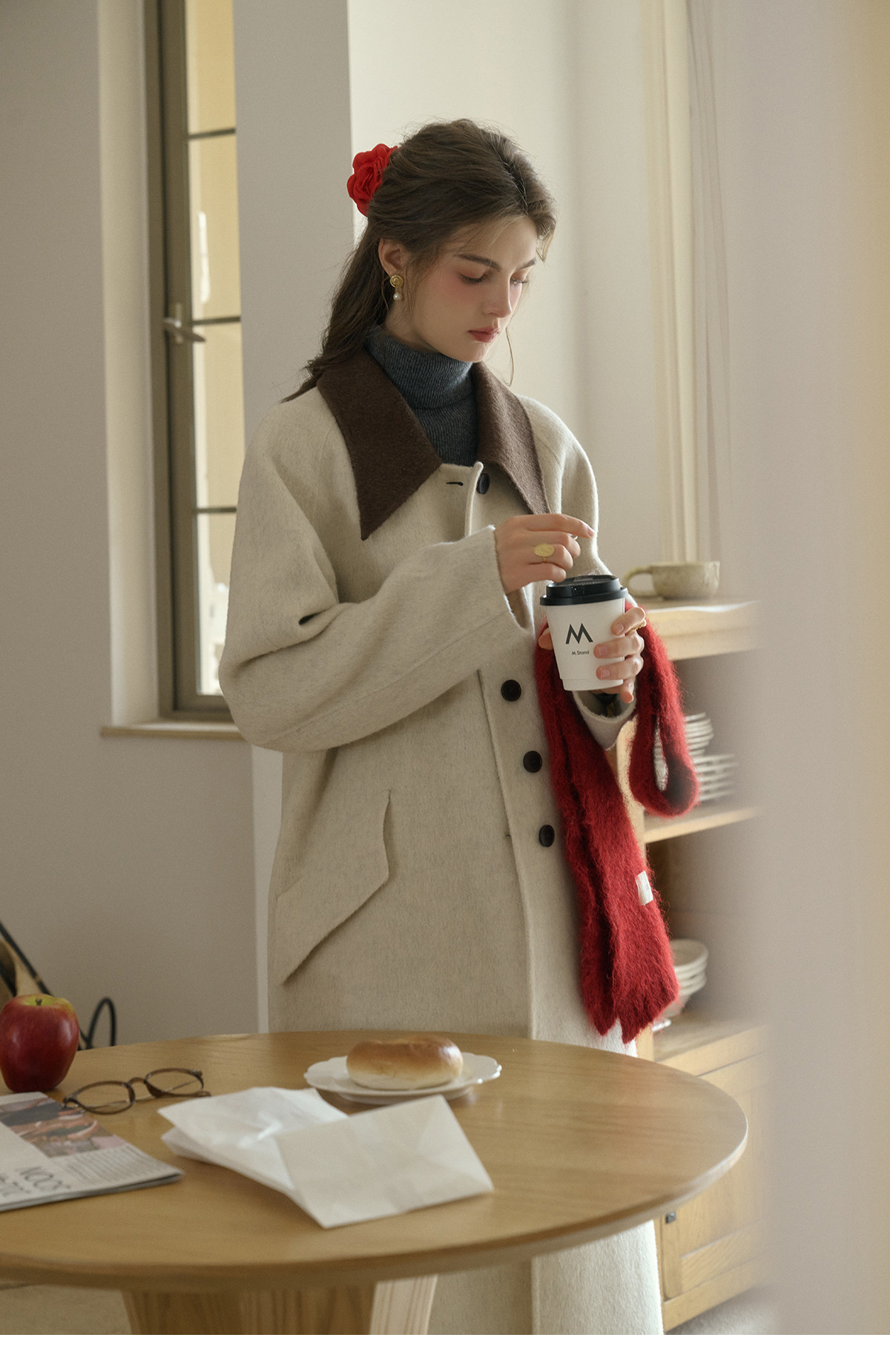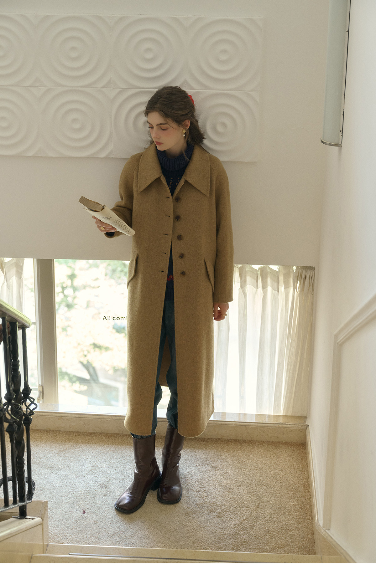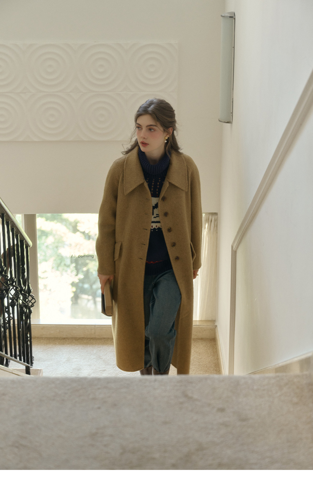 SimpleRetro Melting Snow Frosting Retro Revers doppelseitiger Wollmantel Damen langer Wollmantel aus australischer Wolle