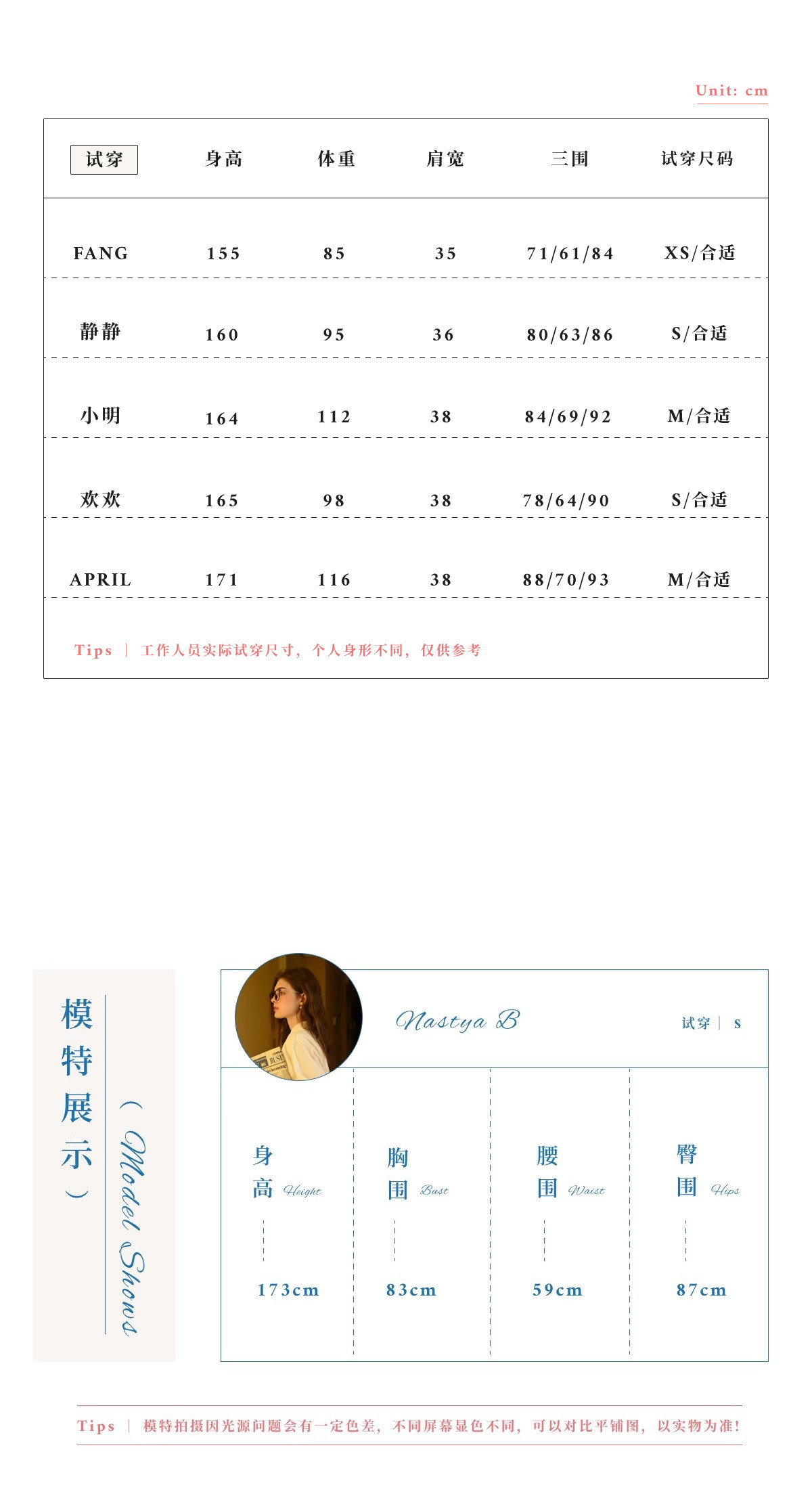 China (cm) 160-165/84-86 165-170 / 88-90 167-172 / 92-96 168-173 / 98-102 170-176 / 106-110