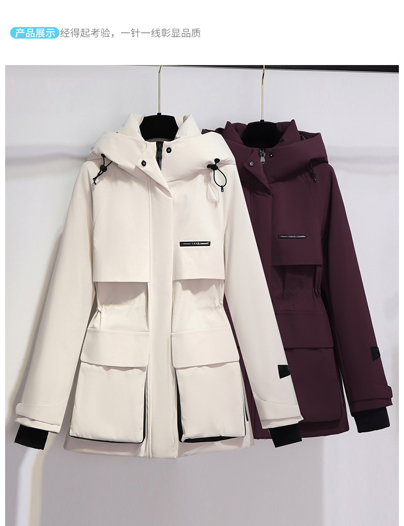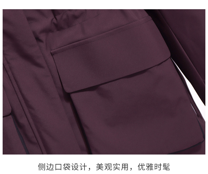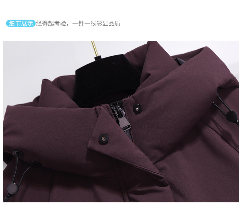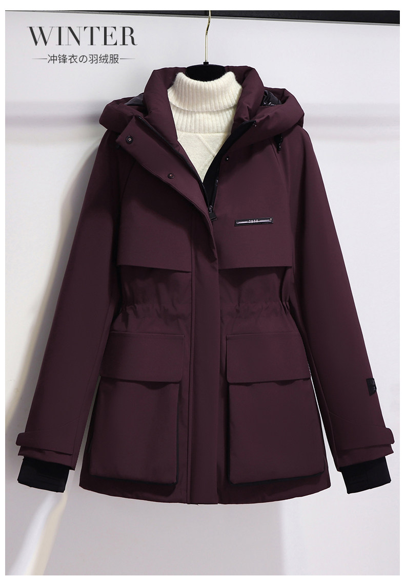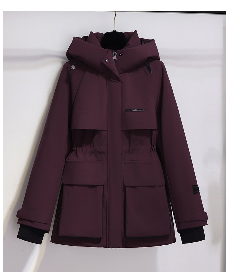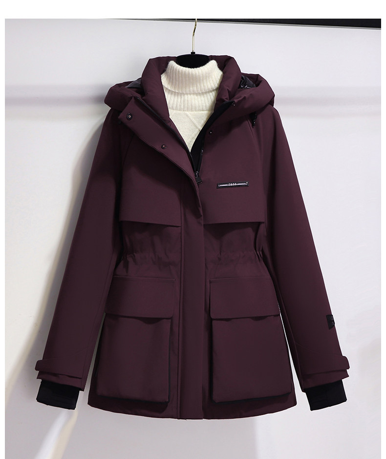 Burgundy Parka down Jacket for Women, Mid-Length, 2025 New Winter Thickened Hooded Workwear Parka Coat