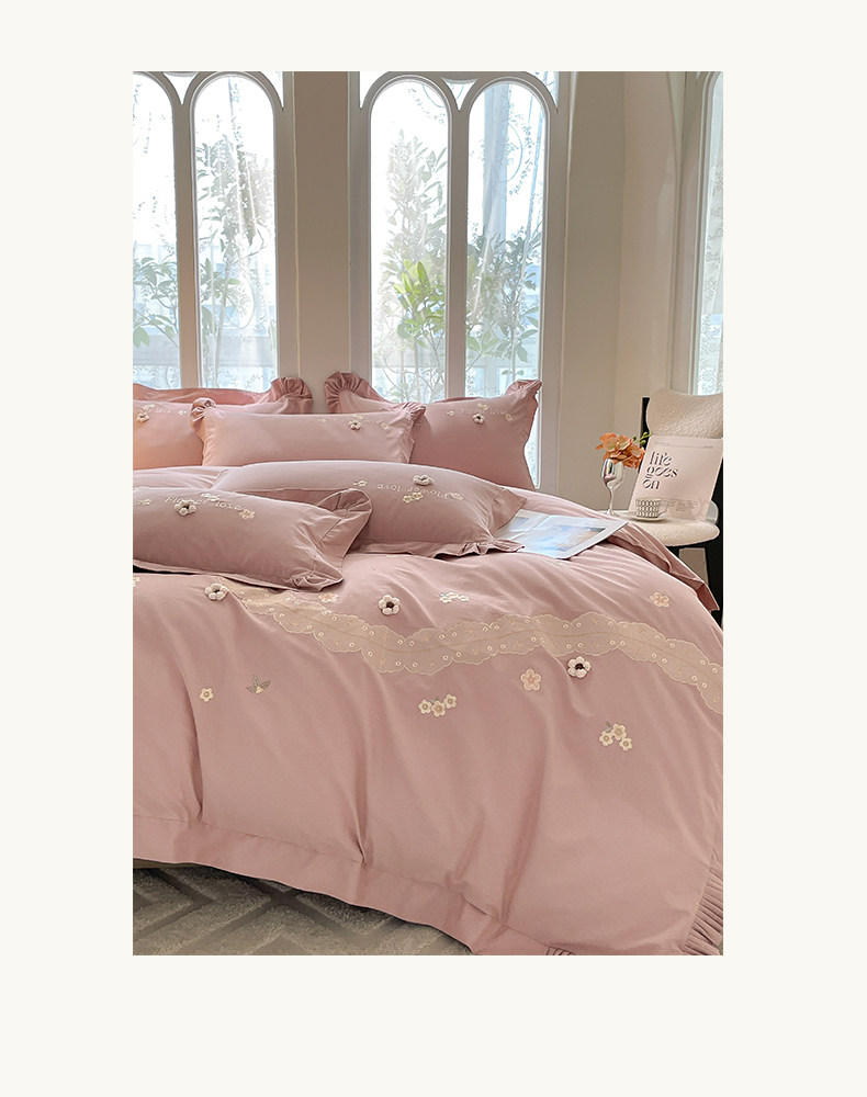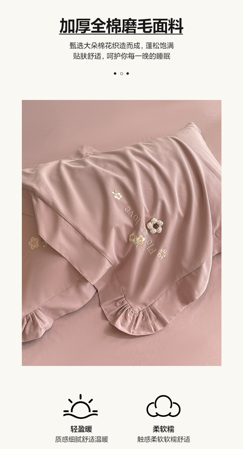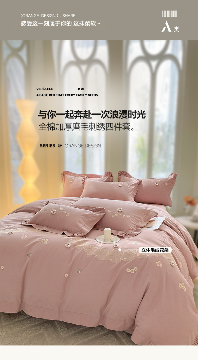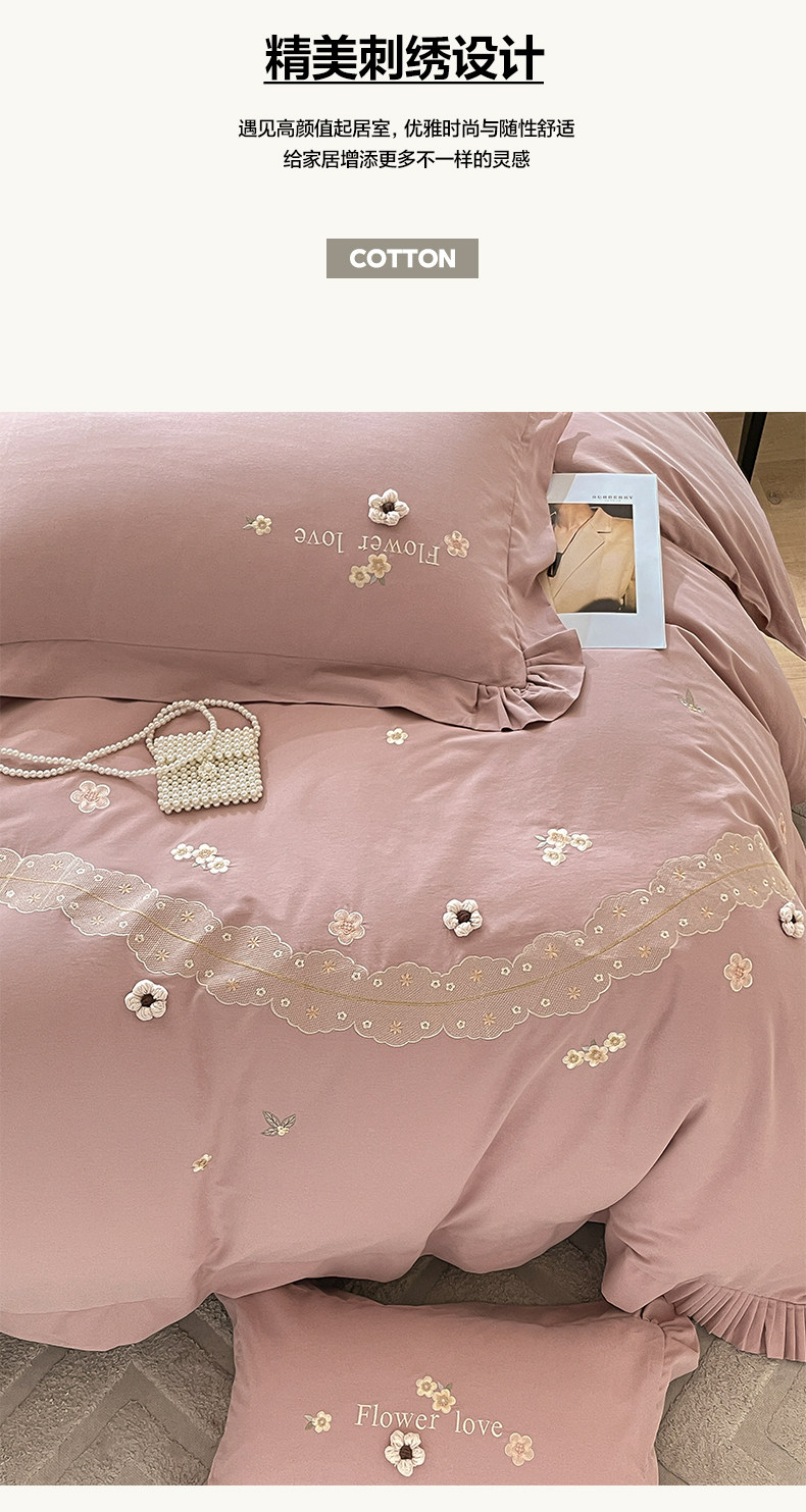 高端A类母婴级180支纯棉磨毛四件套刺绣全棉被套床笠床单床上用品