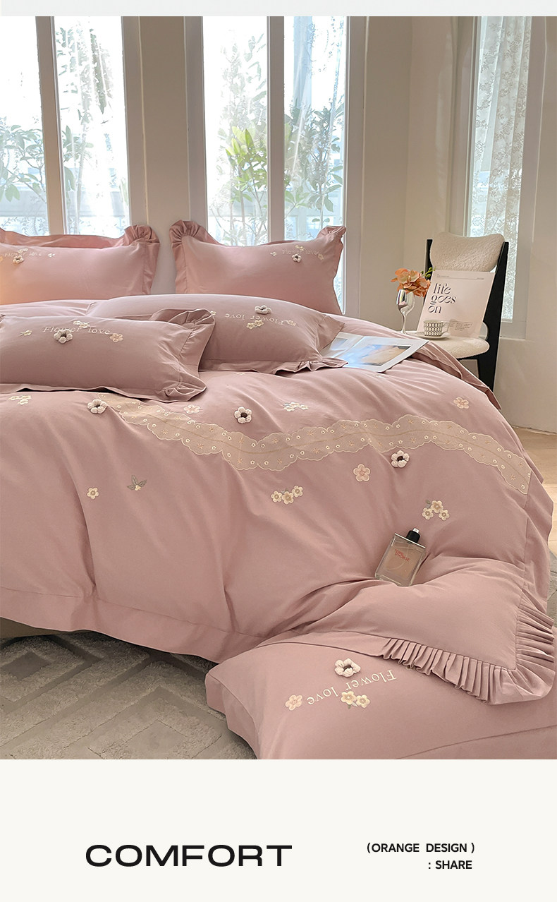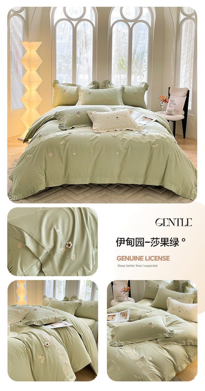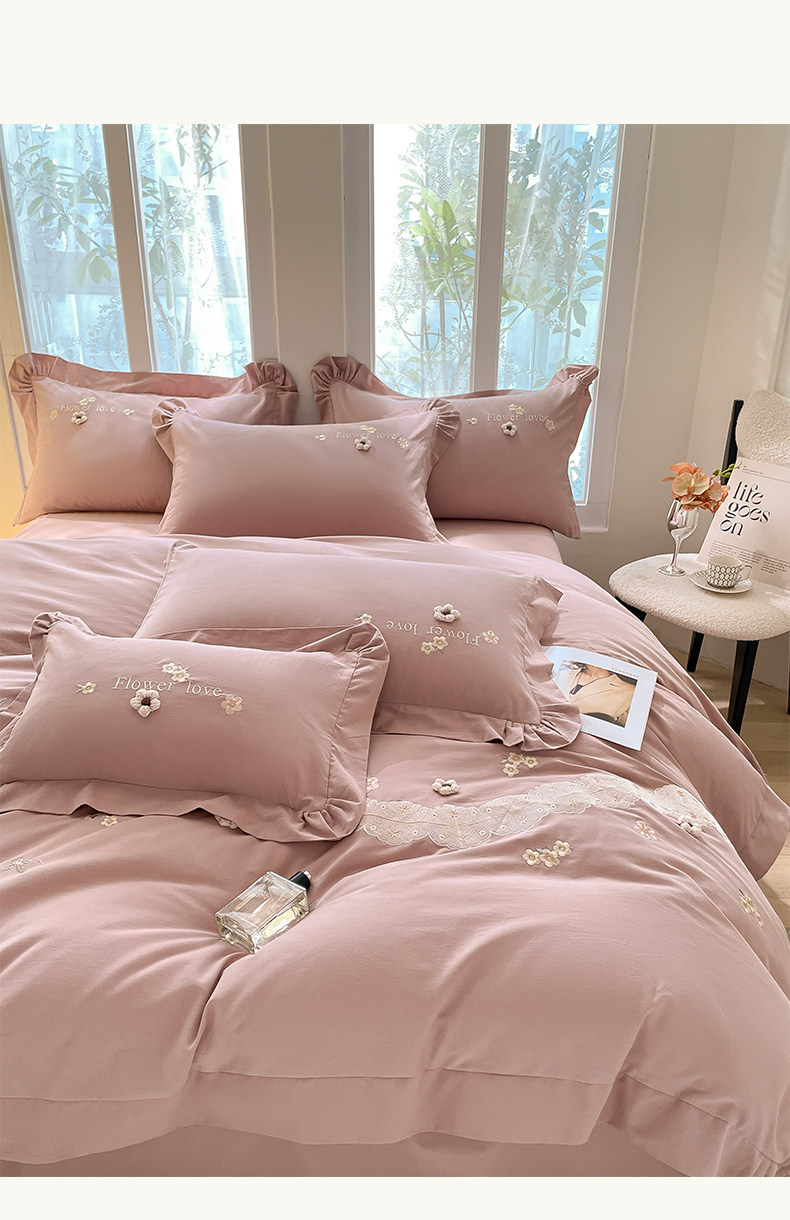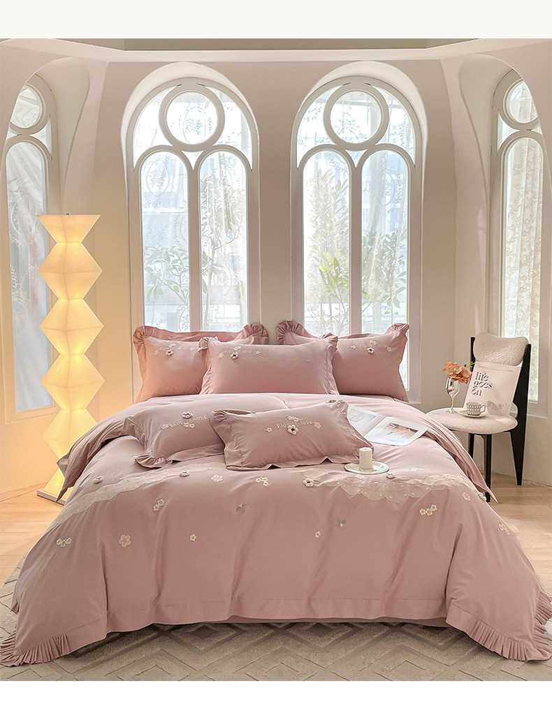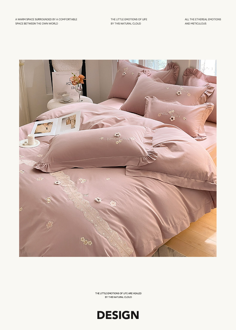 高端A类母婴级180支纯棉磨毛四件套刺绣全棉被套床笠床单床上用品