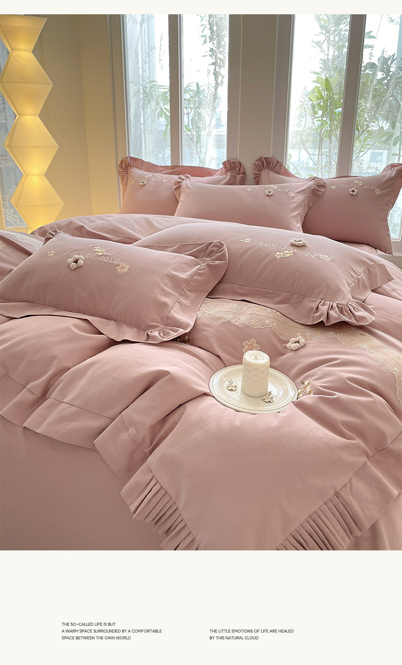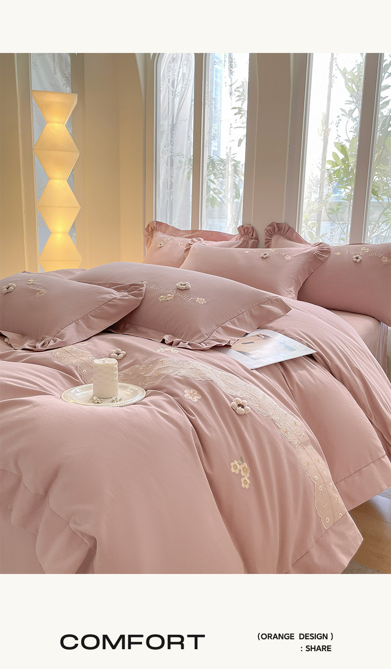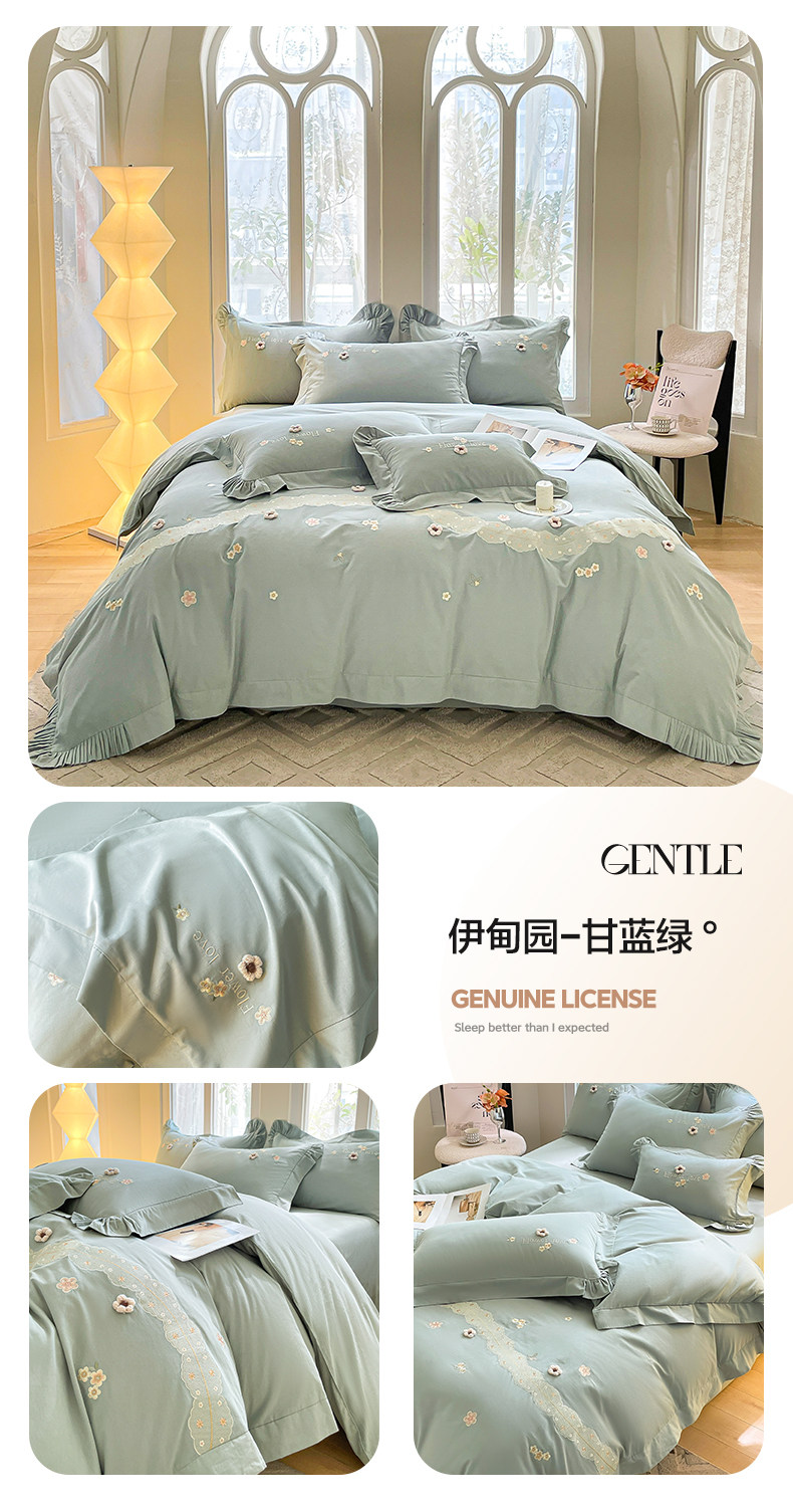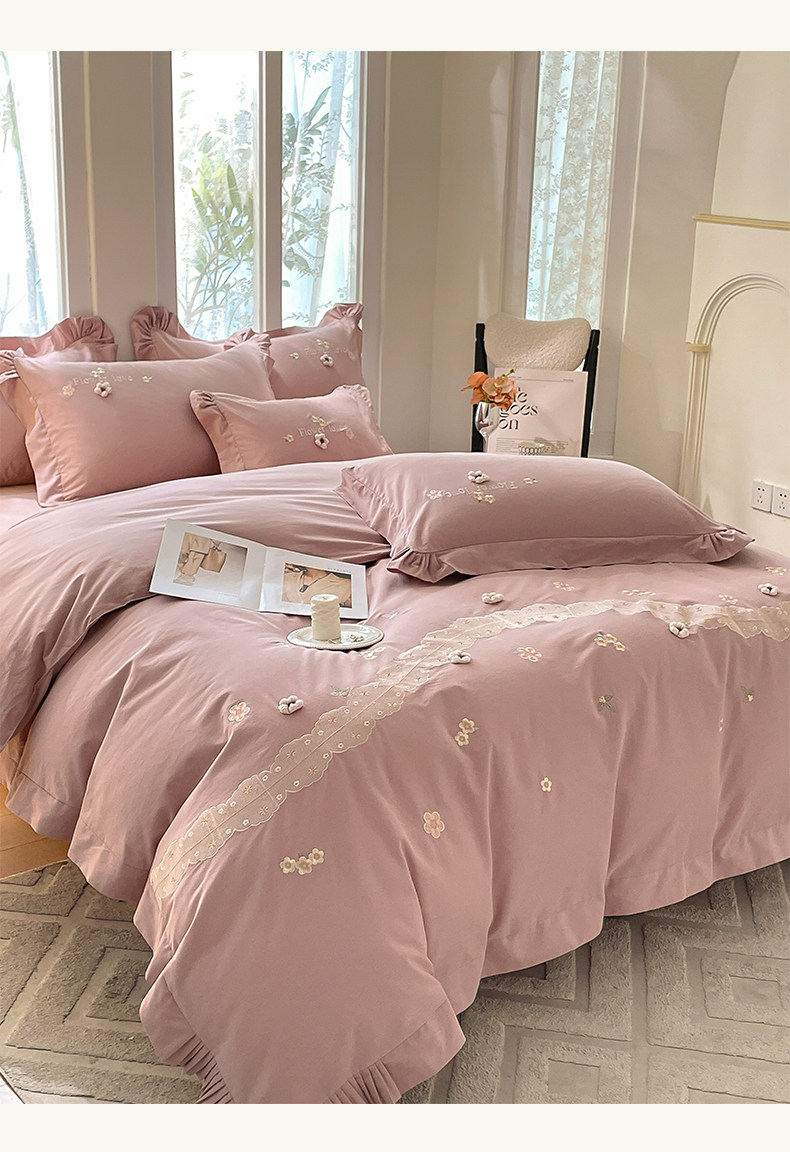 高端A类母婴级180支纯棉磨毛四件套刺绣全棉被套床笠床单床上用品