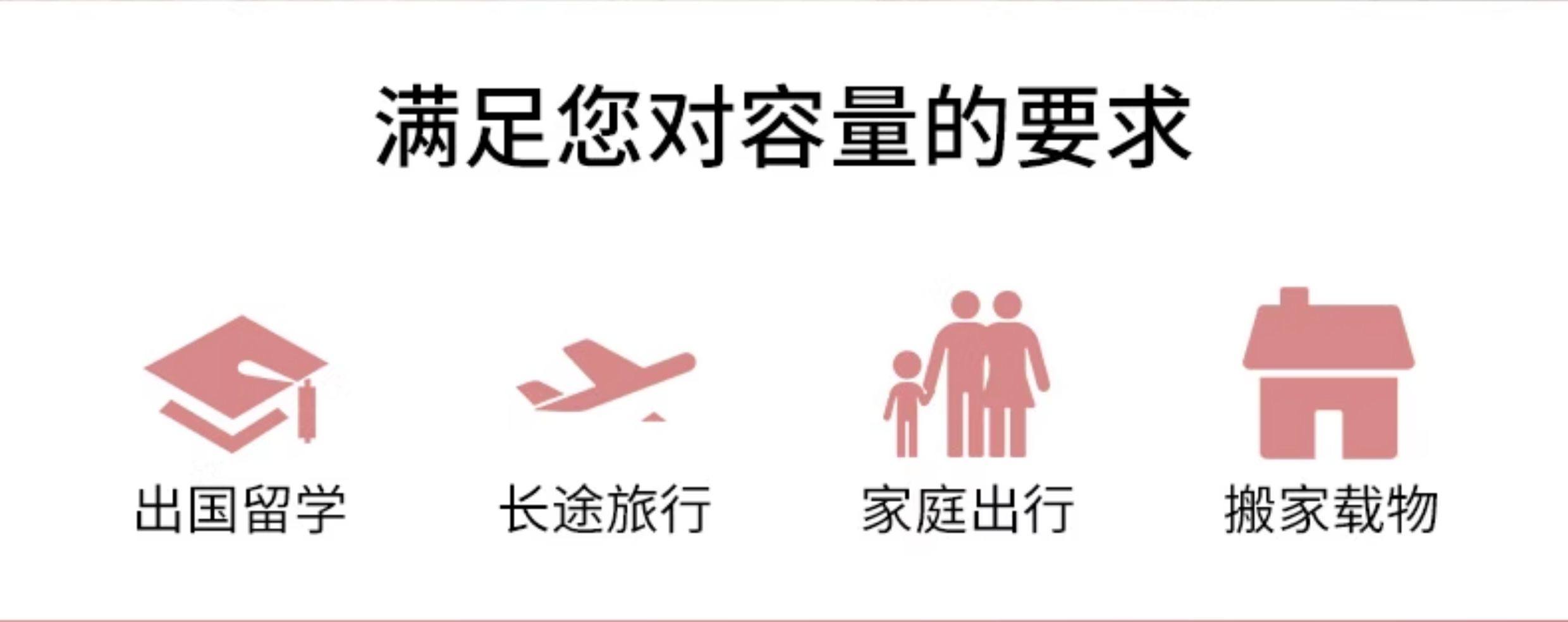 Tamaño 20 pulgadas (sin ganchos laterales/recorrido de corta duración),24 pulgadas (37 minutos, adecuado para viajes de 3 a 5 días),26 pulgadas (37 minutos, adecuado para 5-7 días de viaje),28 pulgadas (actualizado a quinta rueda/capacidad súper grande, de 7 a 10 días de viaje),30 pulgadas (actualizado a quinta rueda/capacidad súper grande, 10 a 15 días de viaje),32 pulgadas (actualizado a quinta rueda/capacidad súper grande, viaje por más de 15 días),34 pulgadas (actualizado a quinta rueda/capacidad súper grande, viajes al extranjero y alrededor del mundo)