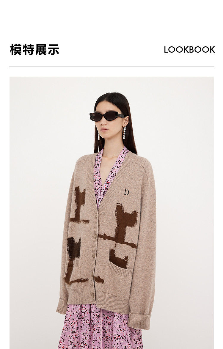 Dazzle 2025 Spring New Vintage Age-Reducing Intarsia Knit Cardigan Sweater Jacket for Women