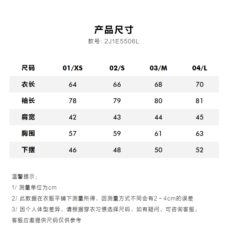 Size 01/XS,02/S,03/M,04/L