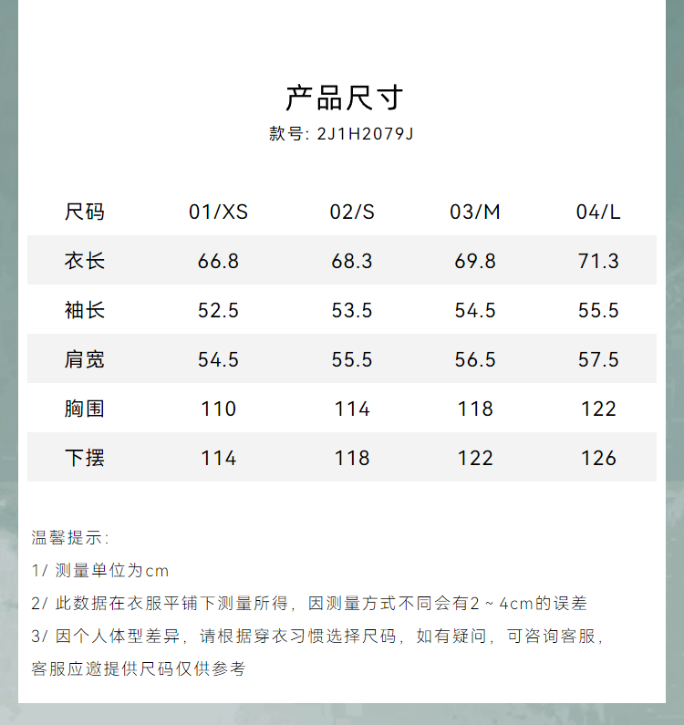 Size 01/XS,02/S,03/M,04/L