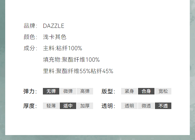 Material Composition Viscose Fiber (Viscose Fiber) 100%