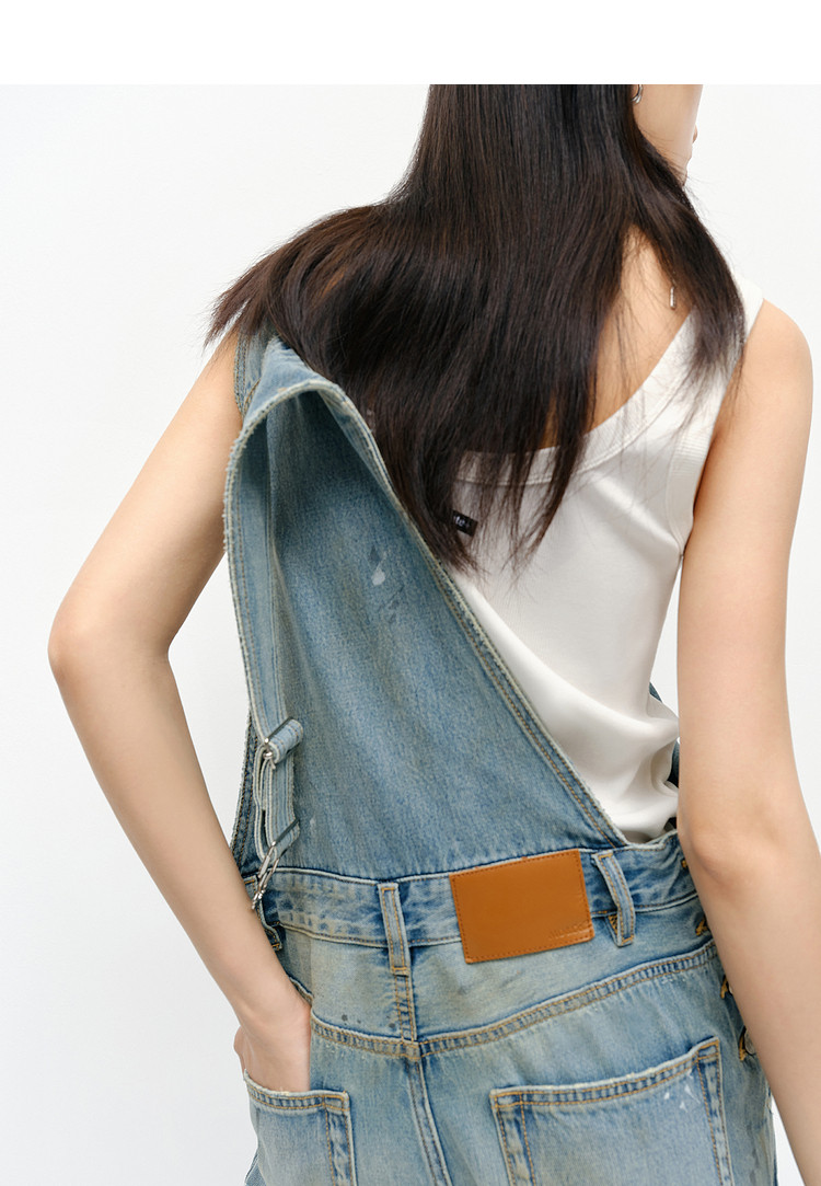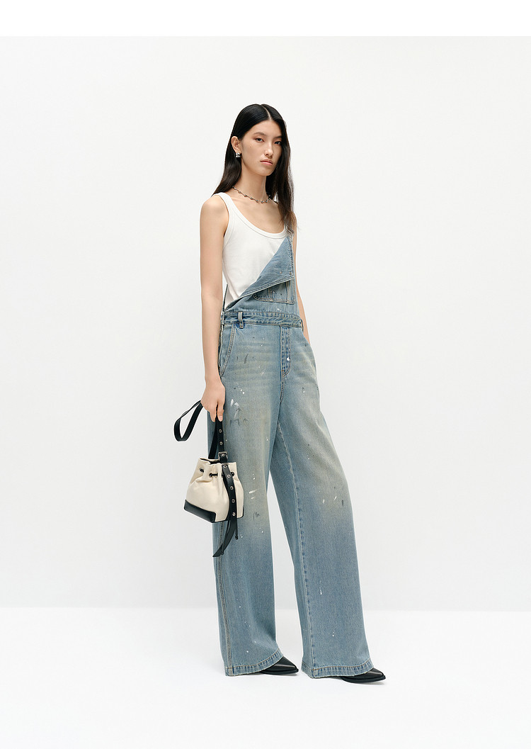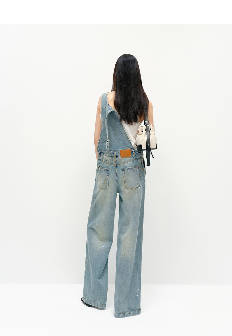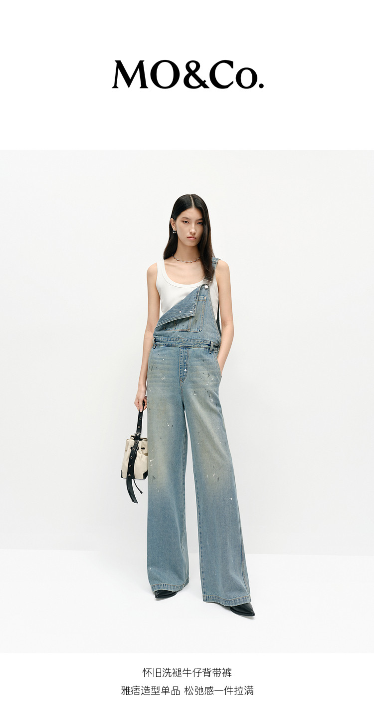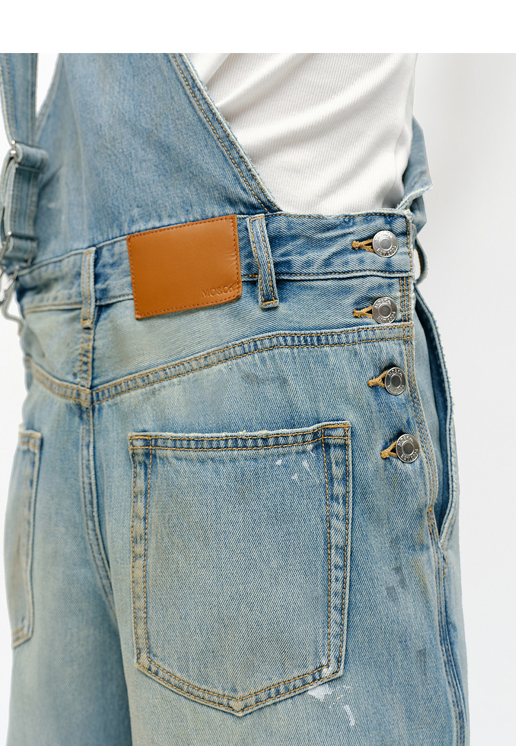 Moco Denim Overalls Retro Washed Faded Ink Print High Waist Straight Leg Mbe1Jps001
