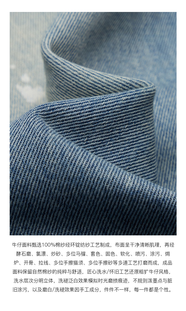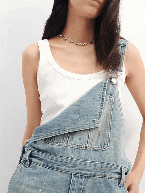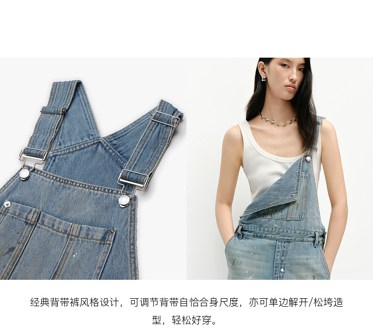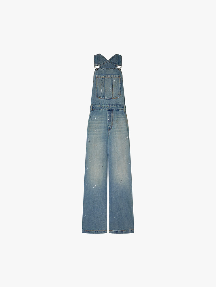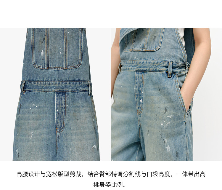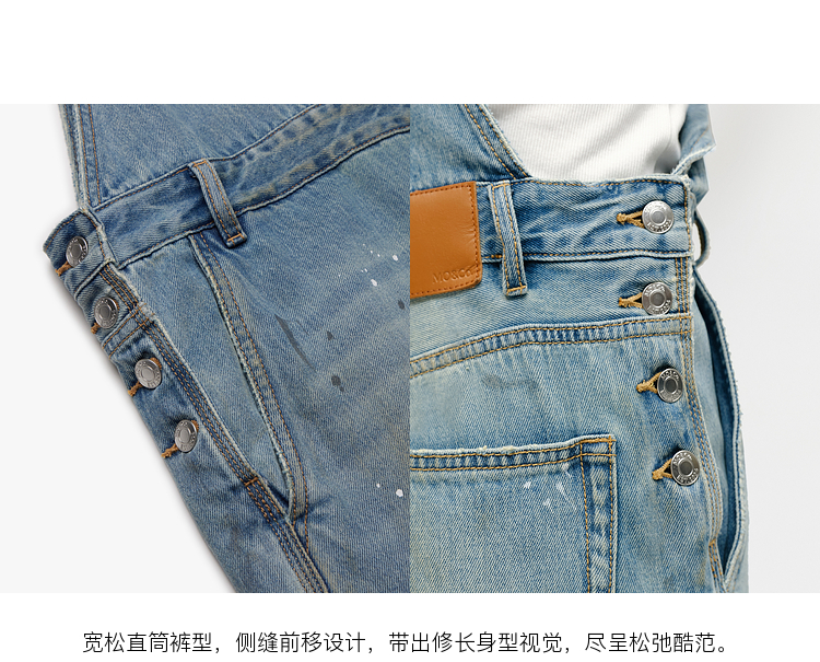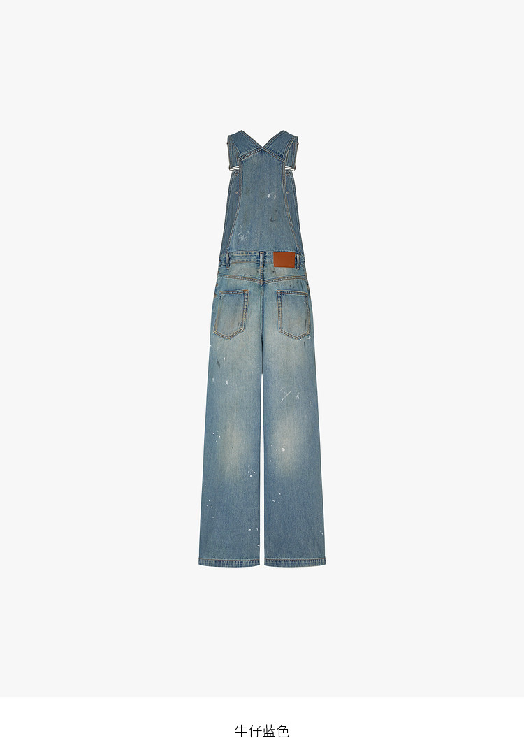 Moco Denim Overalls Retro Washed Faded Ink Print High Waist Straight Leg Mbe1Jps001