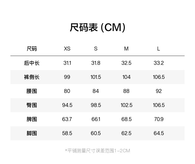 Outseam (cm) 99 cm 101.5 cm 104 cm 106.5 cm 109 cm