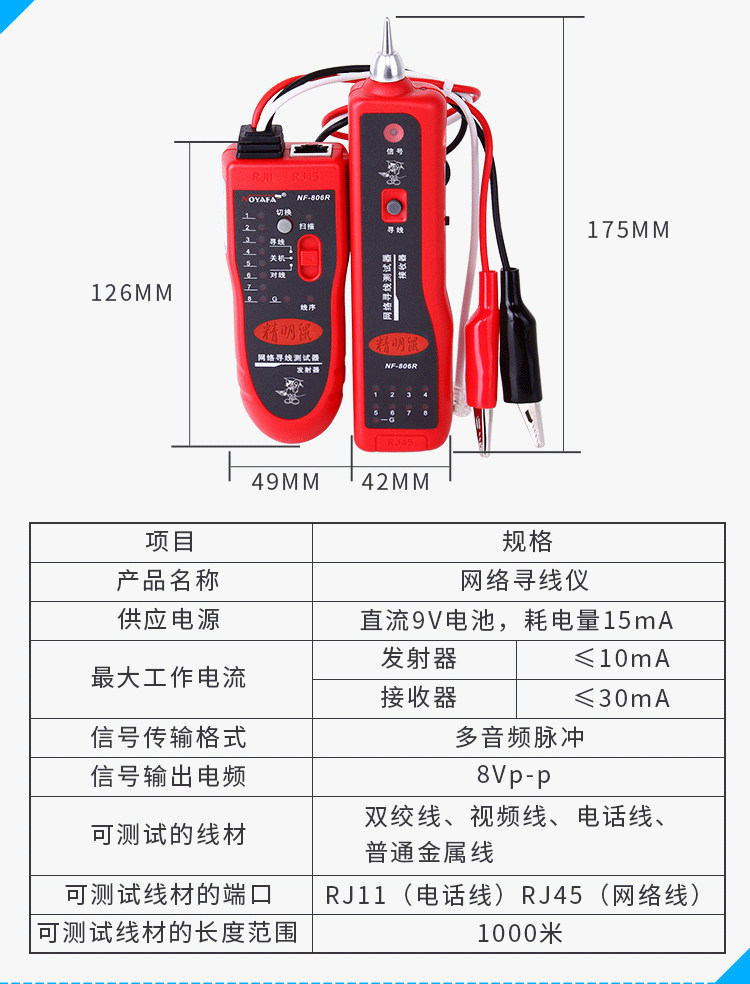 Smart Mouse Nf-806 Multi-Function Line Finder Network Cable Telephone Line Testing Device 60V Voltage-Resistant and Anti-Burn