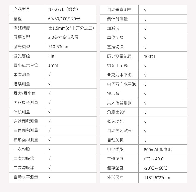 Color Classification Nf-270- 70m Data Storage 99 Groups,Nf-276- 50m Lithium Battery Direct Charging,Nf-277- 60m Outdoor Green Light-Bluetooth Connection-Lithium Battery Direct Charging,Nf-277- 100m Outdoor Green Light-Bluetooth Connection-Lithium Battery Direct Charging