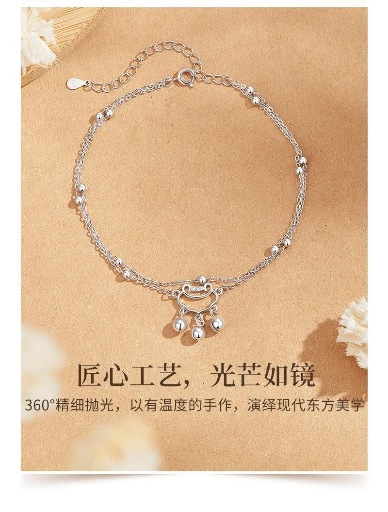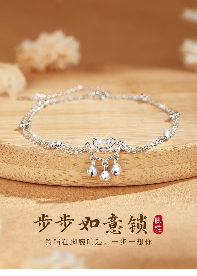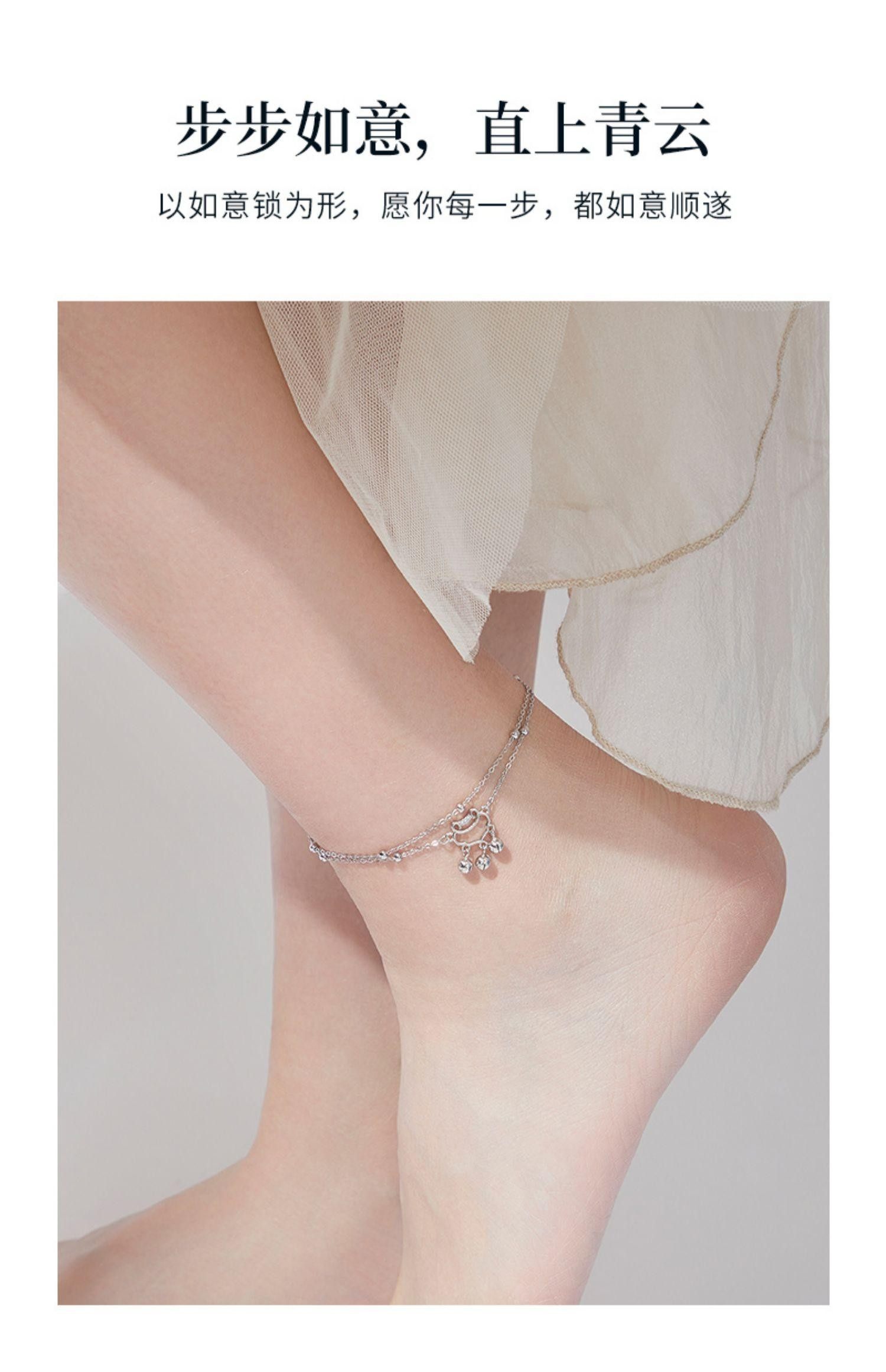 Tobillera con cierre seguro Ruyi de plata S925, nueva moda para mujer, tobillera sexy de doble capa, tobillera para pie, joyería, regalo de cumpleaños