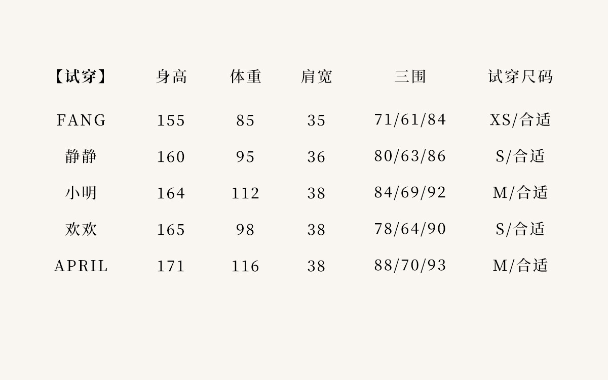 China (cm) 160-165/84-86 165-170 / 88-90 167-172 / 92-96 168-173 / 98-102 170-176 / 106-110