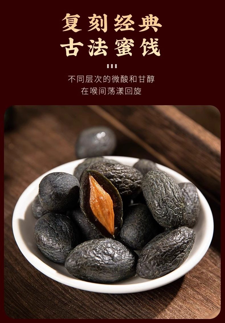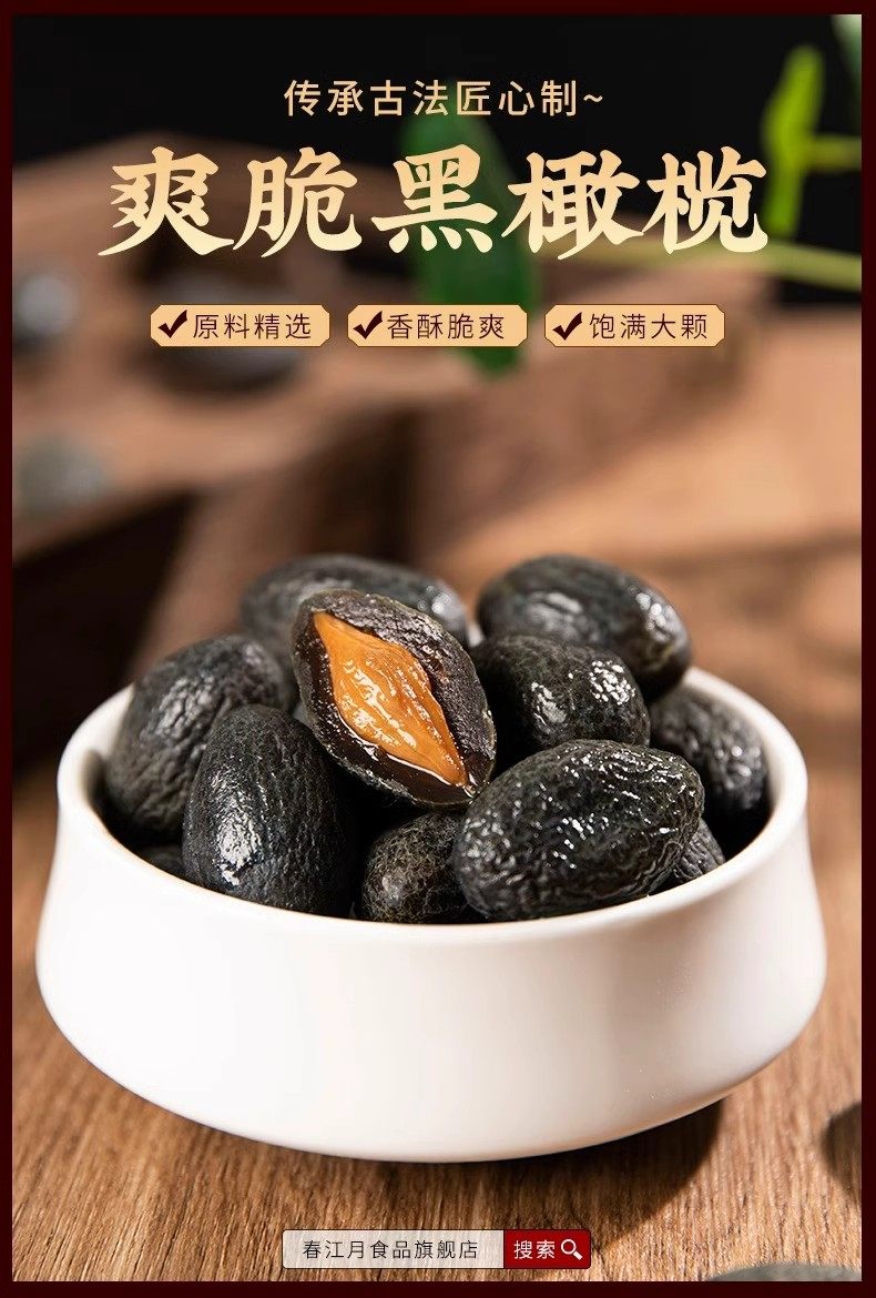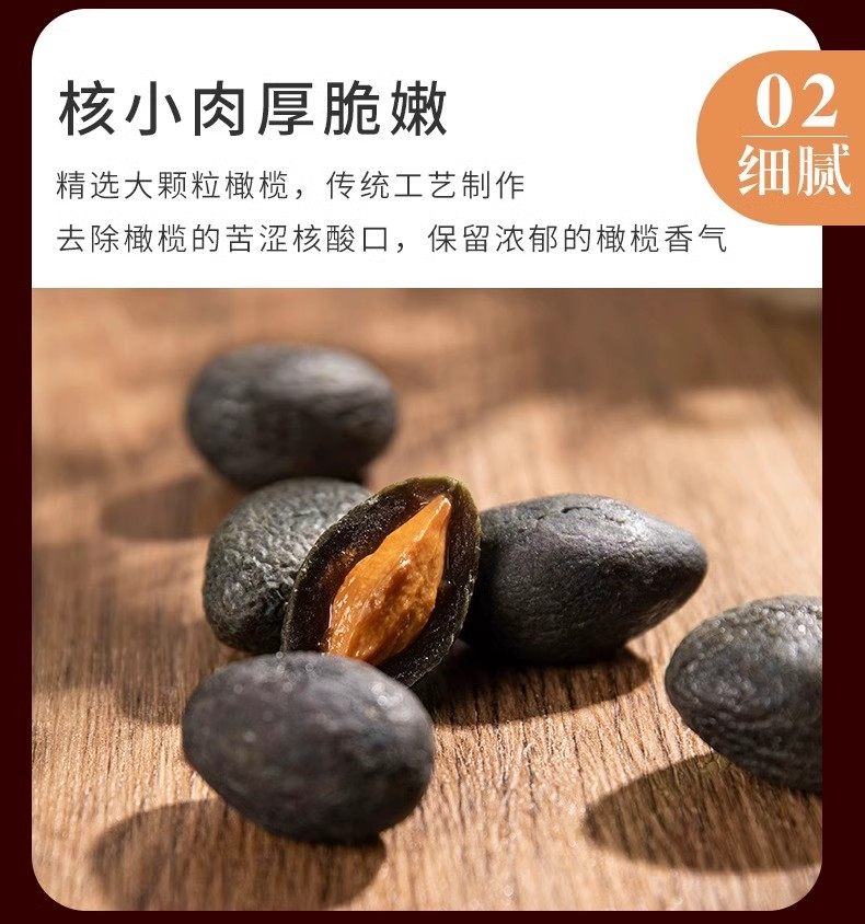 Especialidad de Guangdong, aceitunas negras planas, suaves, glutinosas, dulces, frutos secos, snacks de té, frutas encurtidas, sabor auténtico y sabor antiguo.