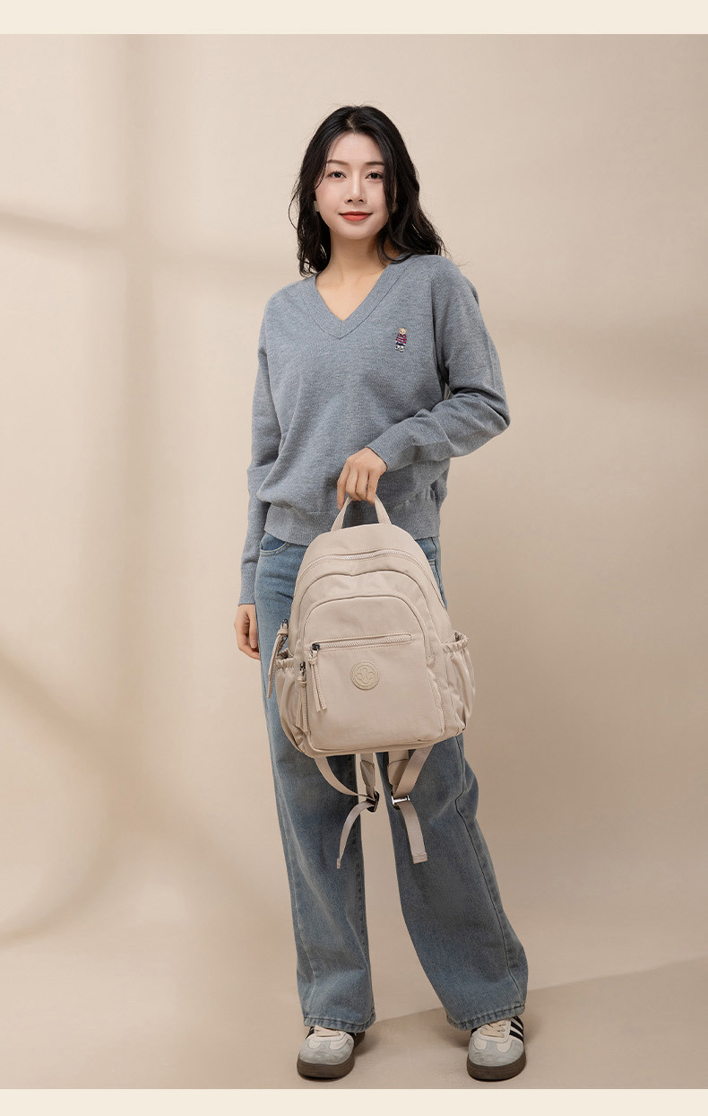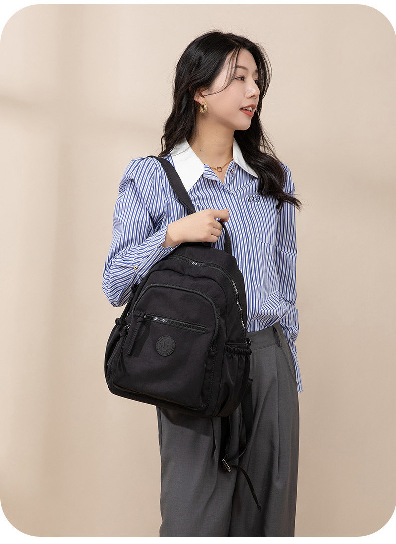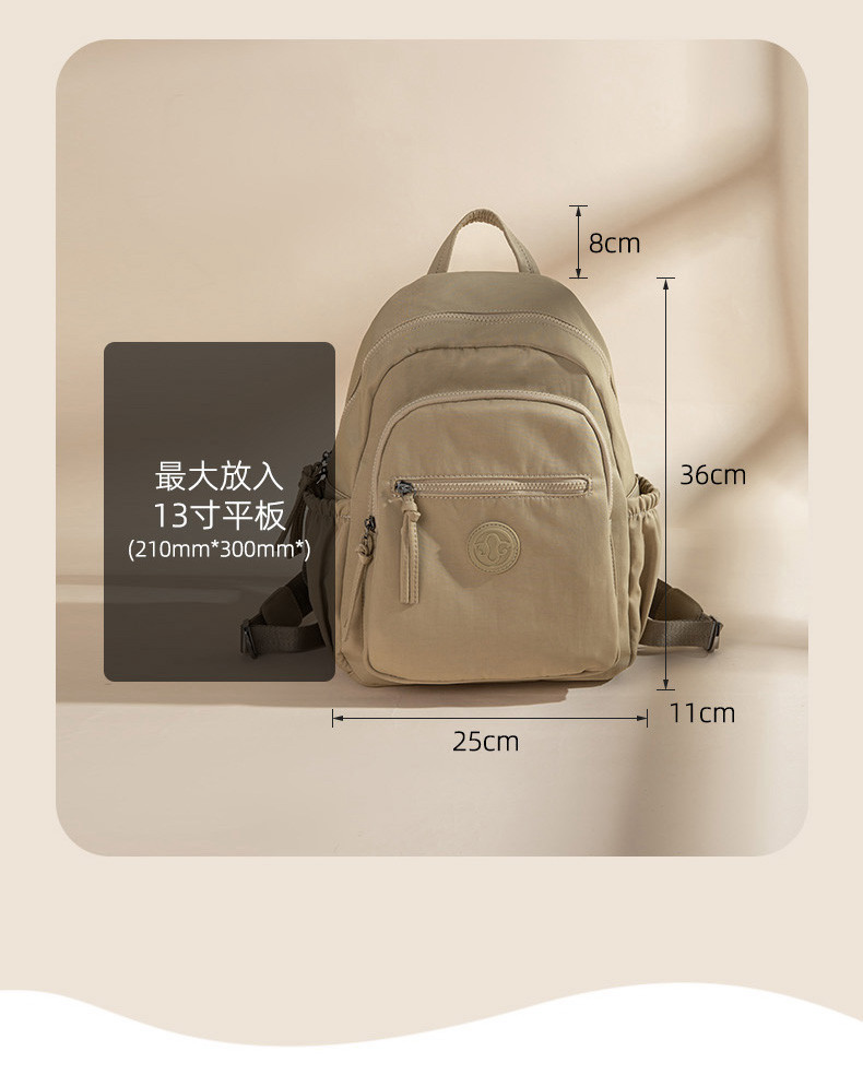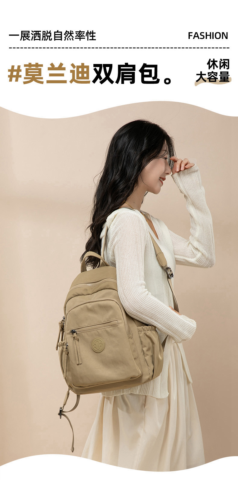 Sin cuero, tela pura, mochila ligera de nailon suave para mujer, mochila escolar para estudiantes de gran capacidad, mochila de moda de viaje