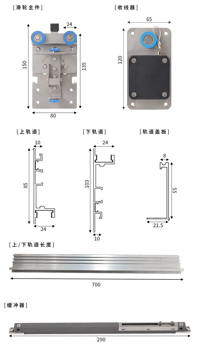 Push-button butterfly door hardware accessories Wardrobe pocket door slide hidden folding side insert swing door track