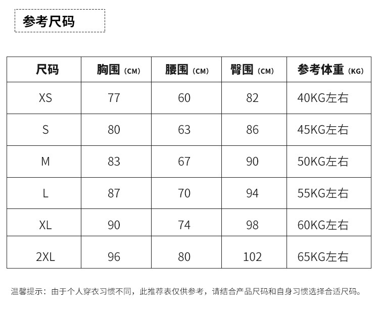 China (cm) 160-165/84-86 165-170 / 88-90 167-172 / 92-96 168-173 / 98-102 170-176 / 106-110