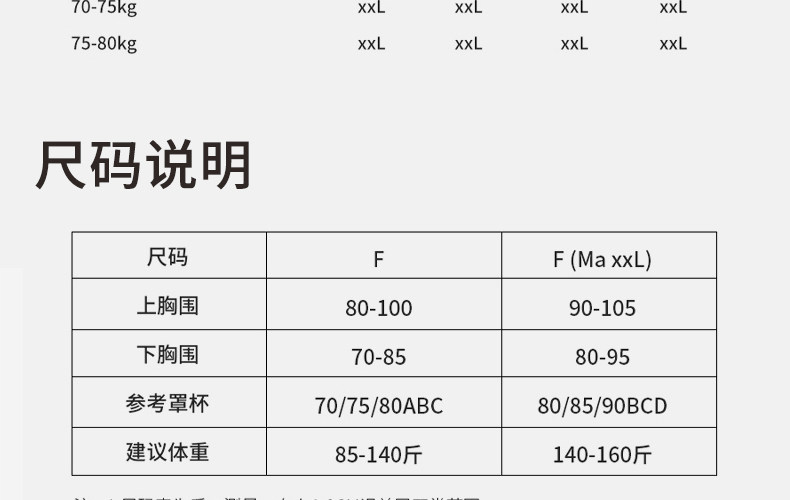 Size F [Recommend 70-80Abc,40-62.5kg],2XL [Recommend 80-90Bcd,62.5-80kg]