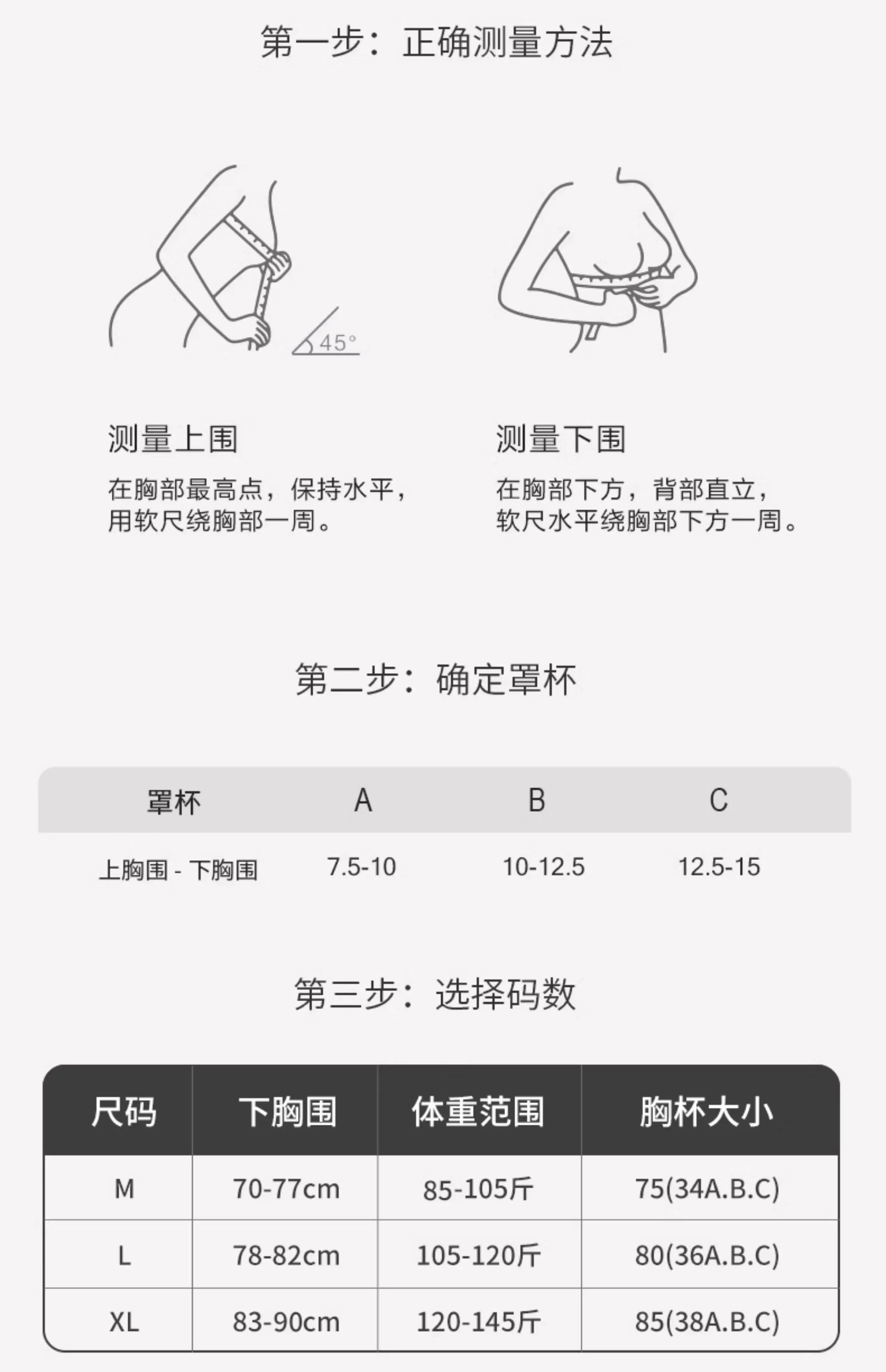 Размер M [Подходит для 42.5-52.5kg]75A、75B、75C,L [Подходит для 52.5-60kg]80A、80B、80C,XL [Подходит для 60-72.5kg]85A、85B、85C