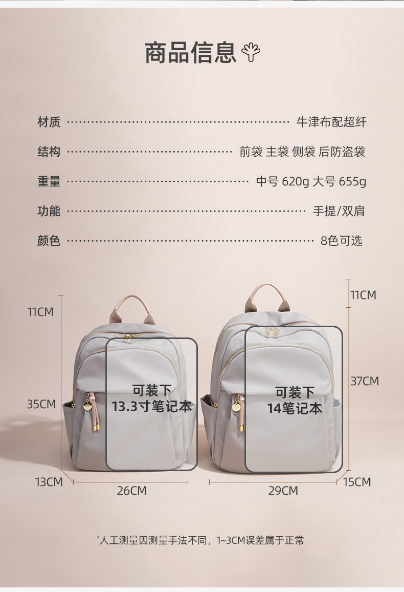 时尚轻便大容量旅行包女尼龙双肩包防水电脑书包牛津布韩版背包潮