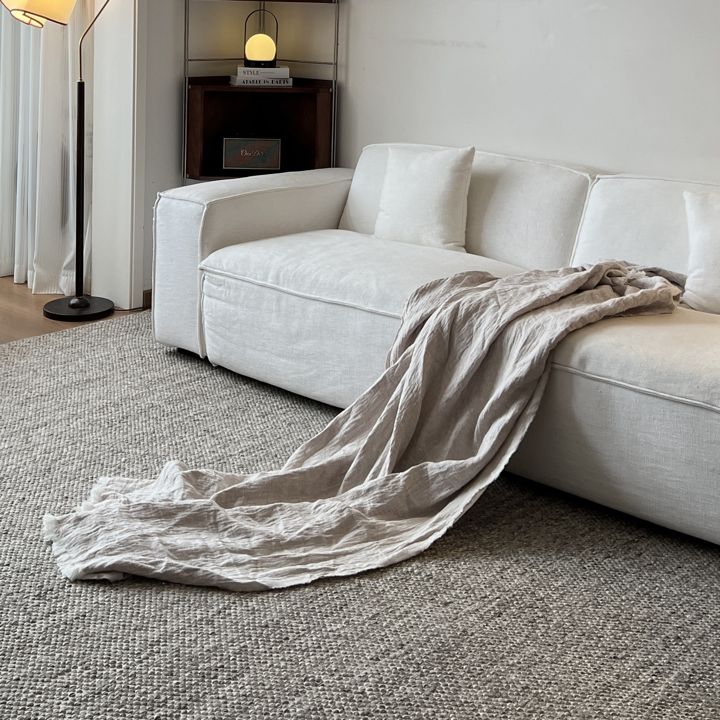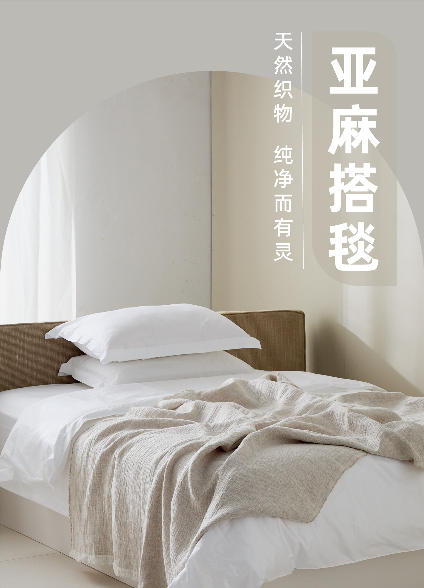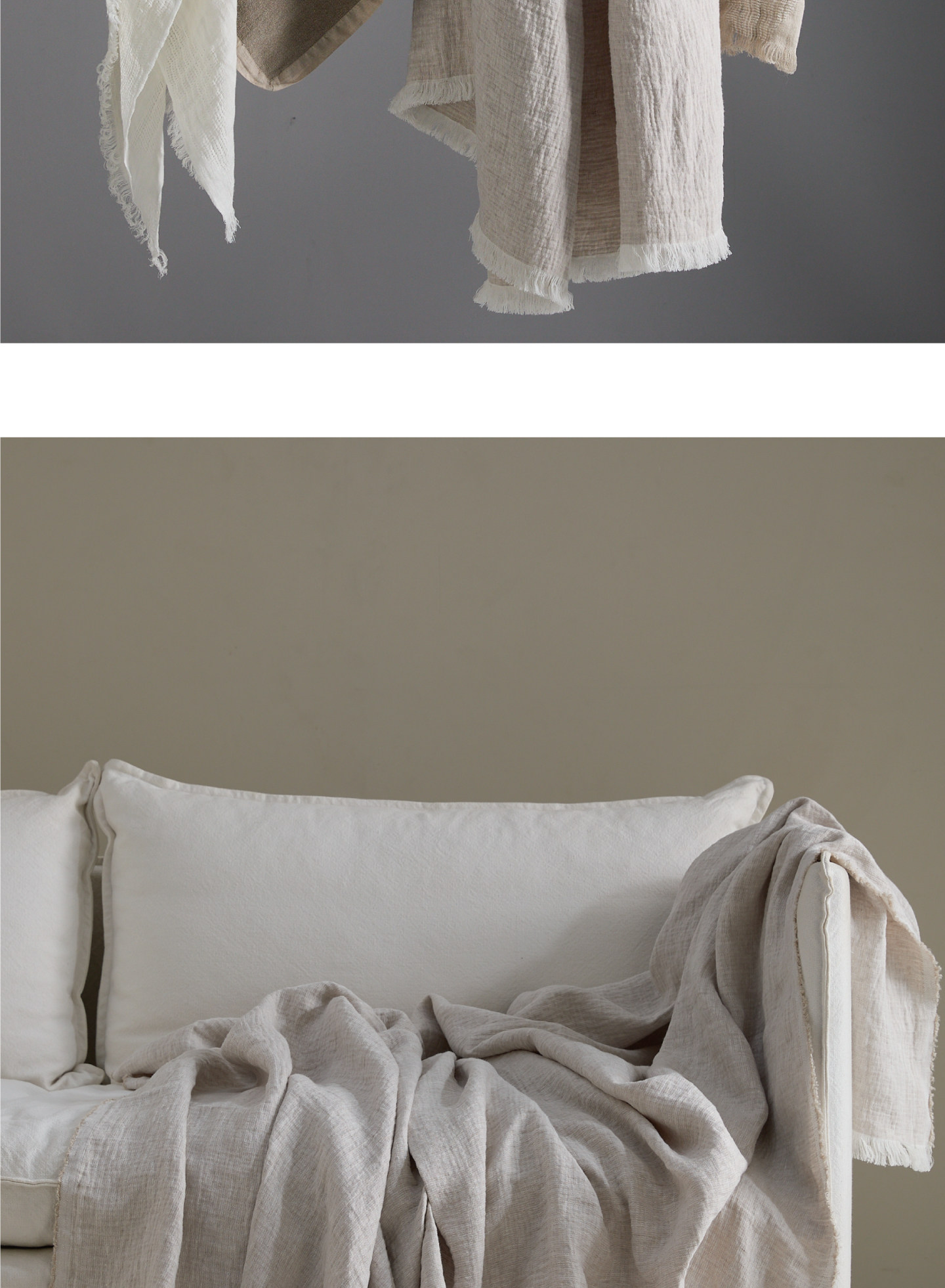 无风栖行侘寂风纯亚麻盖毯夏季透气民宿酒店床尾毯空调毯纯色搭巾