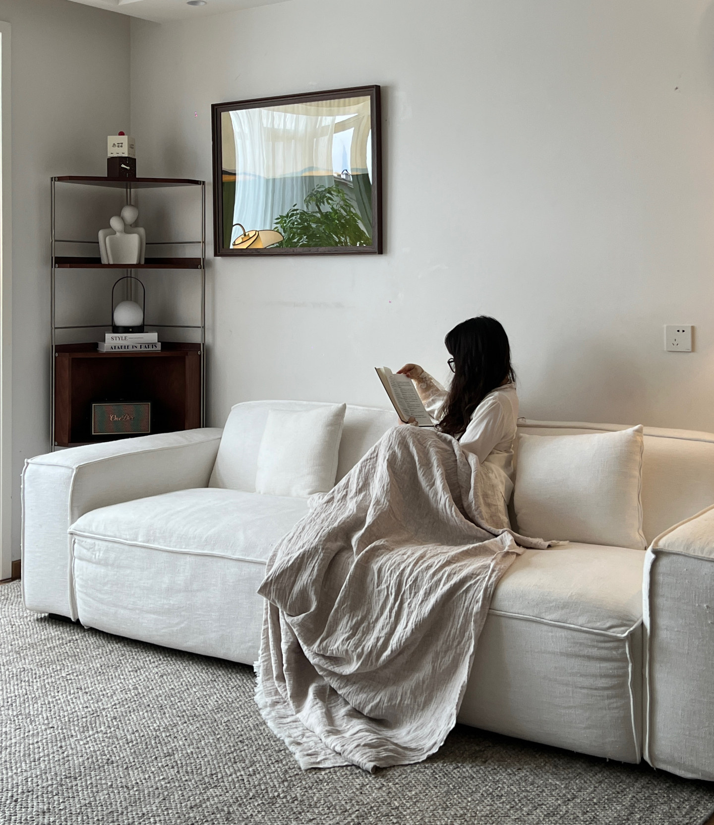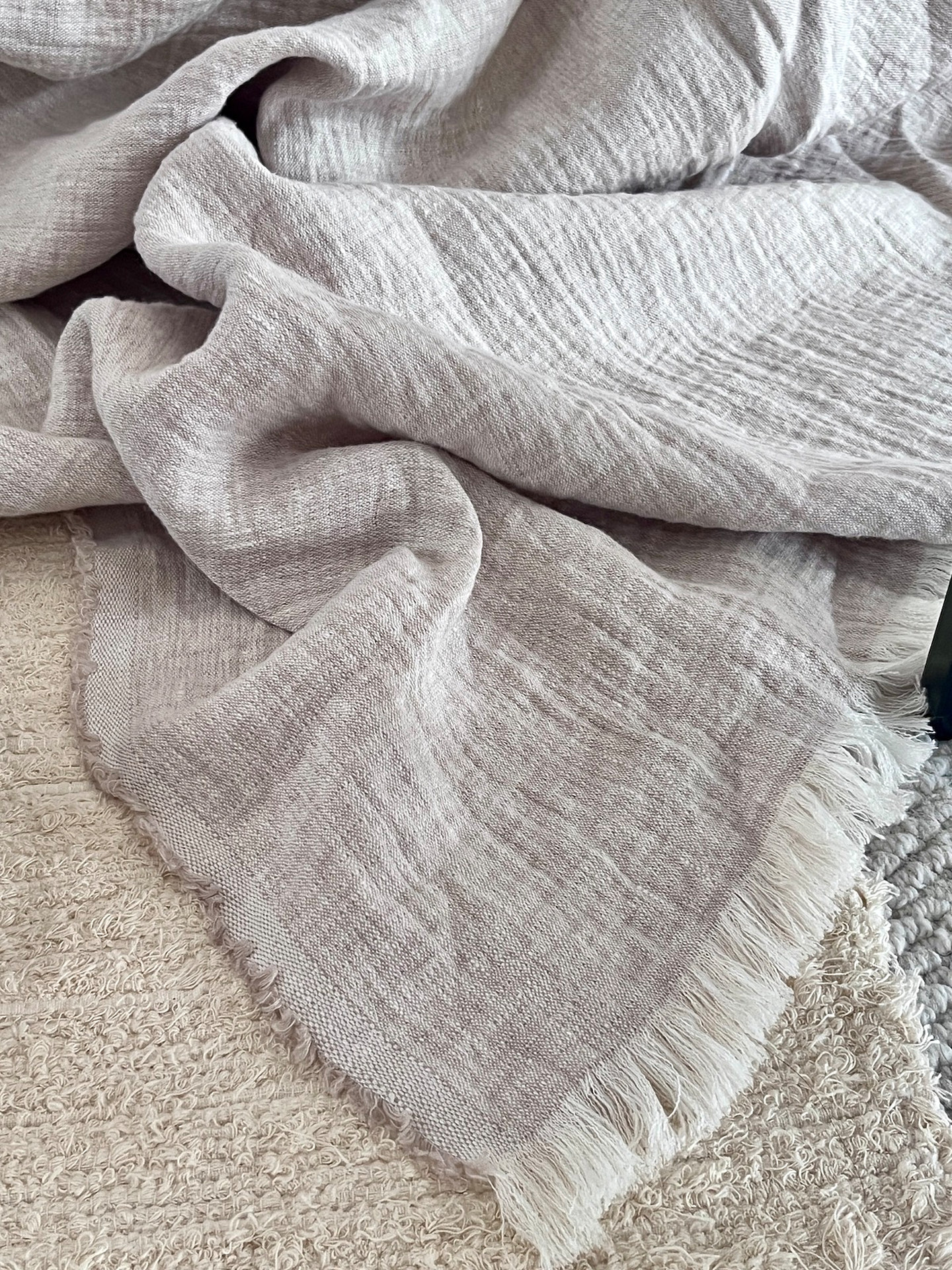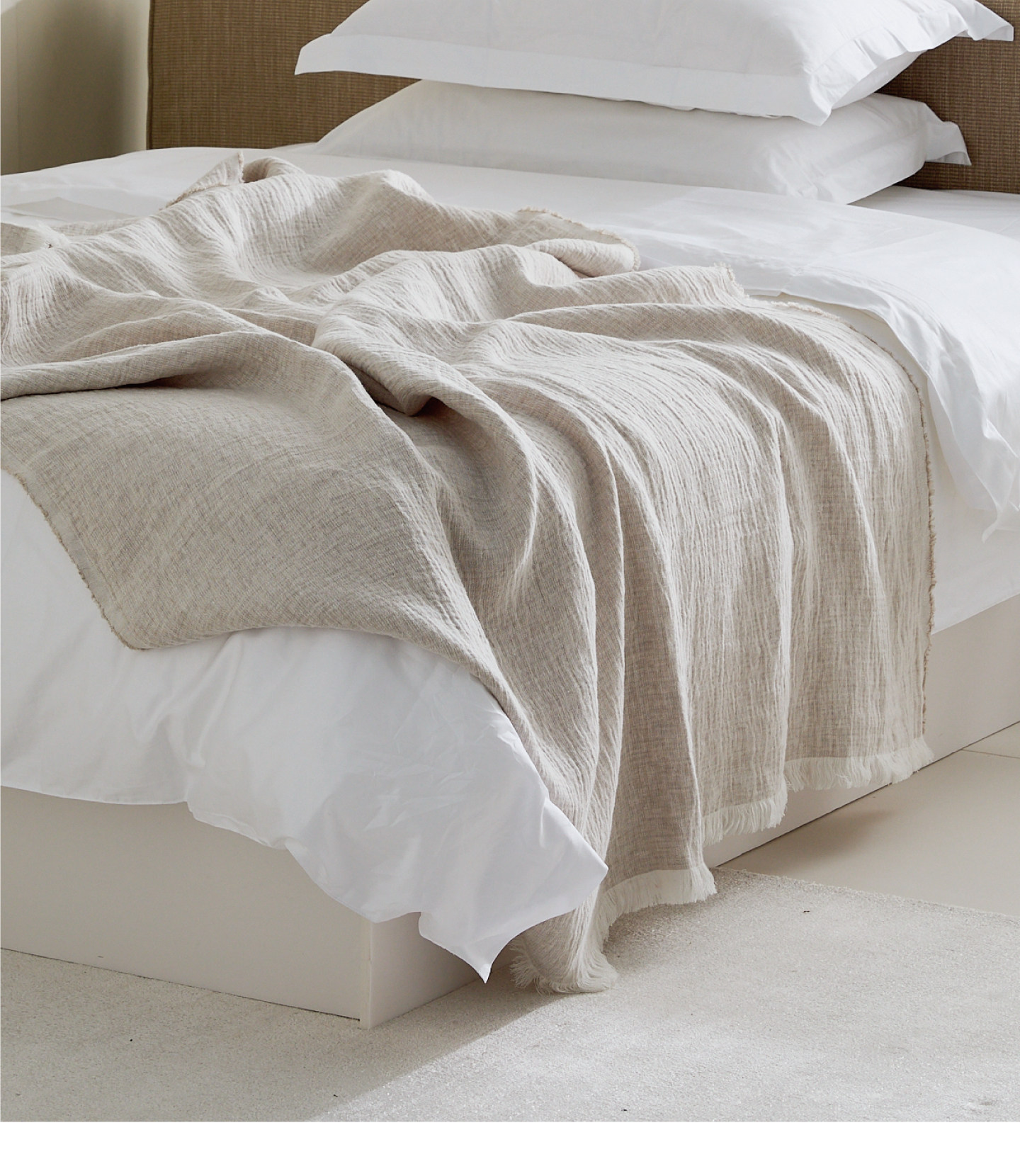 无风栖行侘寂风纯亚麻盖毯夏季透气民宿酒店床尾毯空调毯纯色搭巾