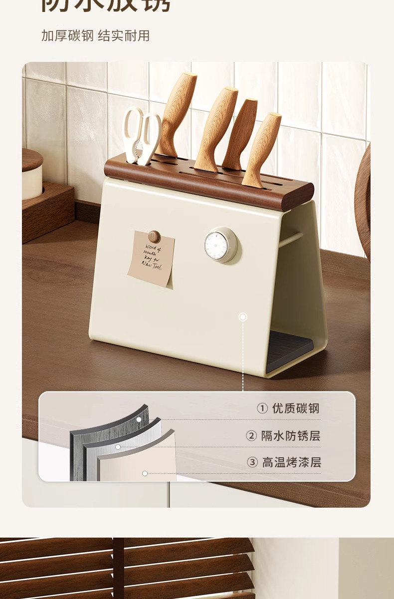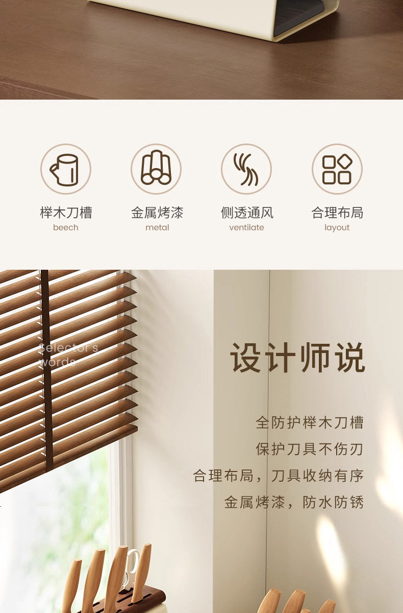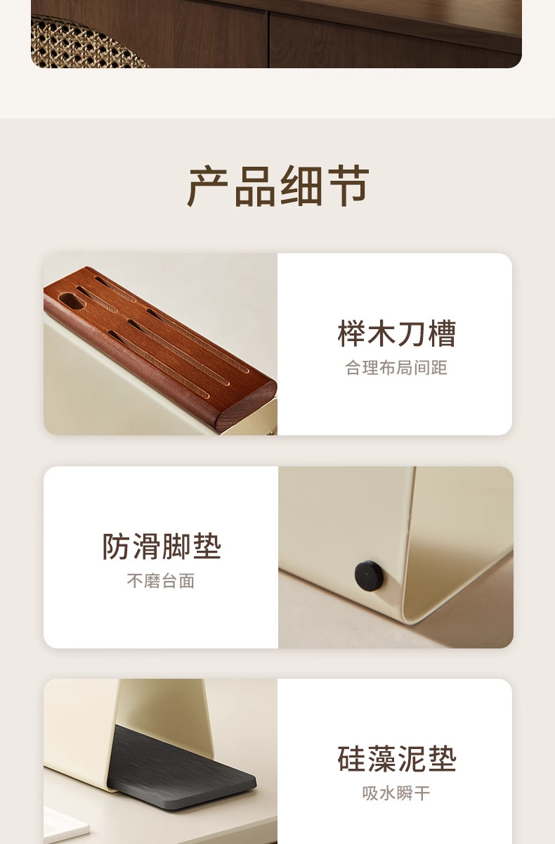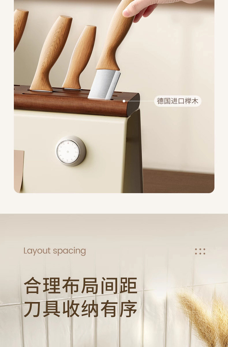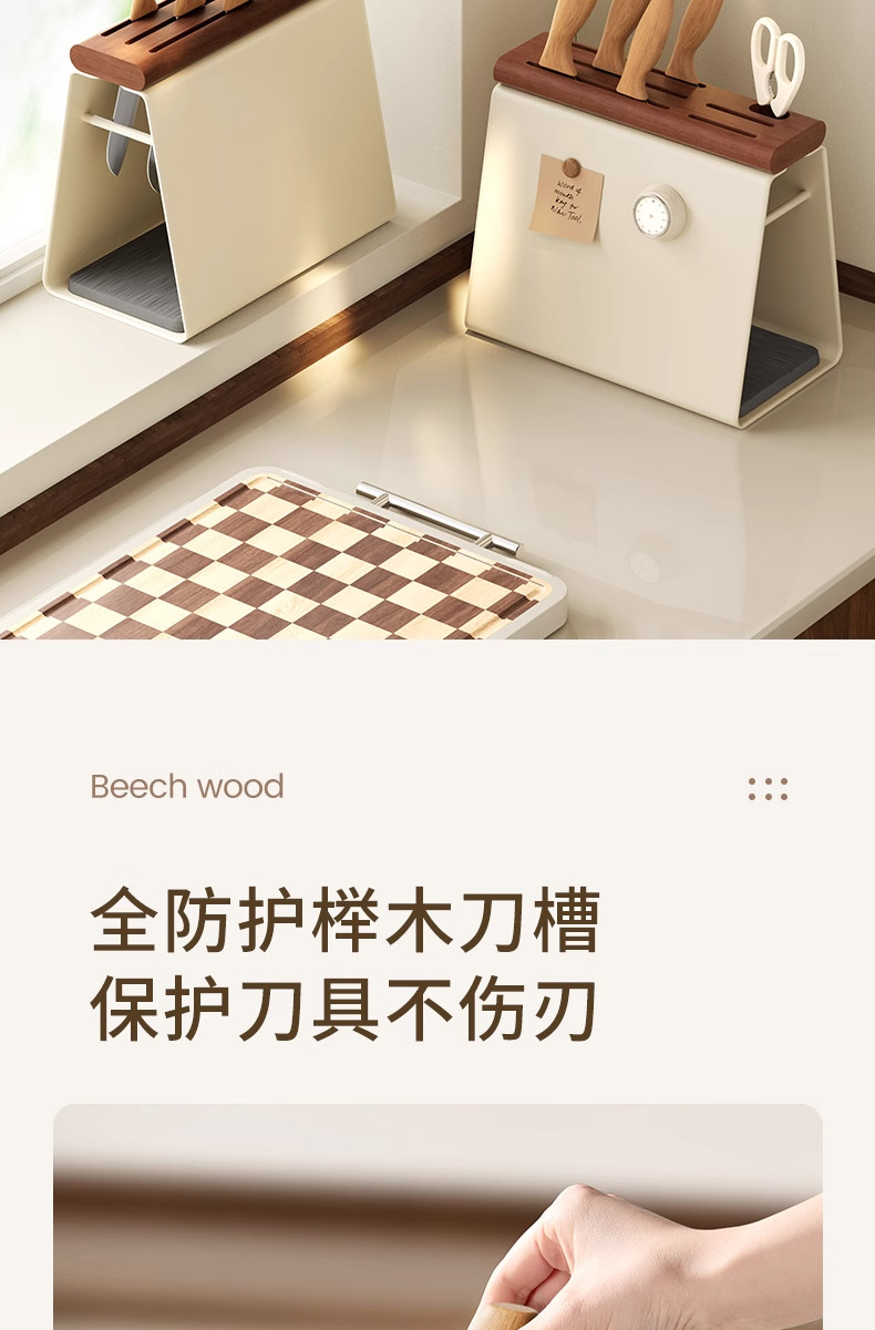 Color Classification Beech Knife Holder[Antibacterial and Rust-Proof, Comes with Diatom Mud Absorbent Pad]