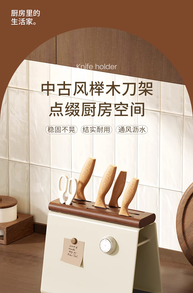 Kitchen Knife Rack Storage Rack, Antique Style, No-Drill, Multi-Functional, Water-Draining Knife Holder, Countertop Knife Storage Rack
