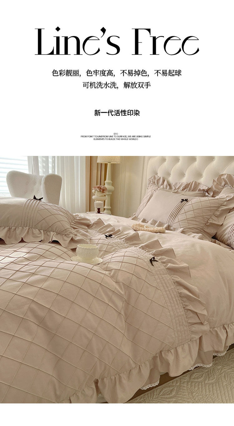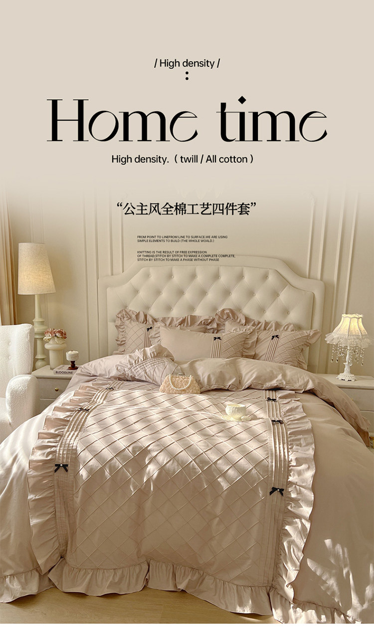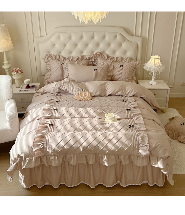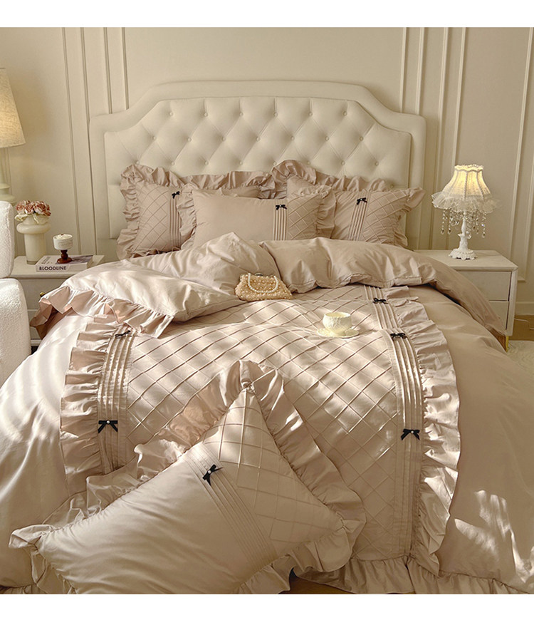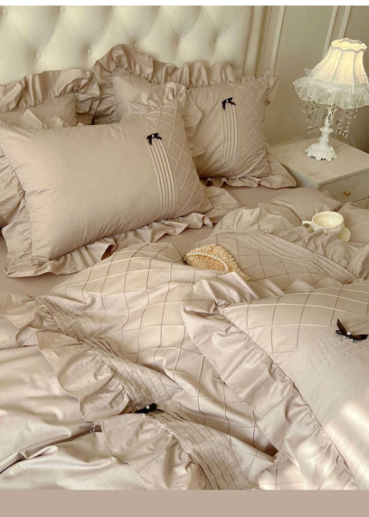 Ensemble de quatre pièces de style jupe de lit en pur coton 100 de style princesse avec housse de couette à bord en coton style crème 1.8 literie de style drap-housse