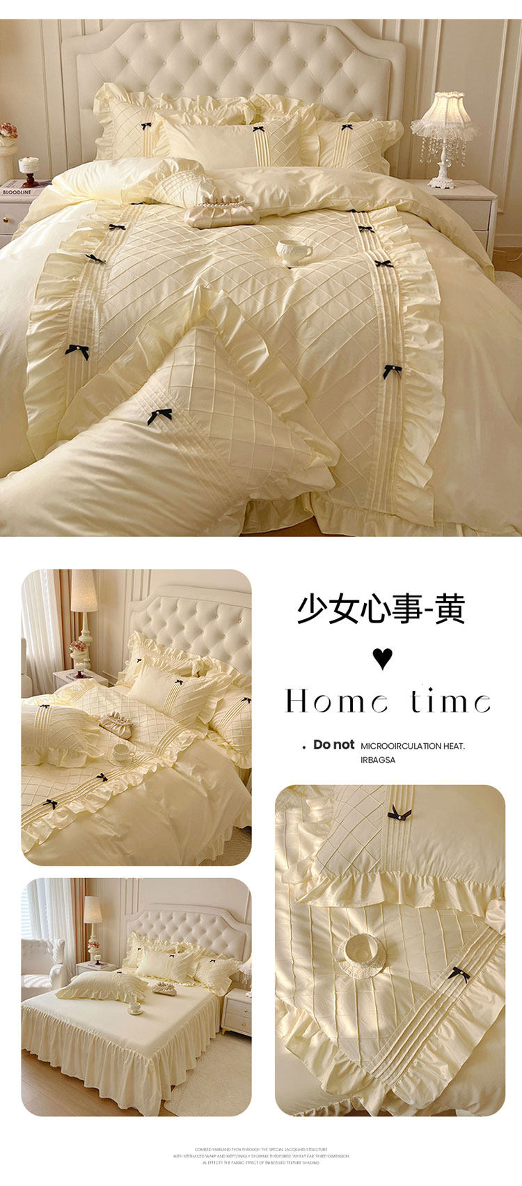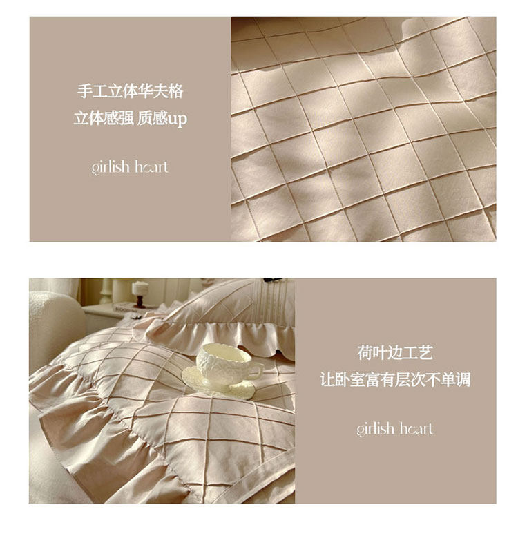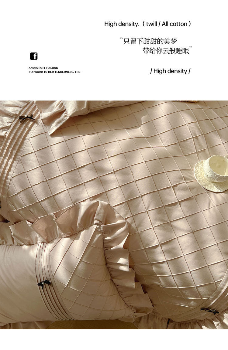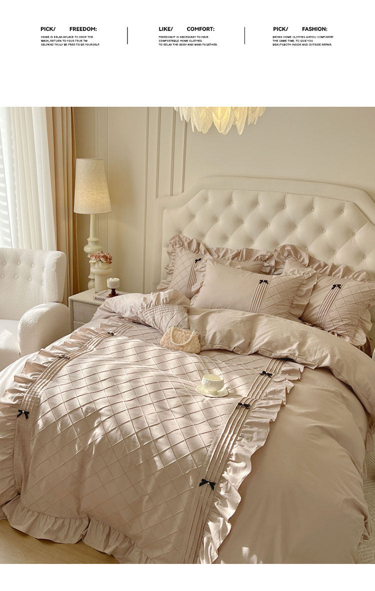 Ensemble de quatre pièces de style jupe de lit en pur coton 100 de style princesse avec housse de couette à bord en coton style crème 1.8 literie de style drap-housse