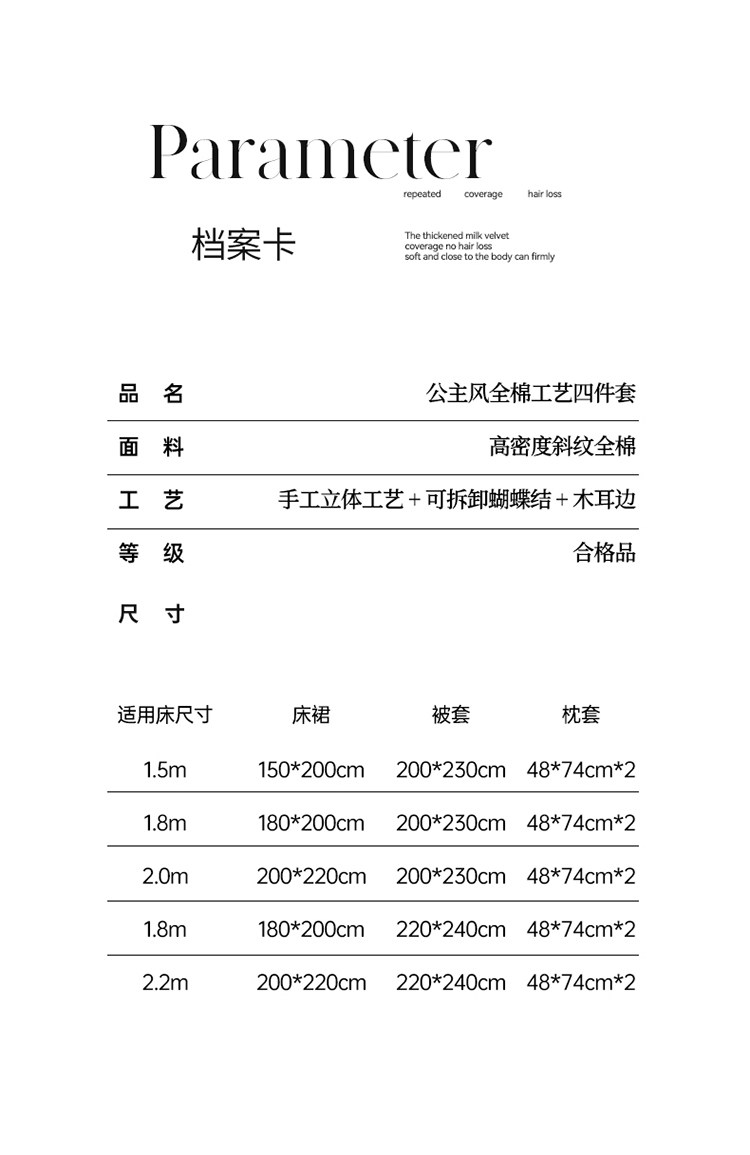 Taille de lit applicable Ensemble jupe de lit 1.5, quatre pièces, housse de couette, 200x230,Ensemble jupe de lit 1.8, housse de couette quatre pièces 200x230,Ensemble jupe de lit 2.0, quatre pièces, housse de couette, 200x230,Ensemble jupe de lit 1.8, housse de couette quatre pièces 220x240,Ensemble jupe de lit 2.0, quatre pièces, housse de couette, 220x240
