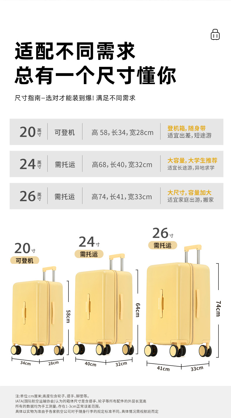 Size 20inch (Multifunctional Travel Is More Labor-Saving),24inch (37 Points, More Effort-Saving for Multi-Functional Travel),26inch (37 Points Is Larger and More Practical)