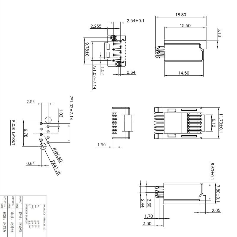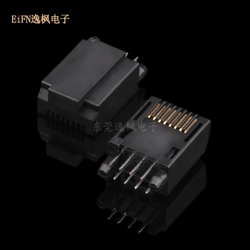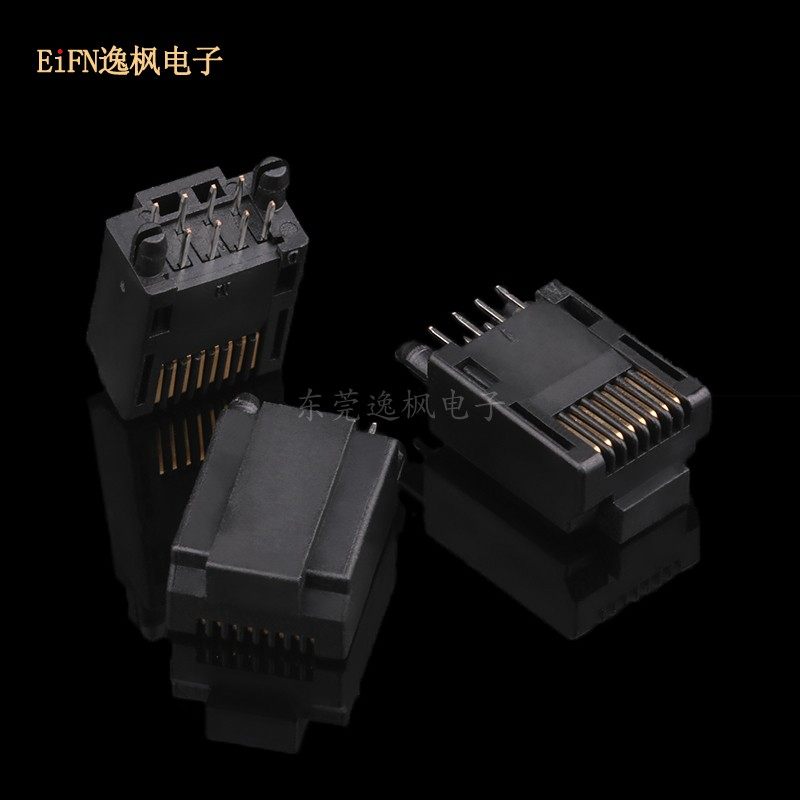 水晶头插板式 板上180度直插 DIP立插高度15.5 RJ45插头黑色8P8C