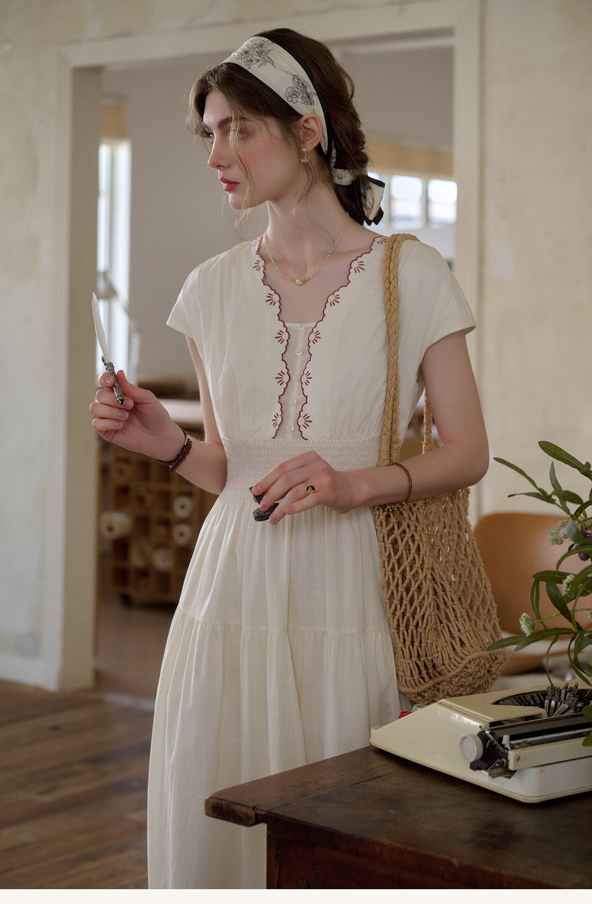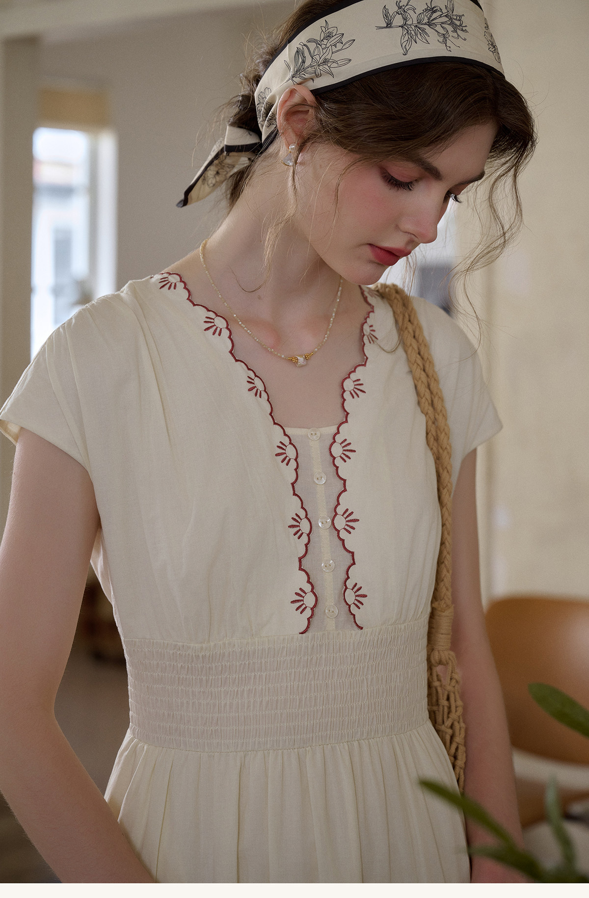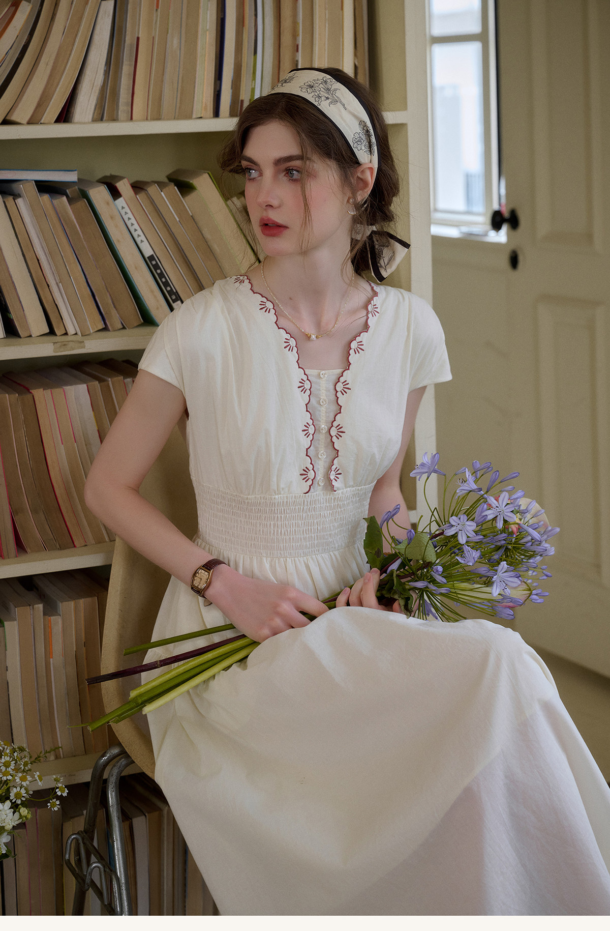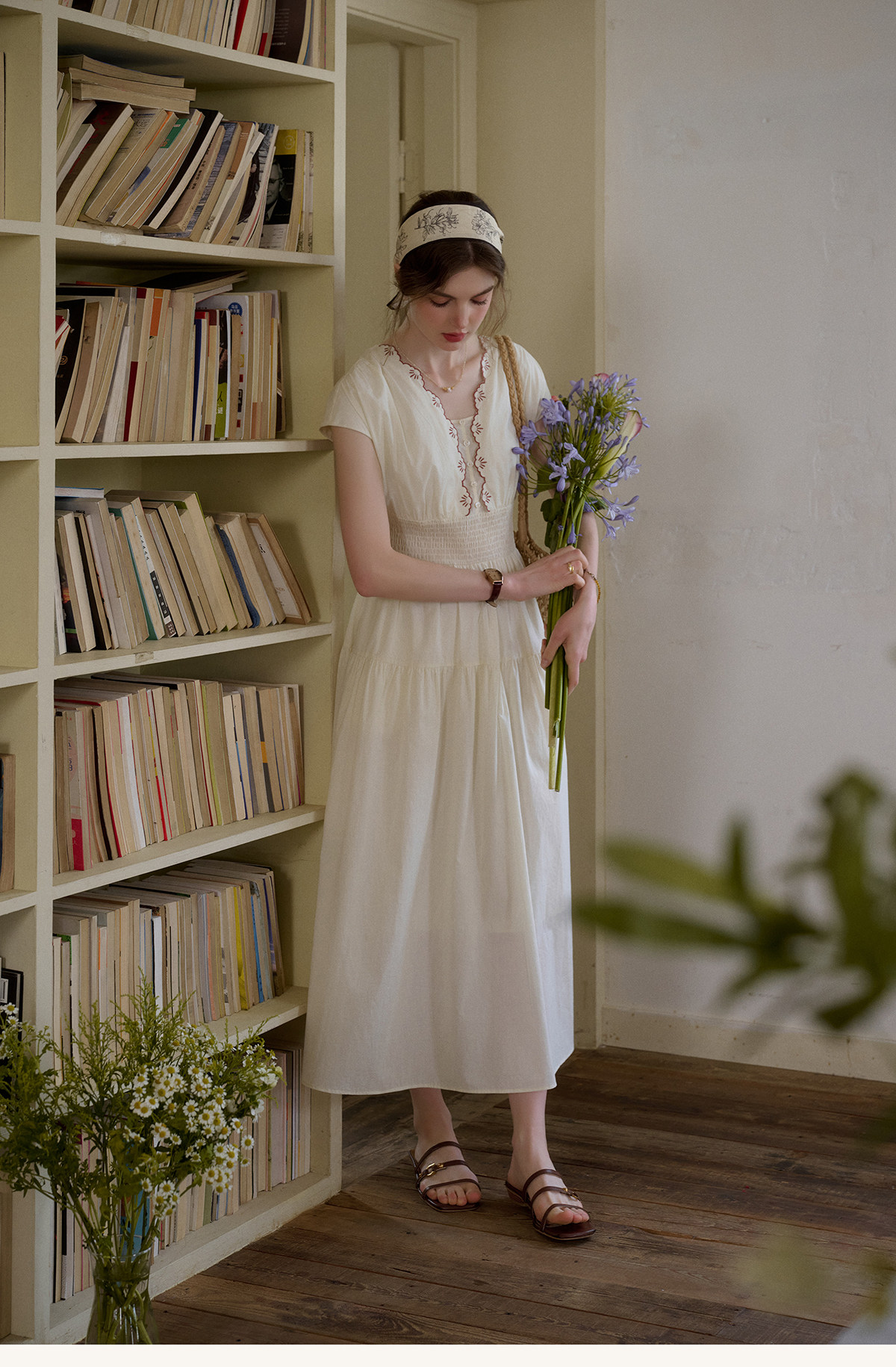 SimpleRetro Qingyuan Flower Language 60S Baumwolle pastoraler Stil besticktes französisches Taillenkleid langer Rock