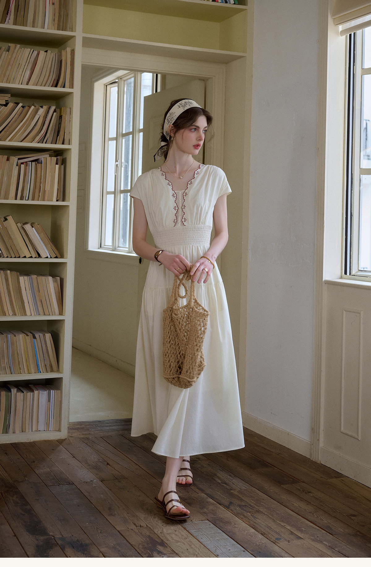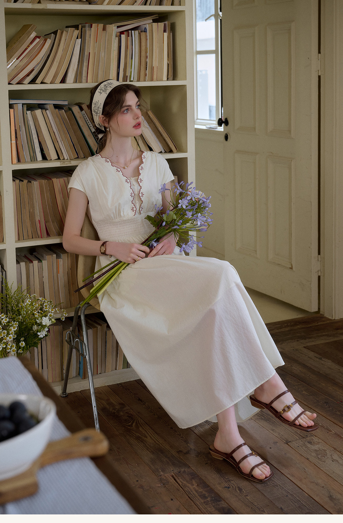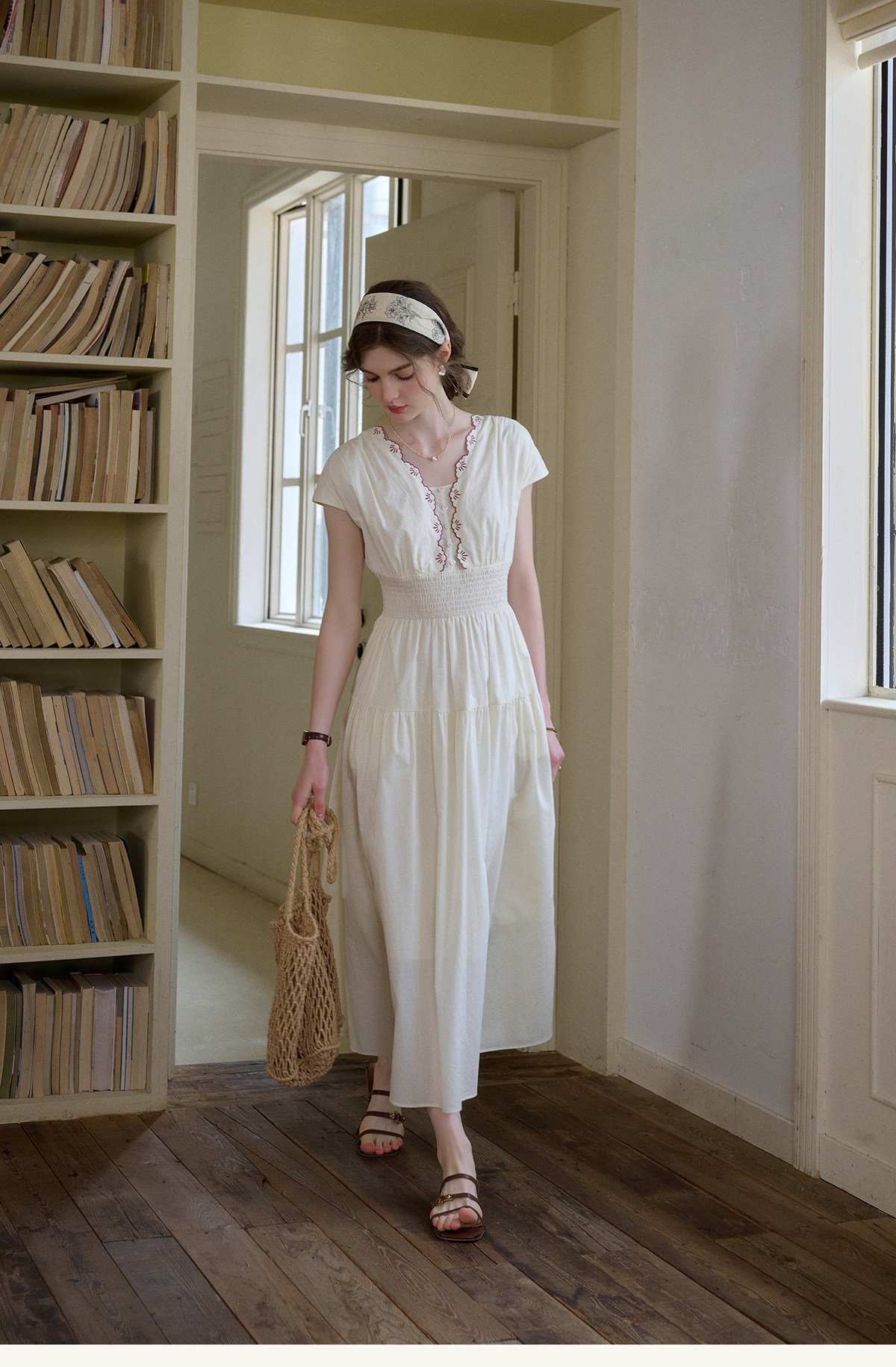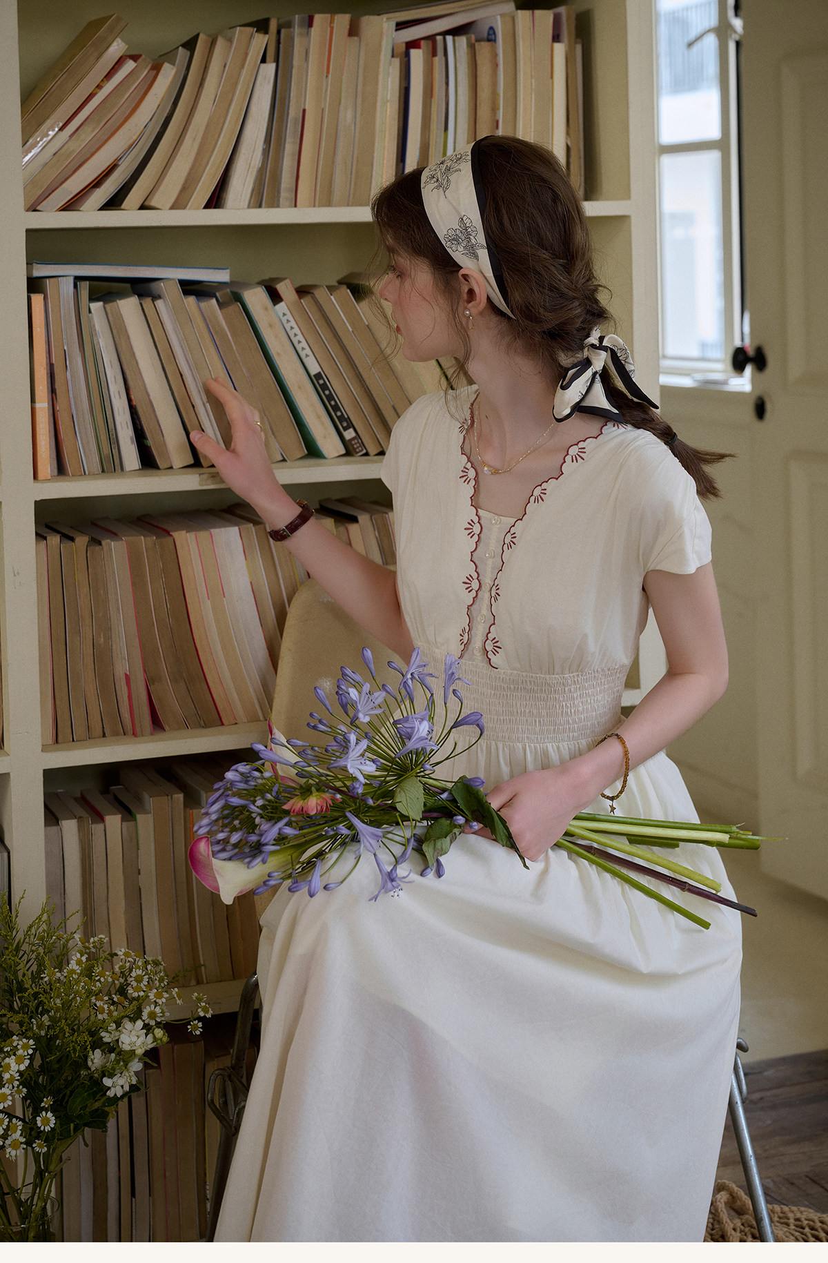 SimpleRetro Qingyuan Flower Language 60S Baumwolle pastoraler Stil besticktes französisches Taillenkleid langer Rock