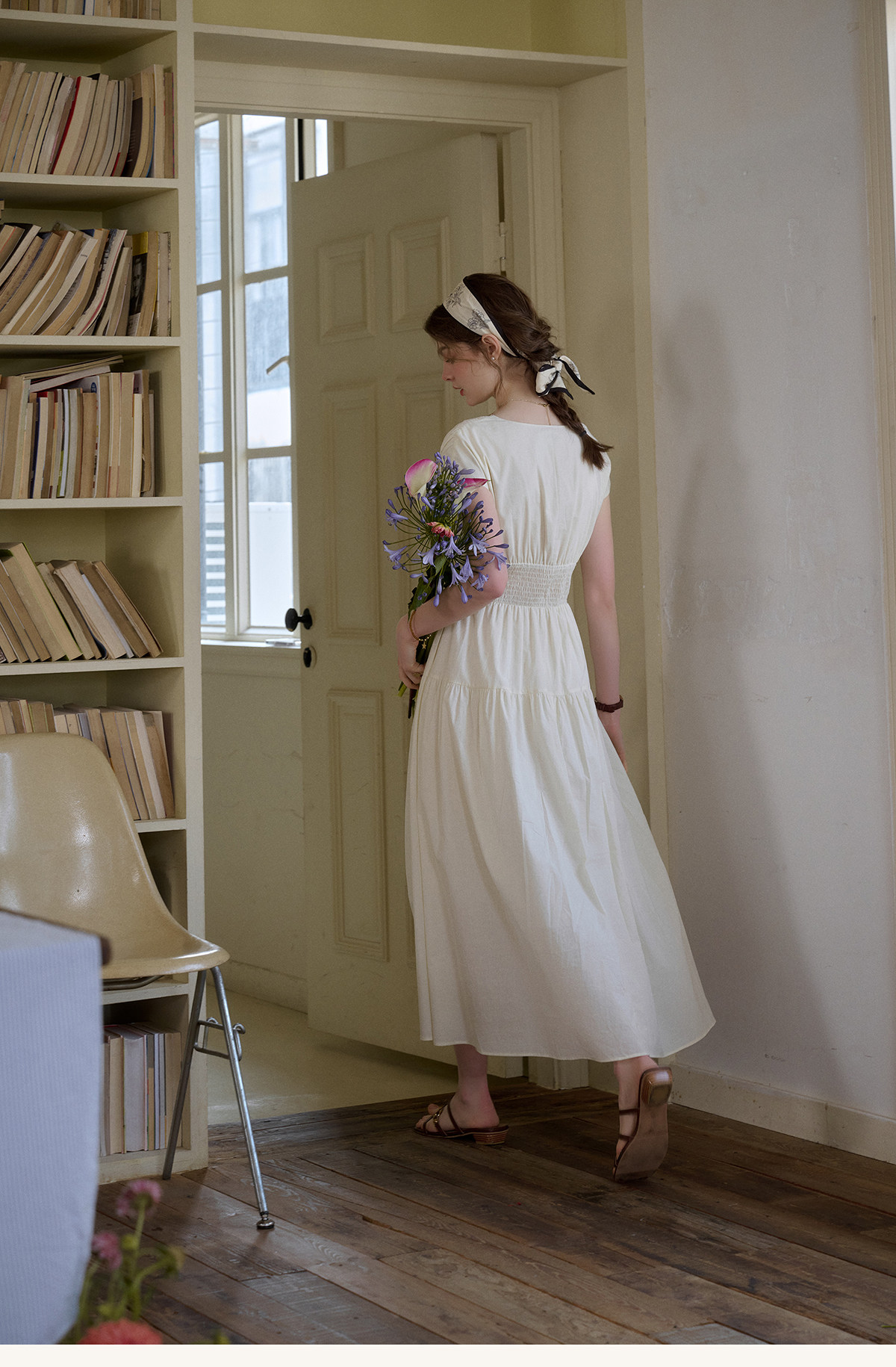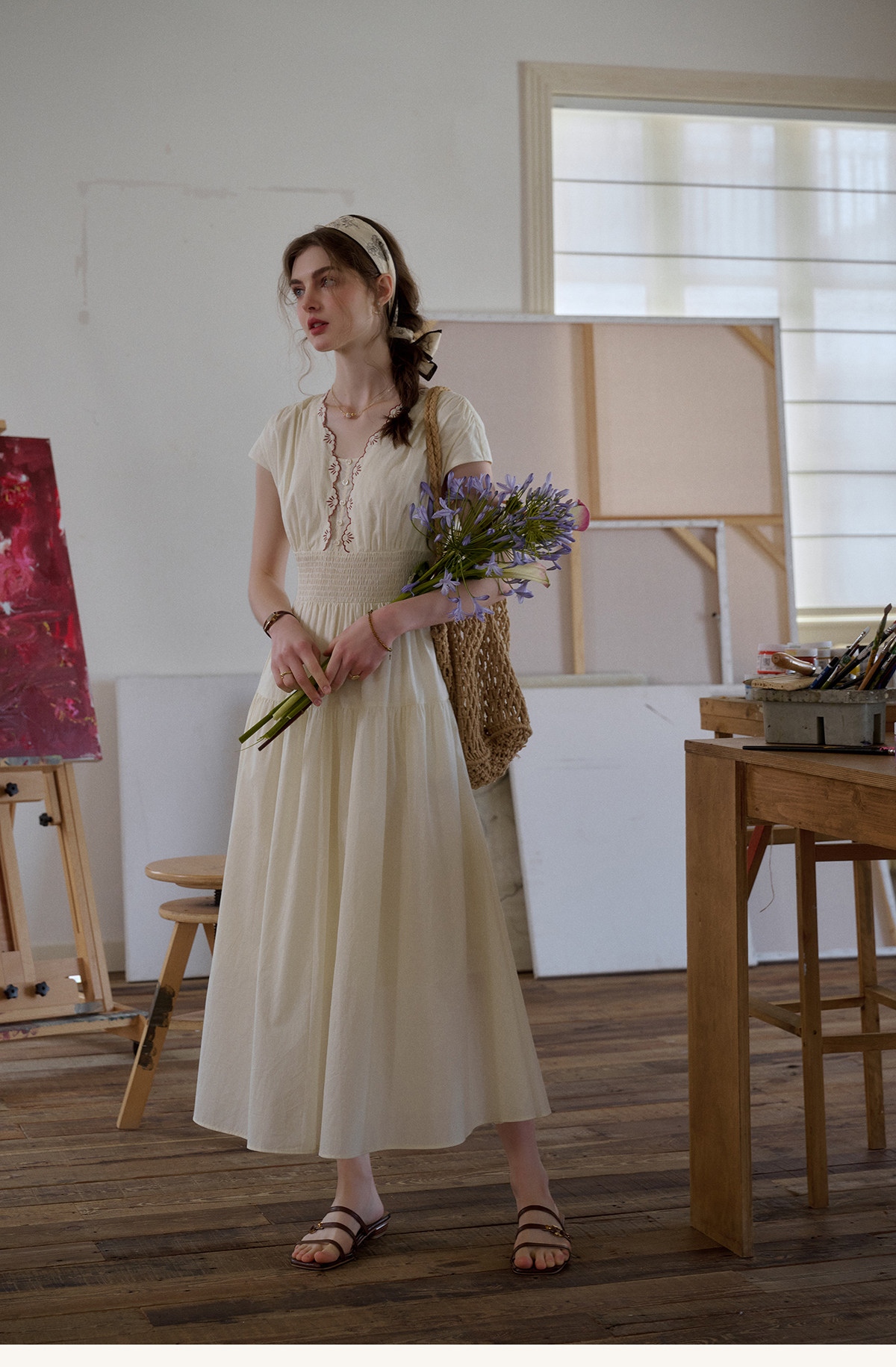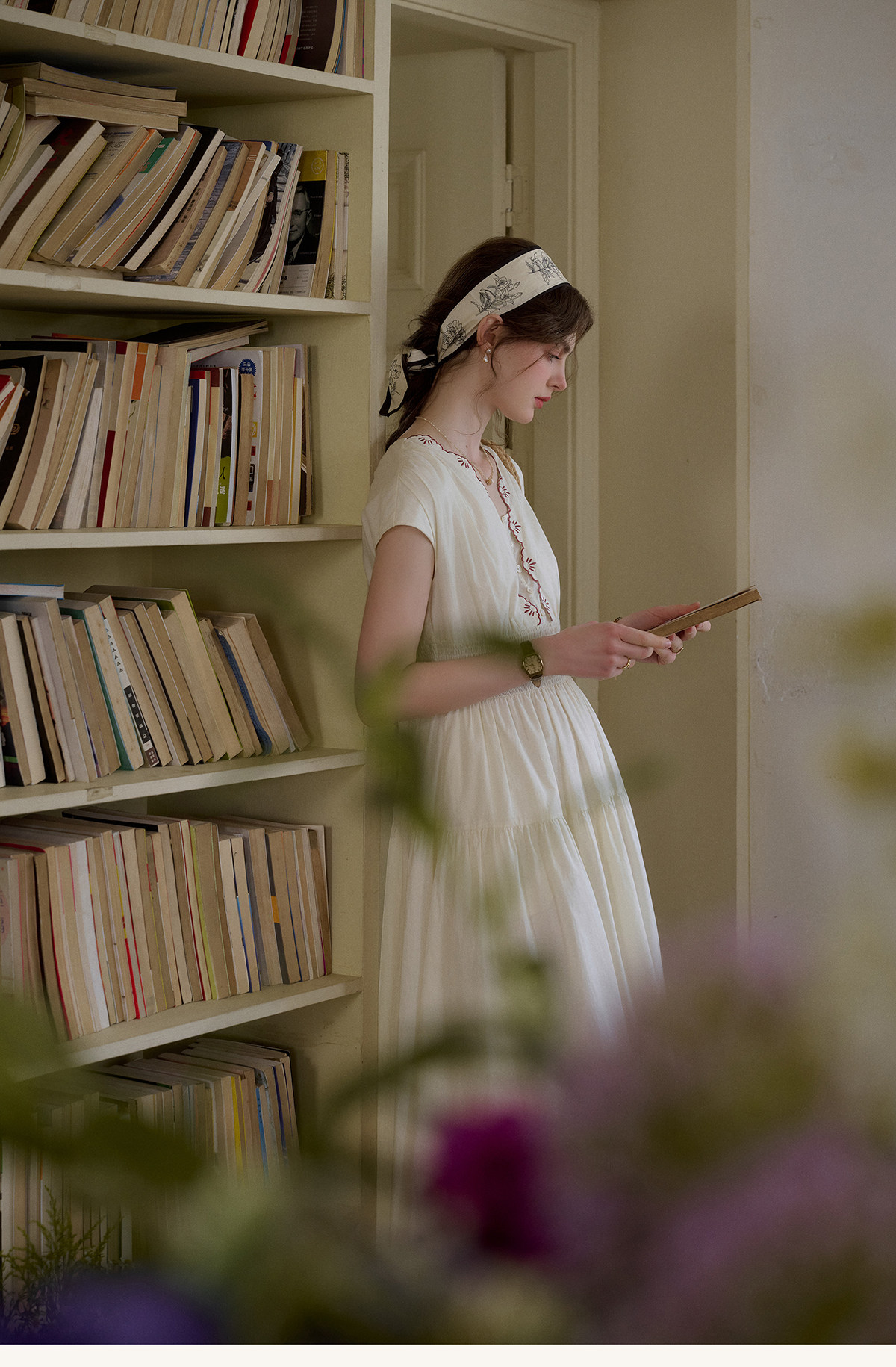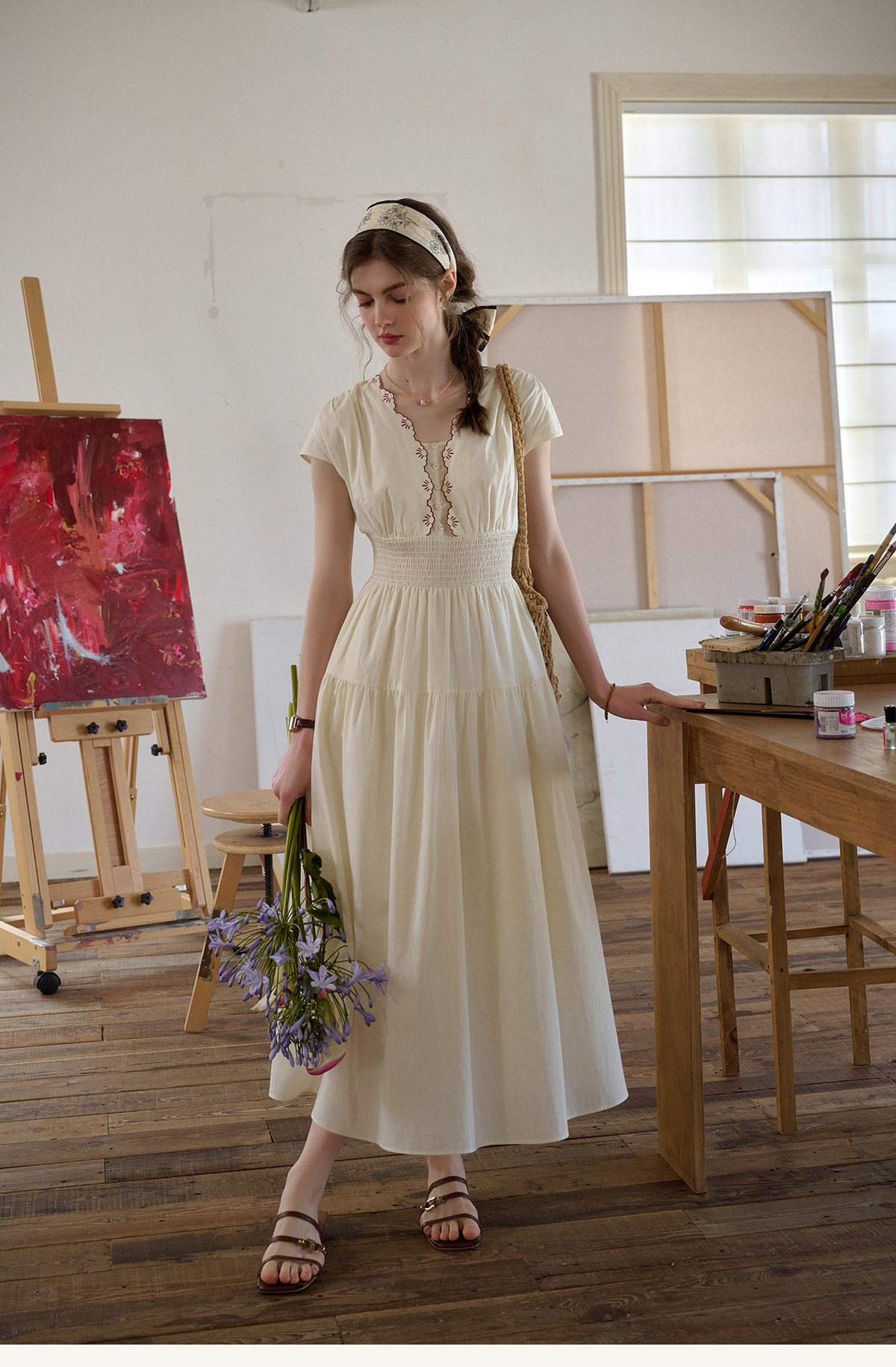 SimpleRetro Qingyuan Flower Language 60S Baumwolle pastoraler Stil besticktes französisches Taillenkleid langer Rock