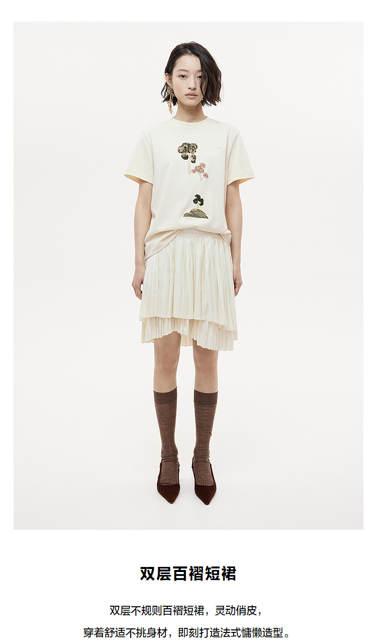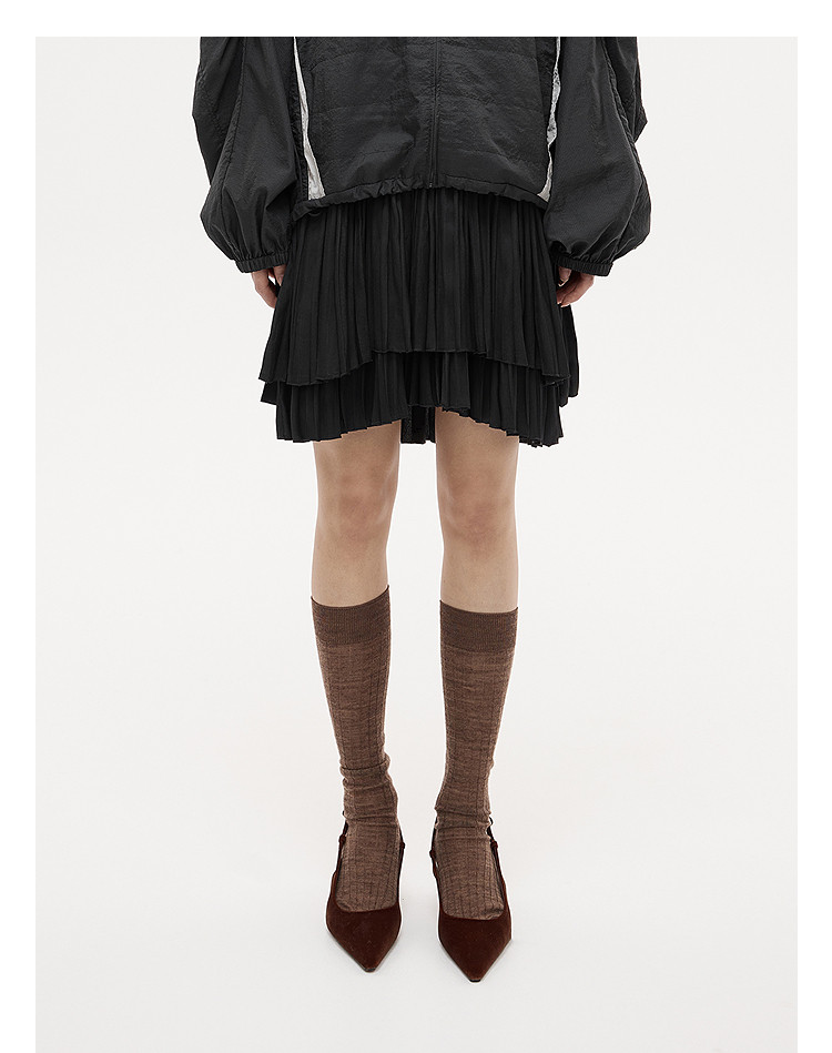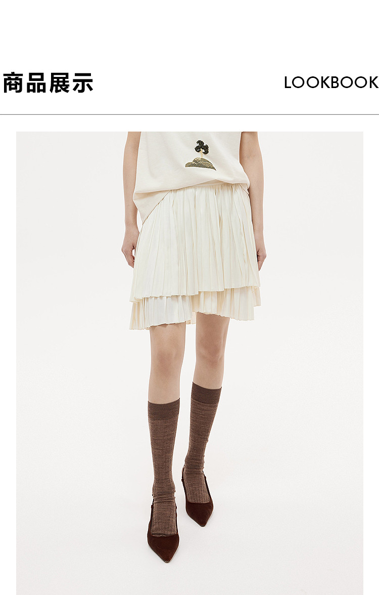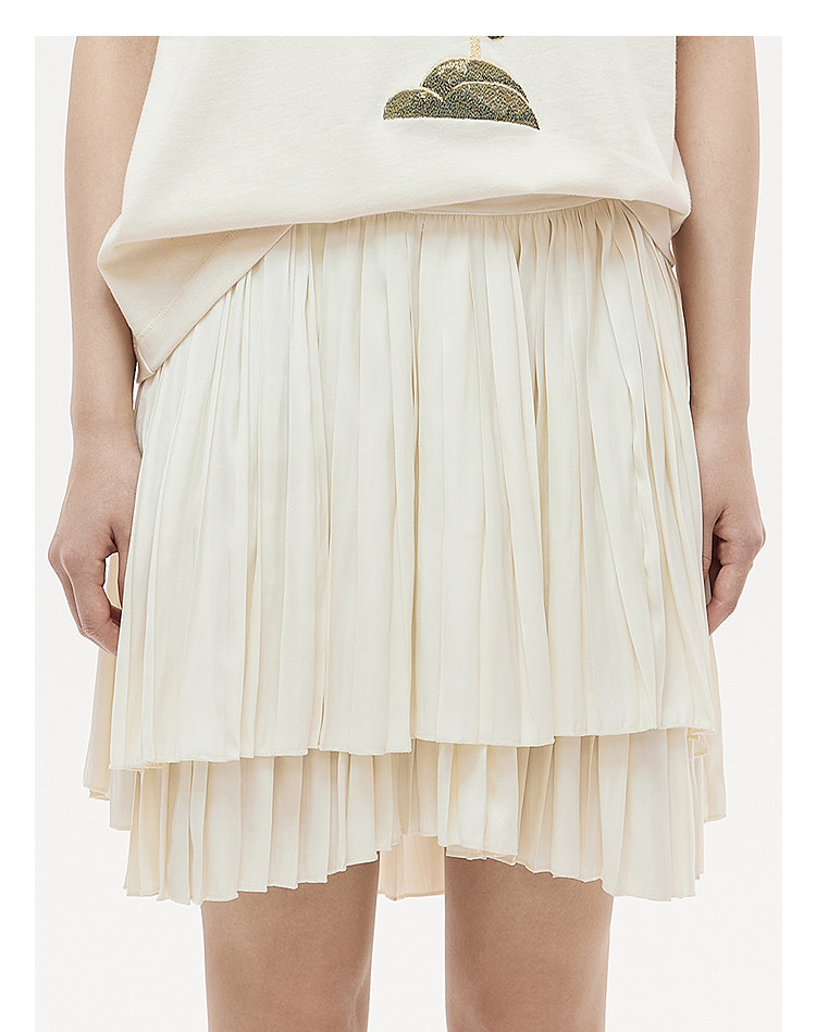 Dazzle Skirt 2025 Autumn and Winter New Off-White Double-Layer Pleated Short Skirt