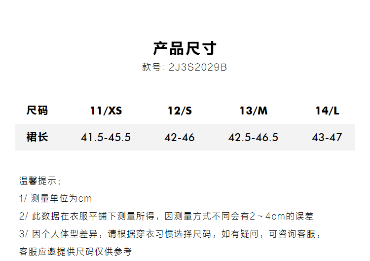Size (cm) 42 44 46 48 50
