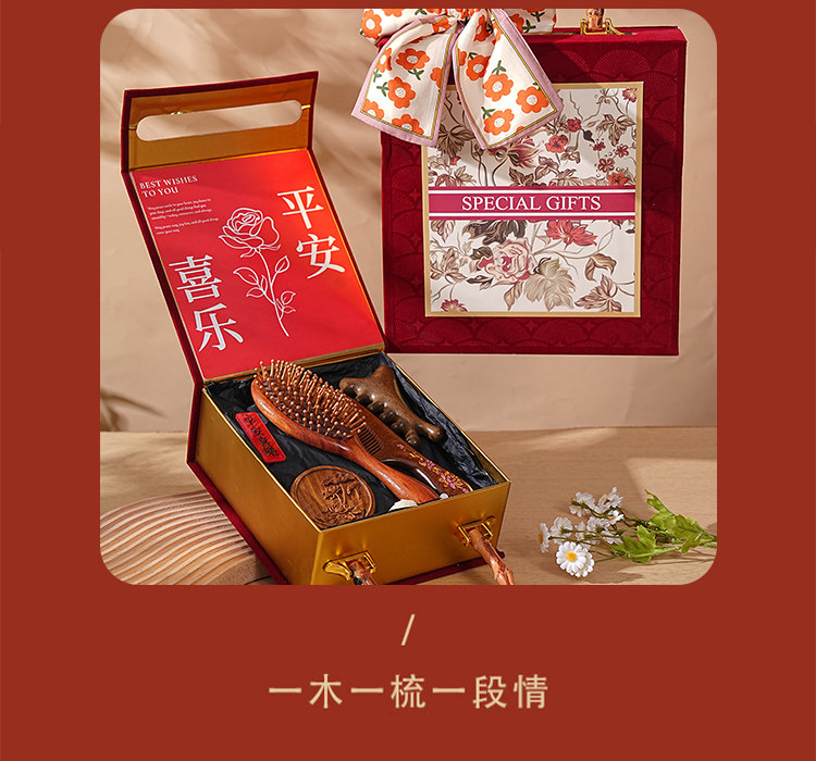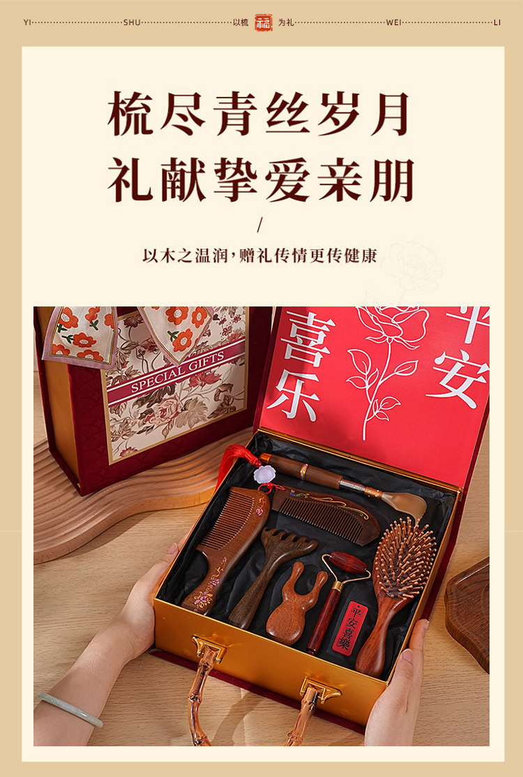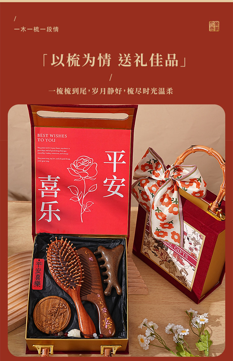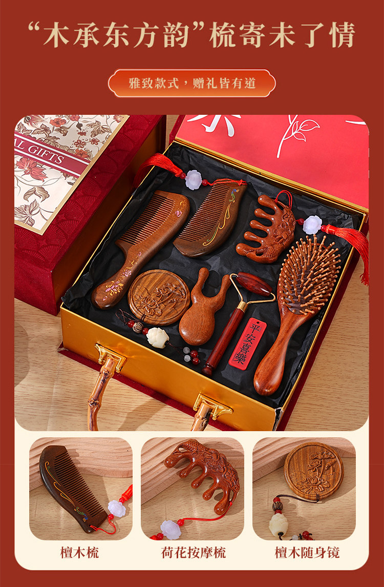 Jahrestags-Souvenir 2026, praktische Geschenke für Mitarbeiter und Kunden, Geschenk zum Jahr des Pferdes, Sandelholz-Massagekamm-Set, Geschenkbox