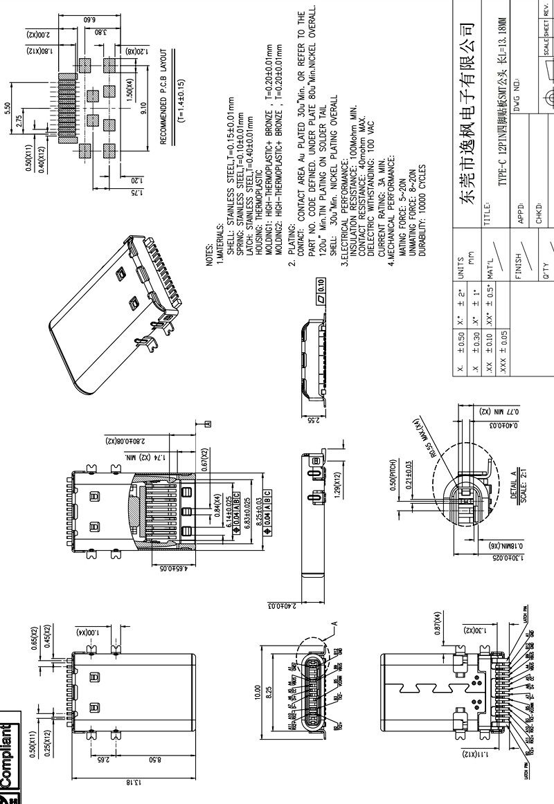 Type-C Male 12P Four-Legged Sleeper 13.18 Smt Full Charging Data Transmission Head U Disk Head Accessories