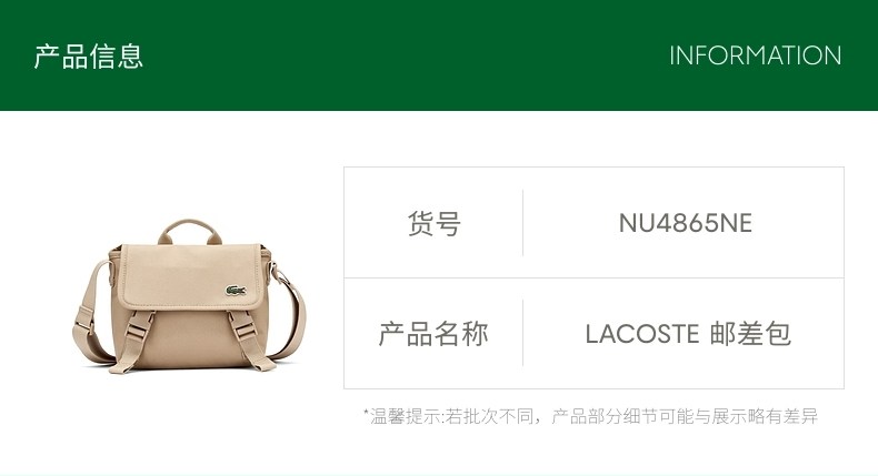 LACOSTE法国鳄鱼男女同款25秋季新款时尚简约邮差包|NU4865NE