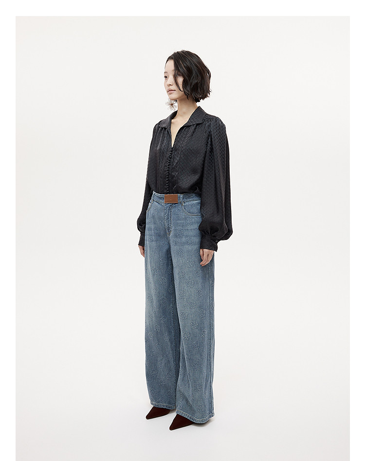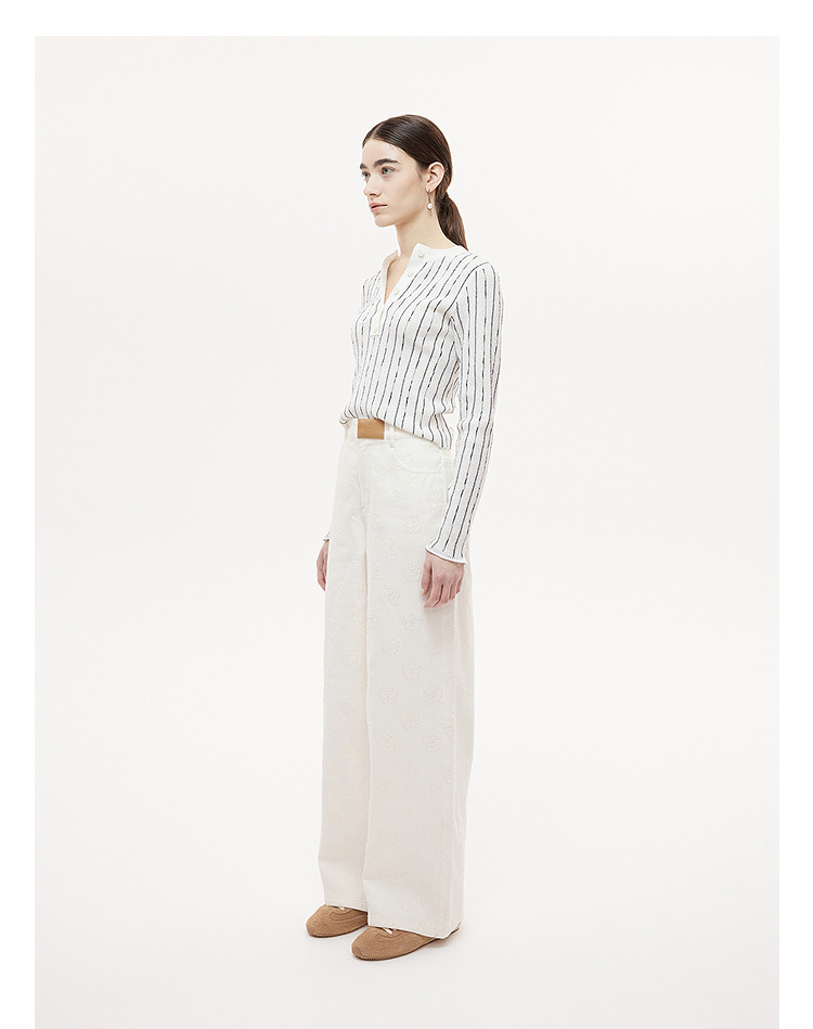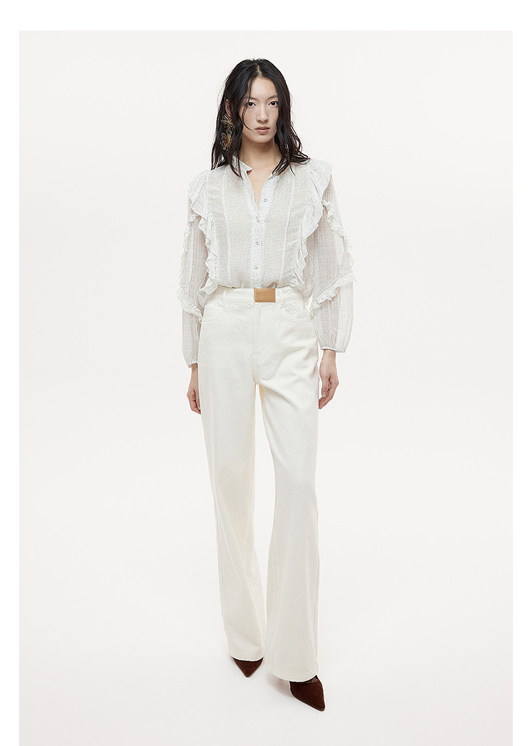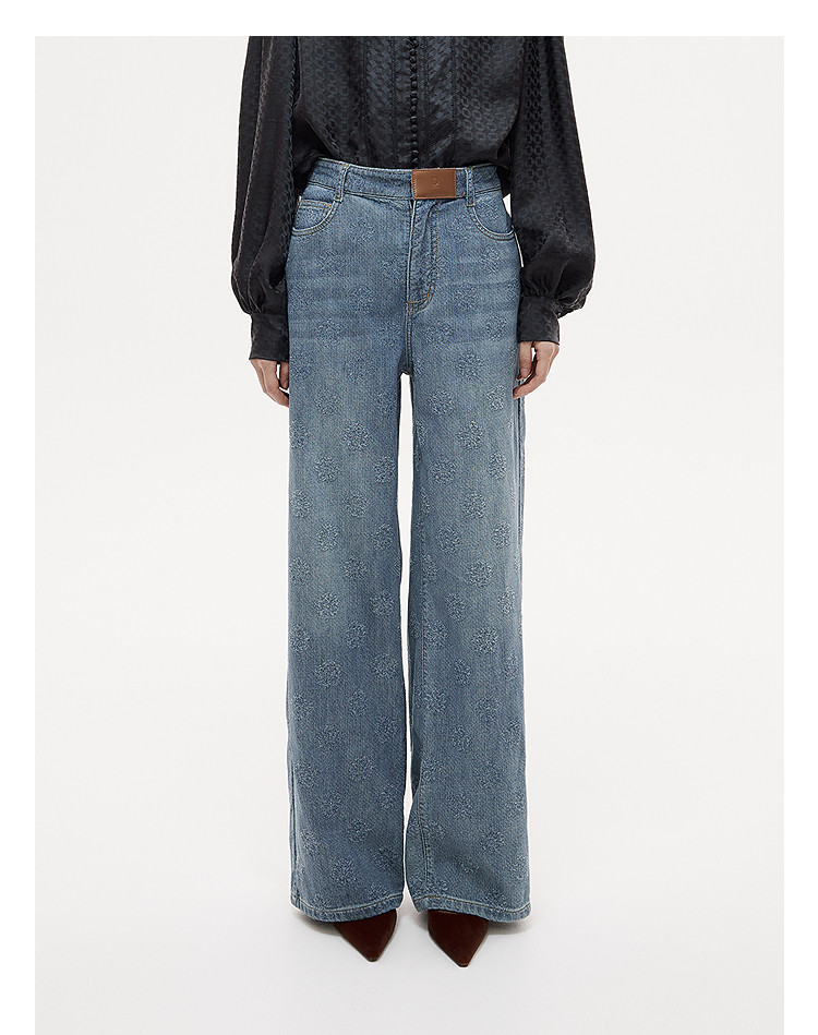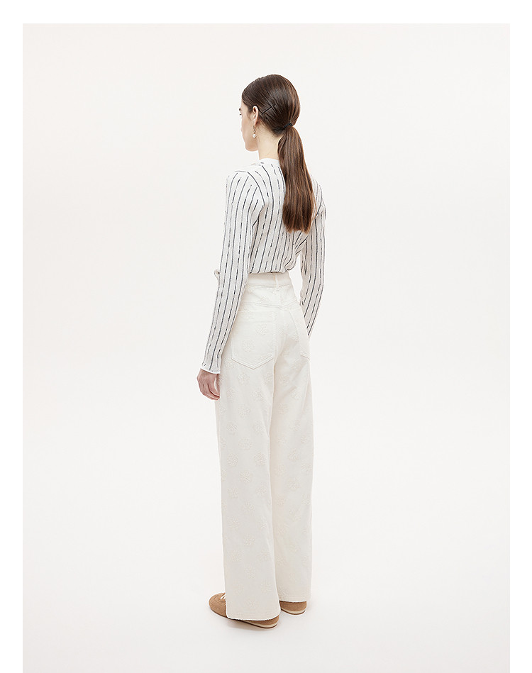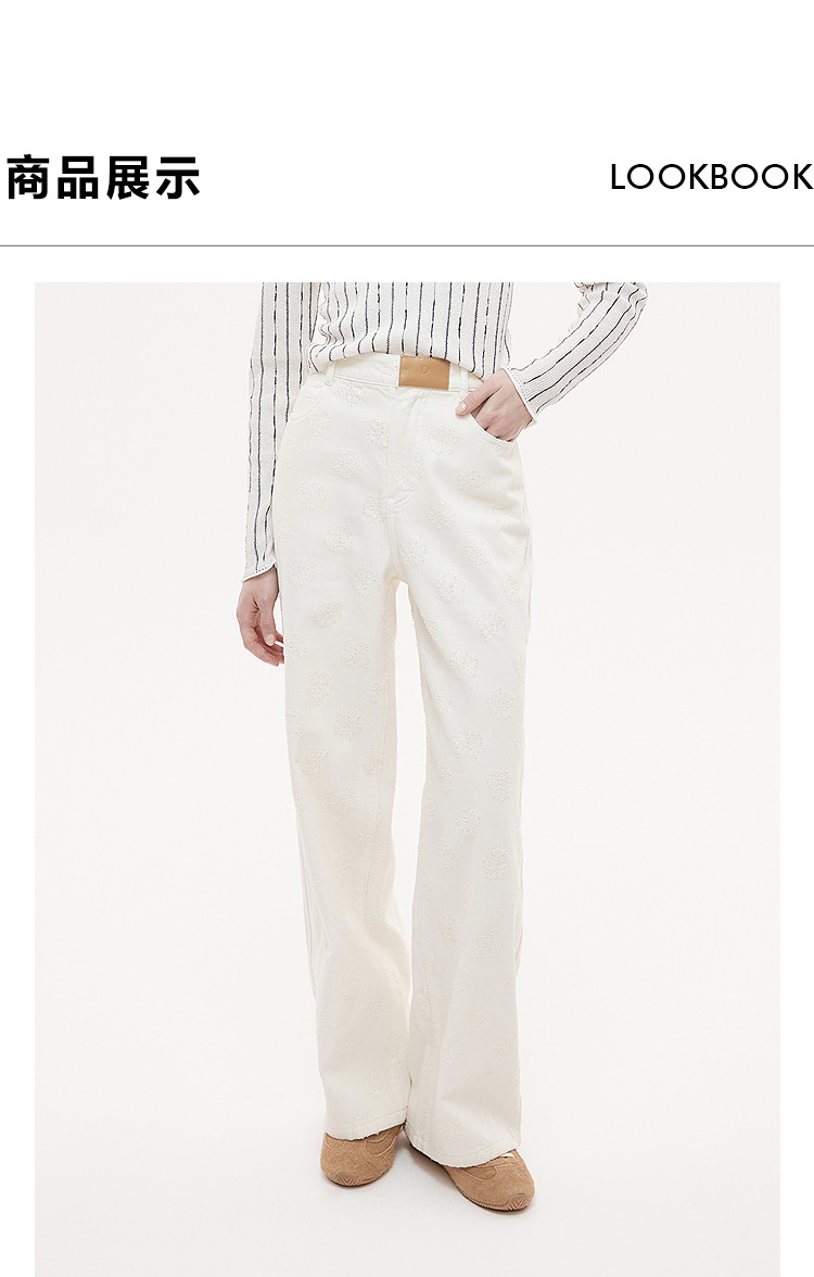 Dazzle Denim Jeans 25Th Autumn/Winter White Simple and Stylish Denim Wide-Leg Pants Long Pants for Women