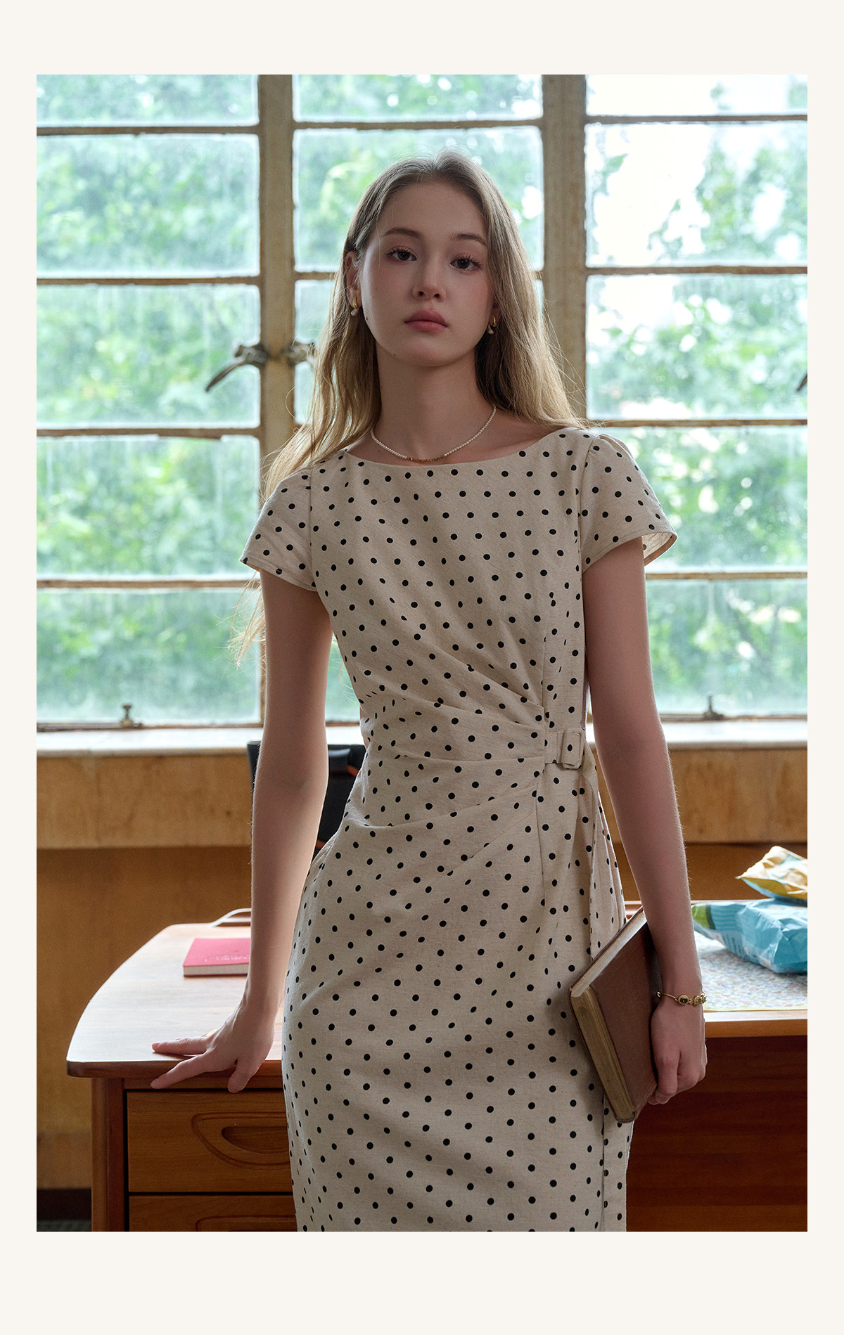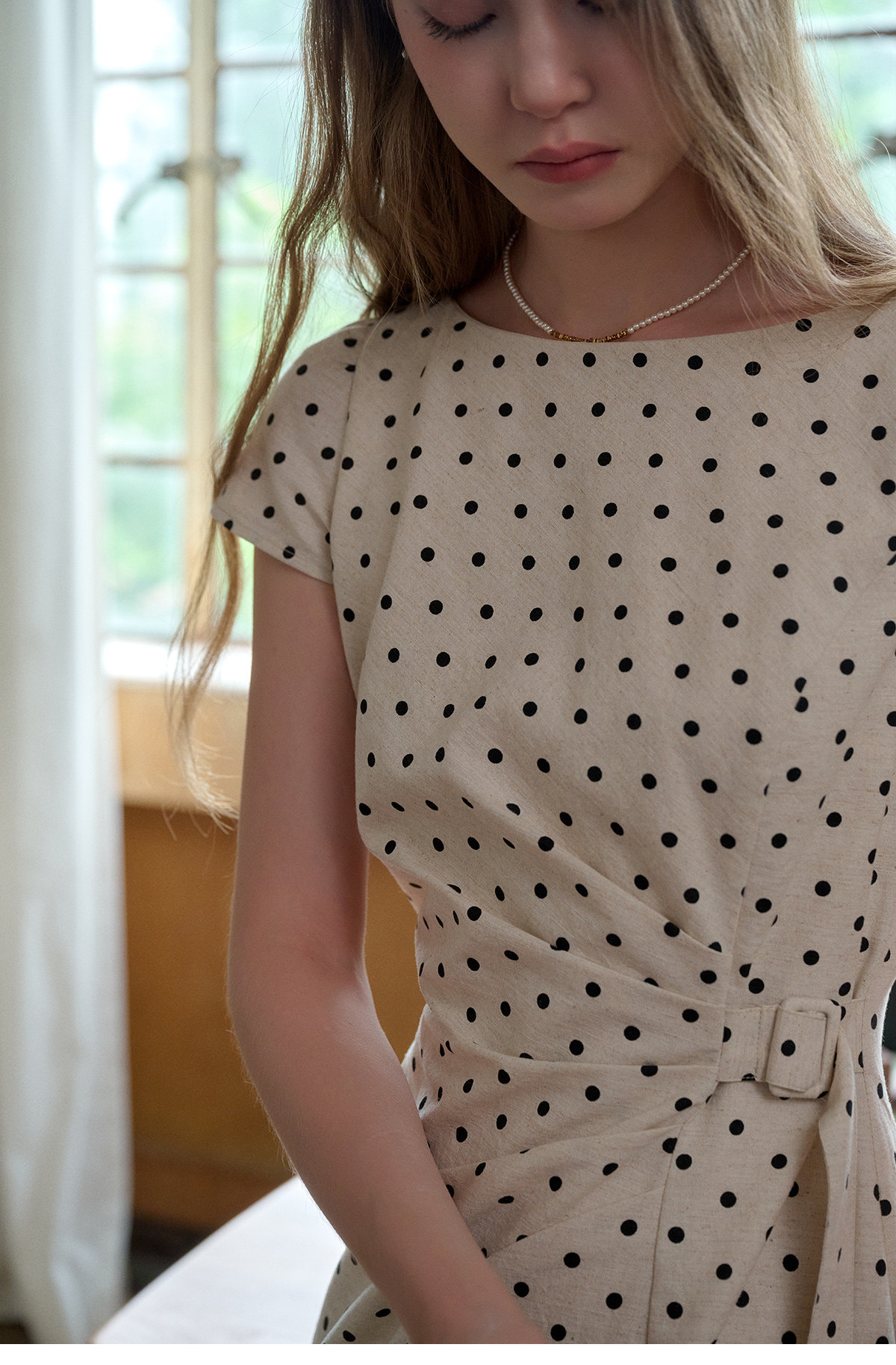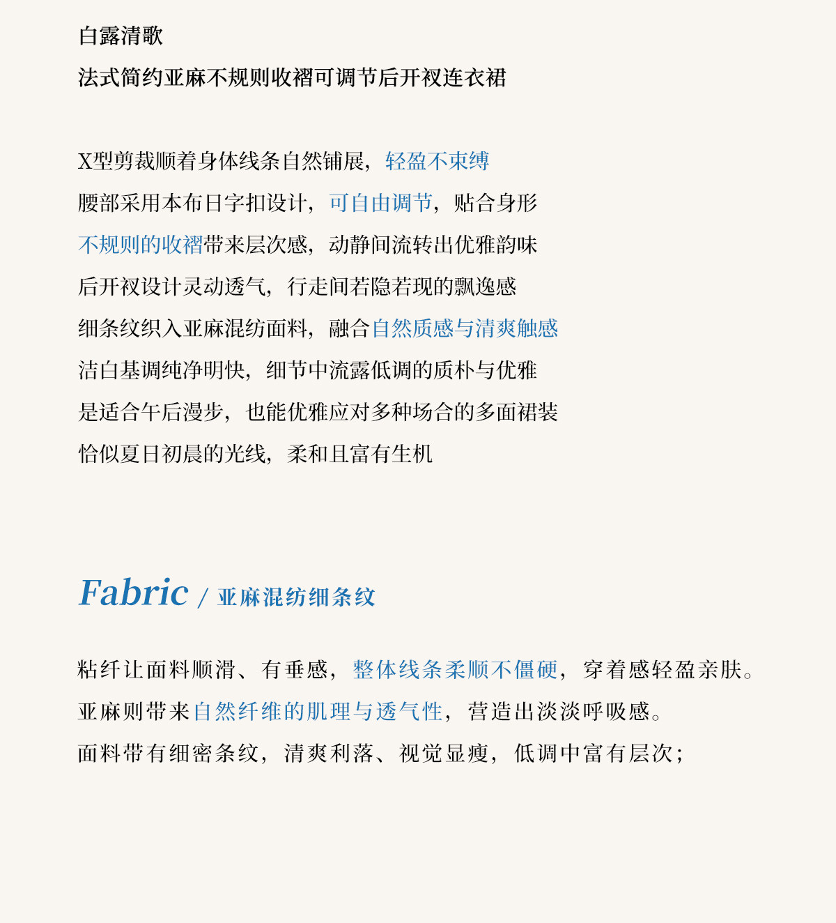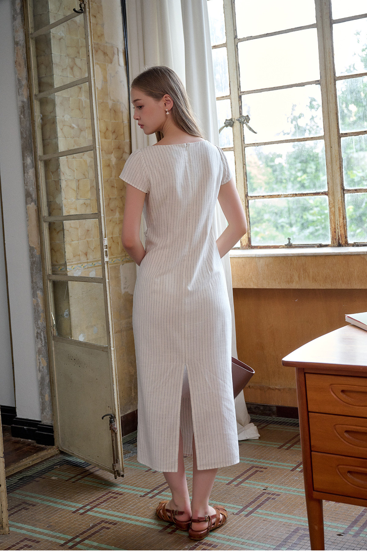 SimpleRetro白露清歌 法式简约亚麻不规则收褶可调节条纹连衣裙女